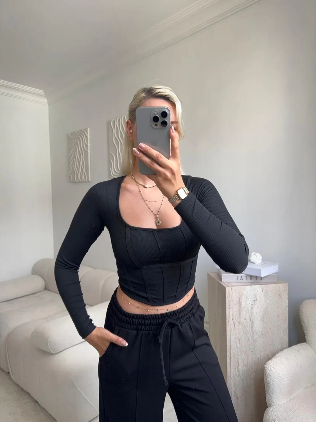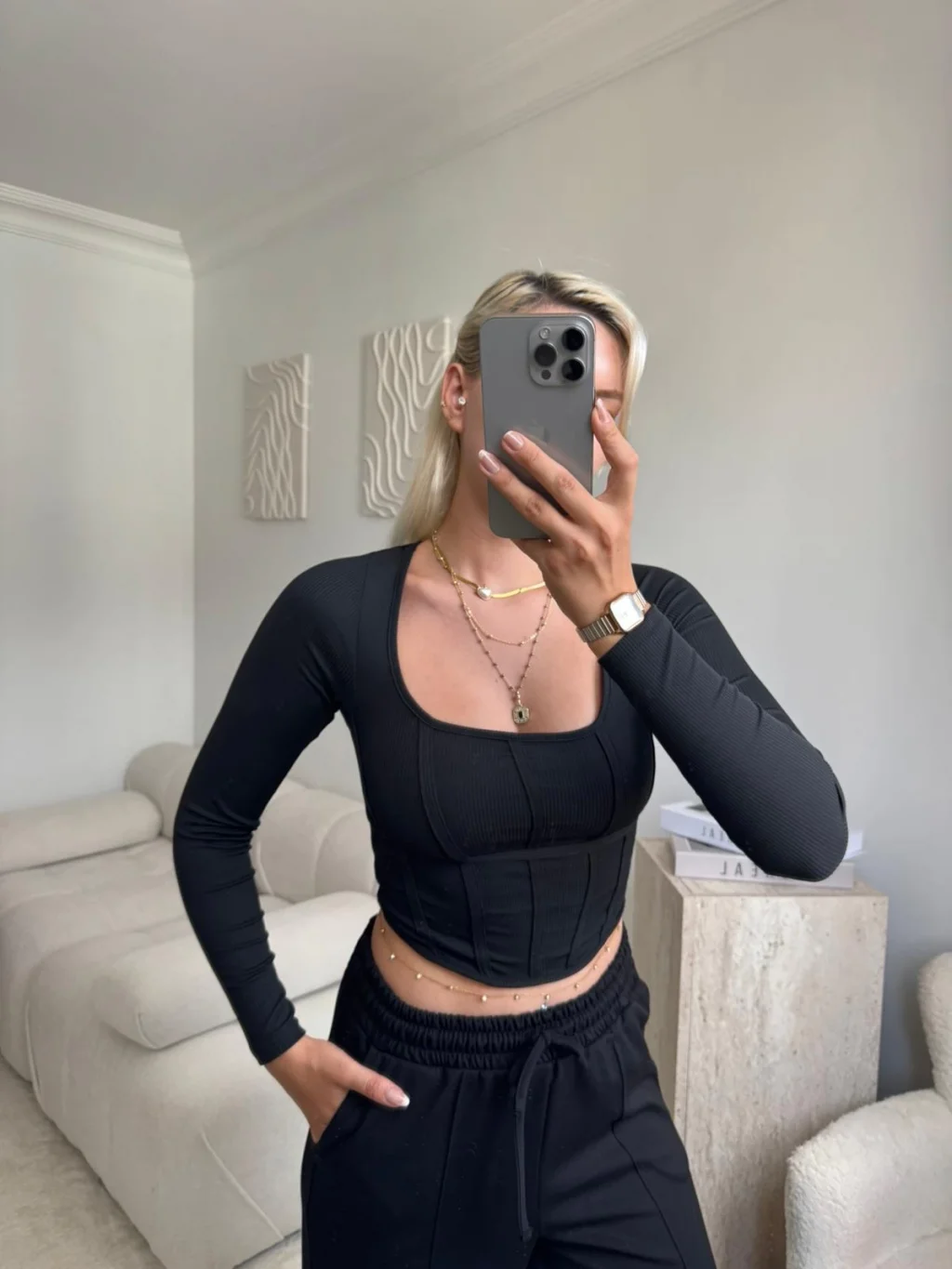 Ara Biyeli Crop - SİYAH