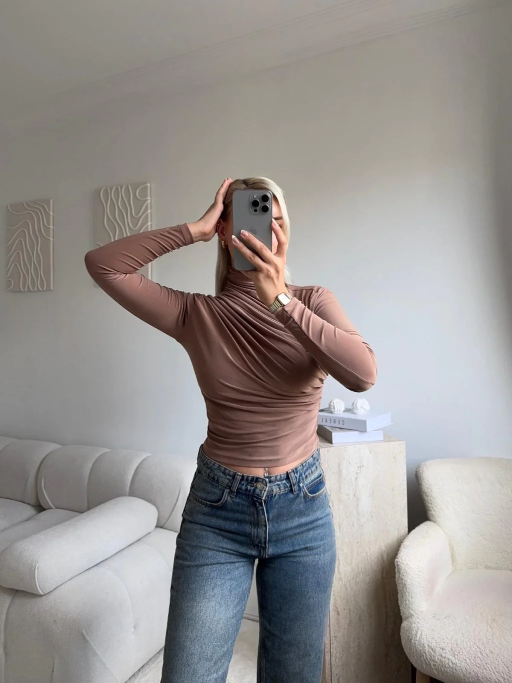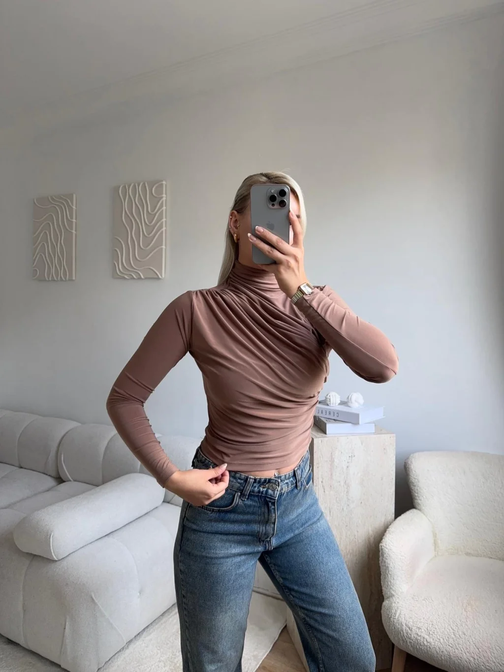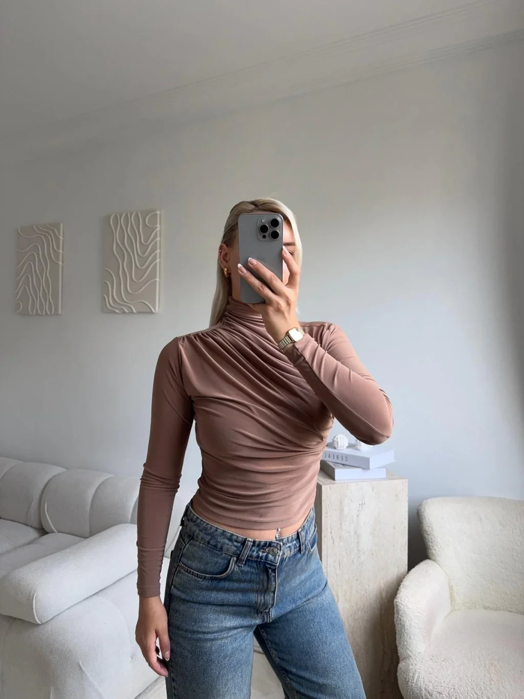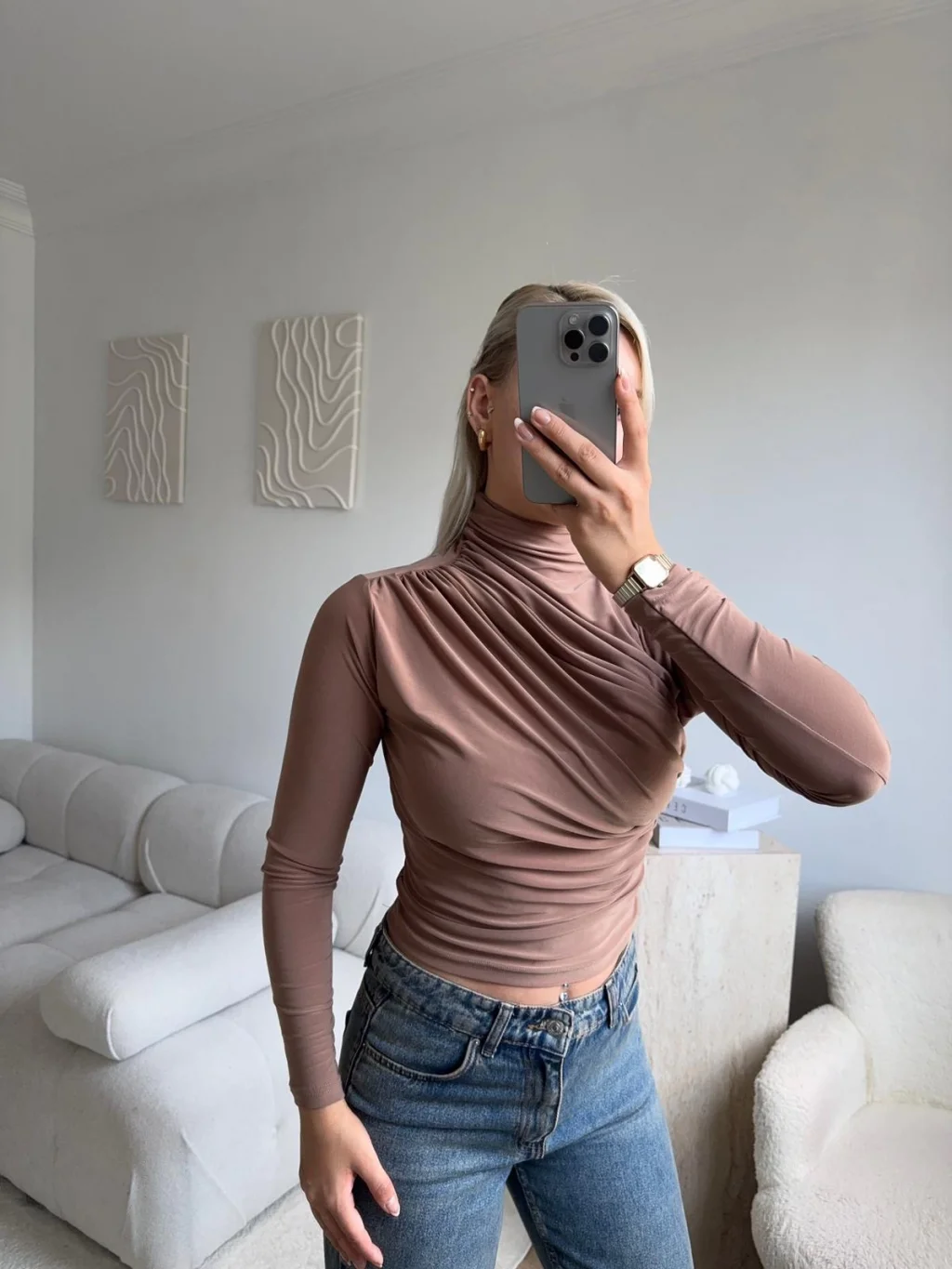 Balıkçı Yaka Drapeli Bluz - VİZON