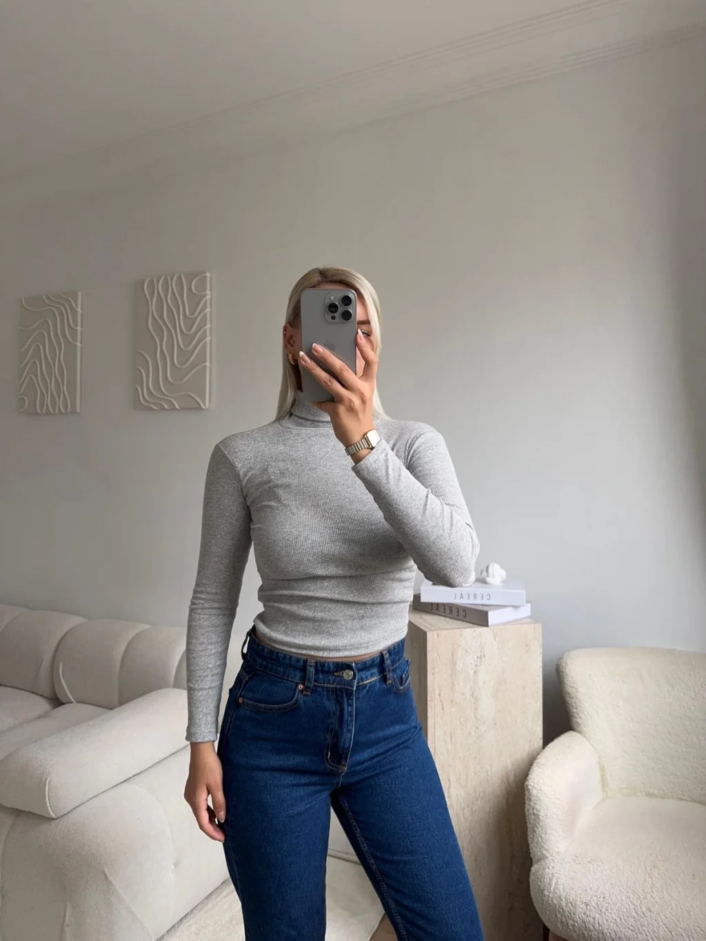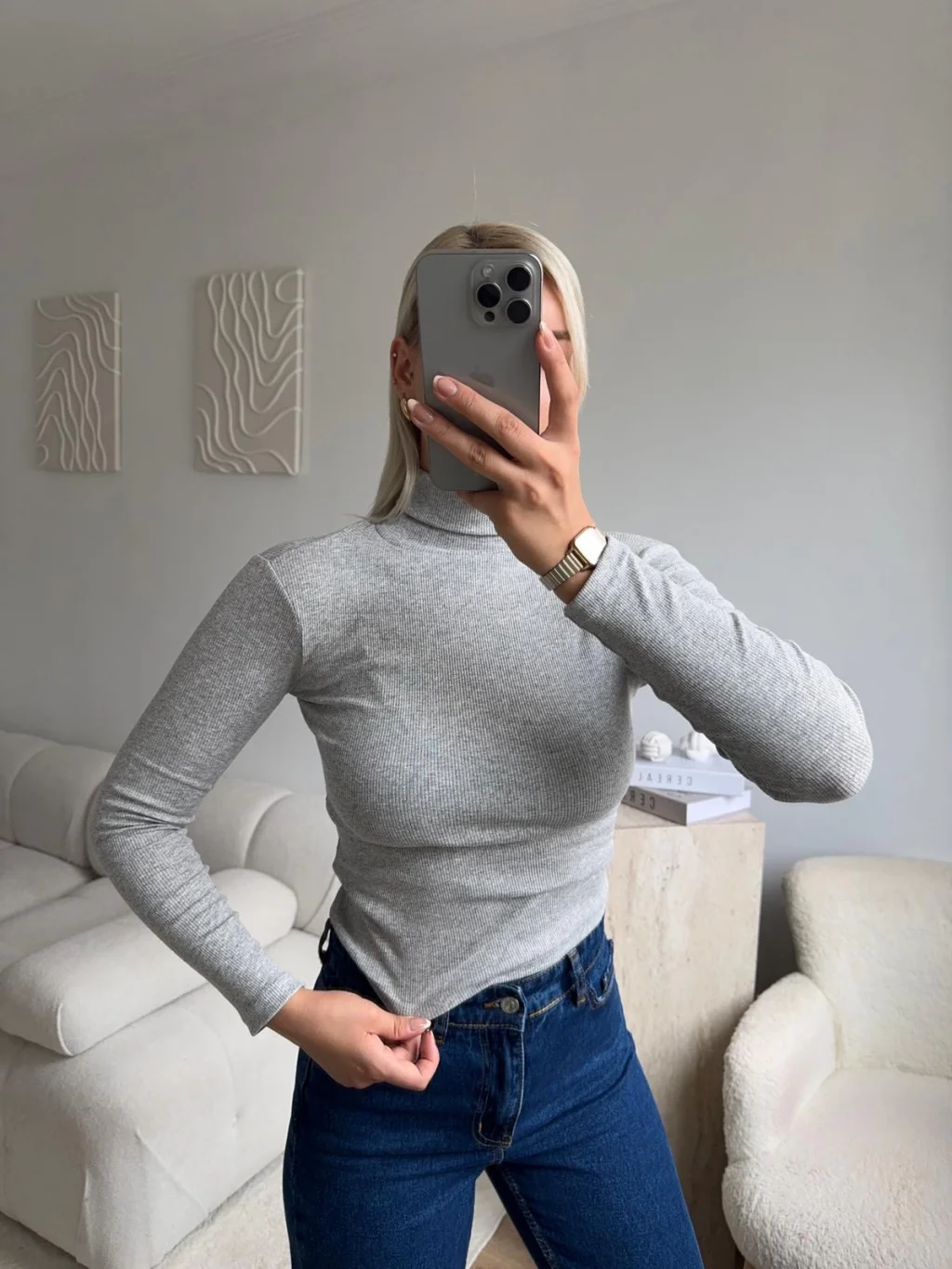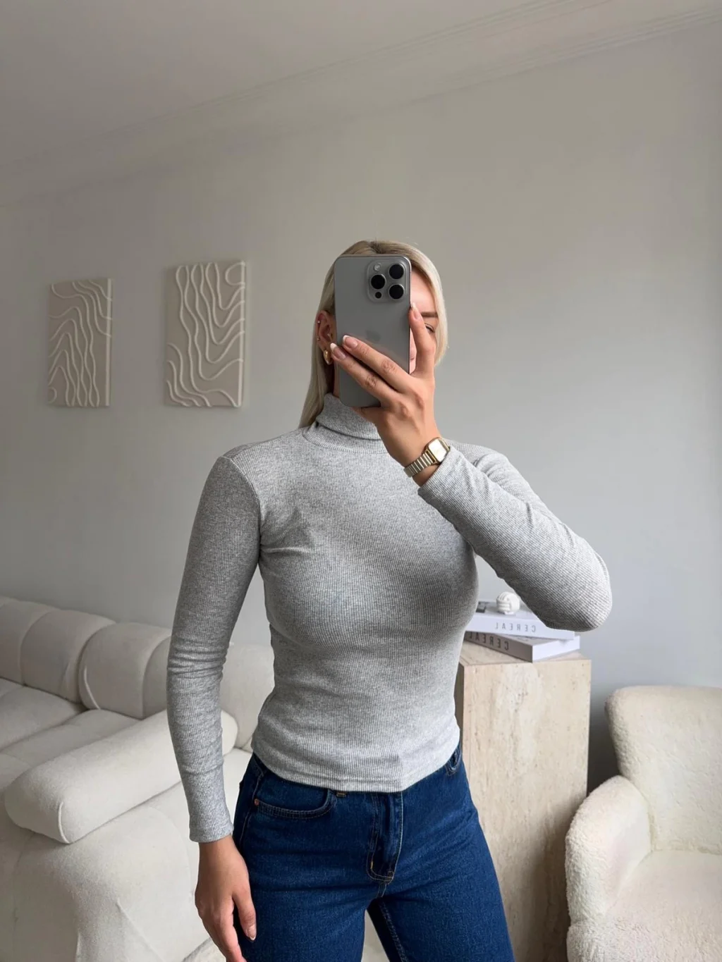 Basic Balıkçı Yaka Fit Bluz - GRİ