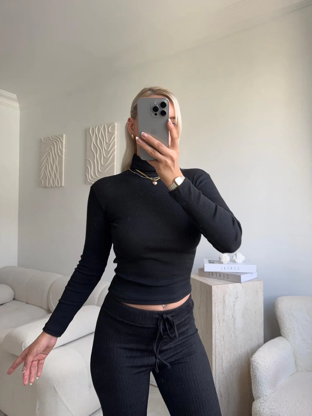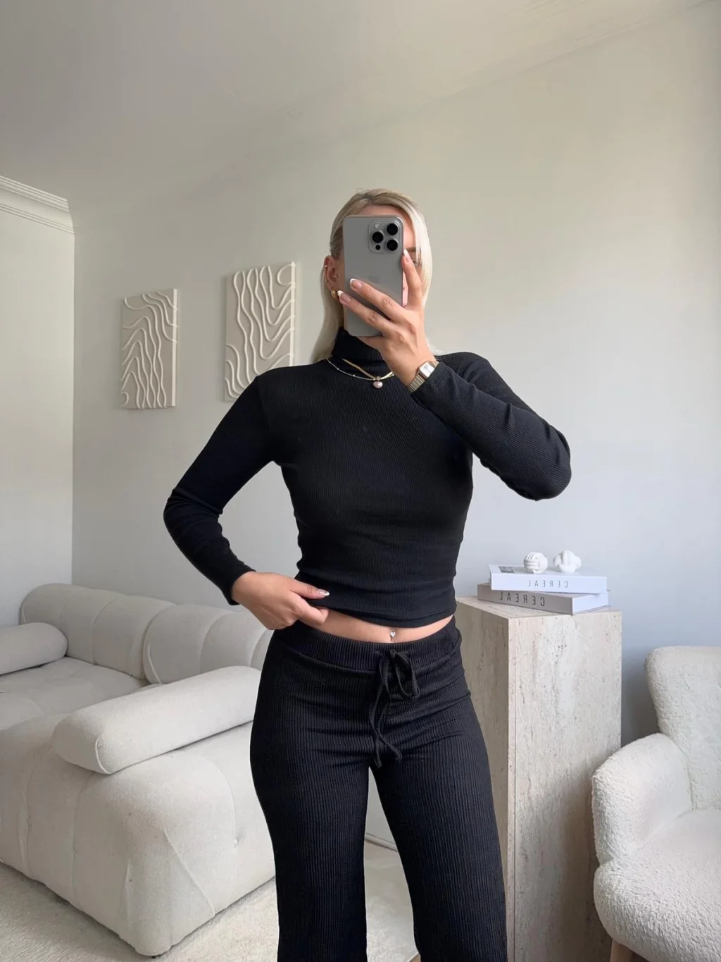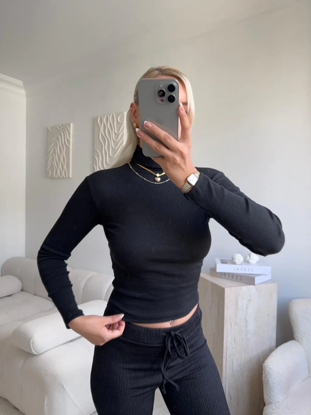 Basic Balıkçı Yaka Fit Bluz - SİYAH