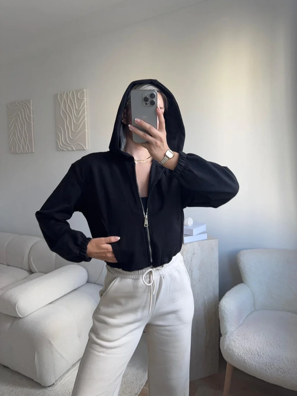Bel Lastik Crop Hırka - SİYAH