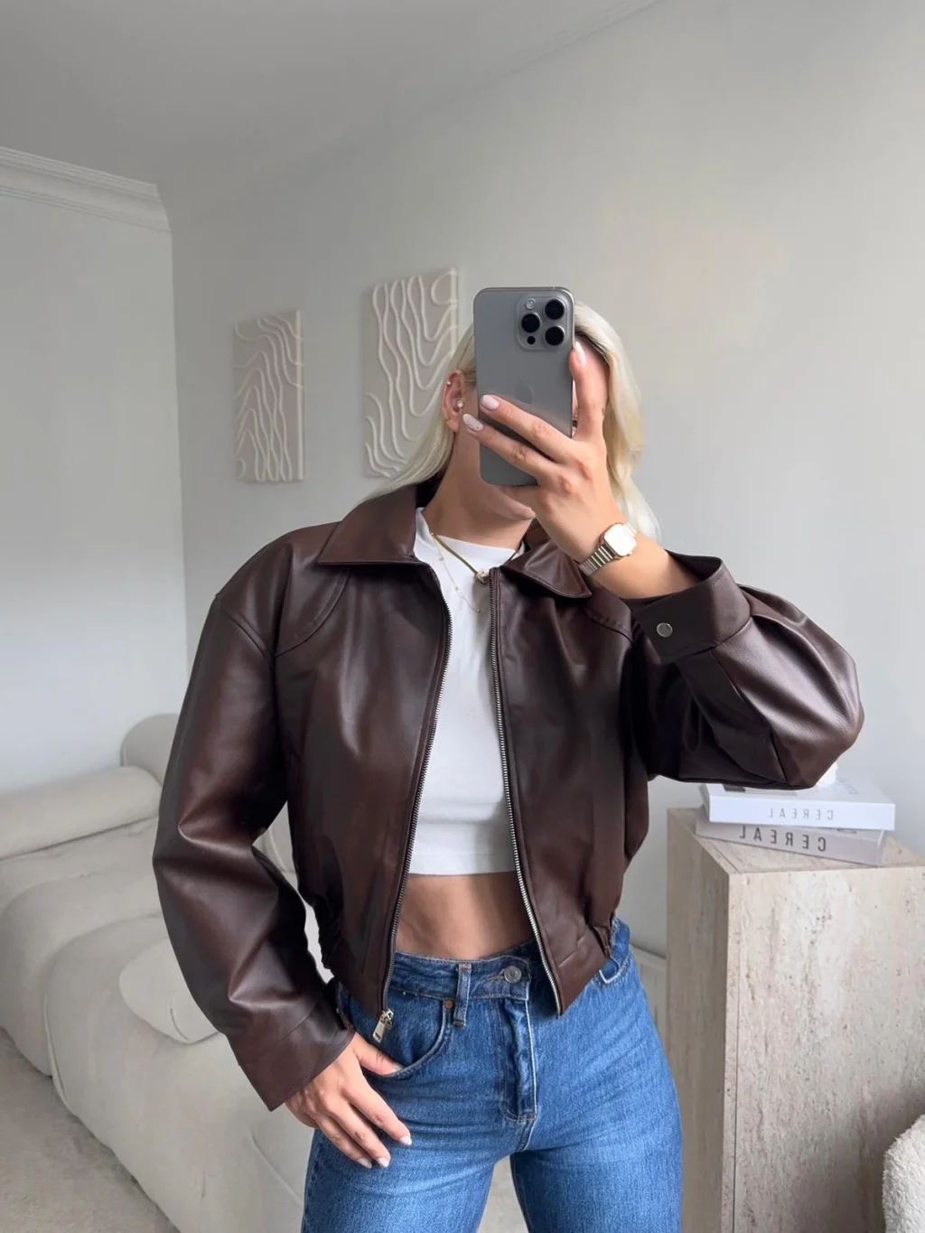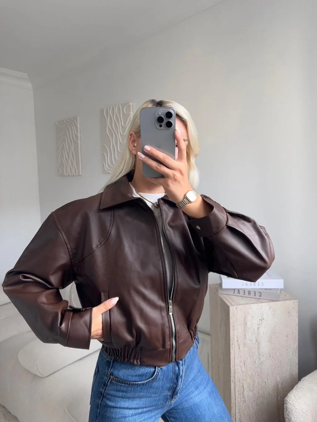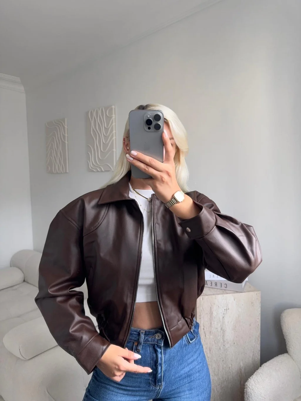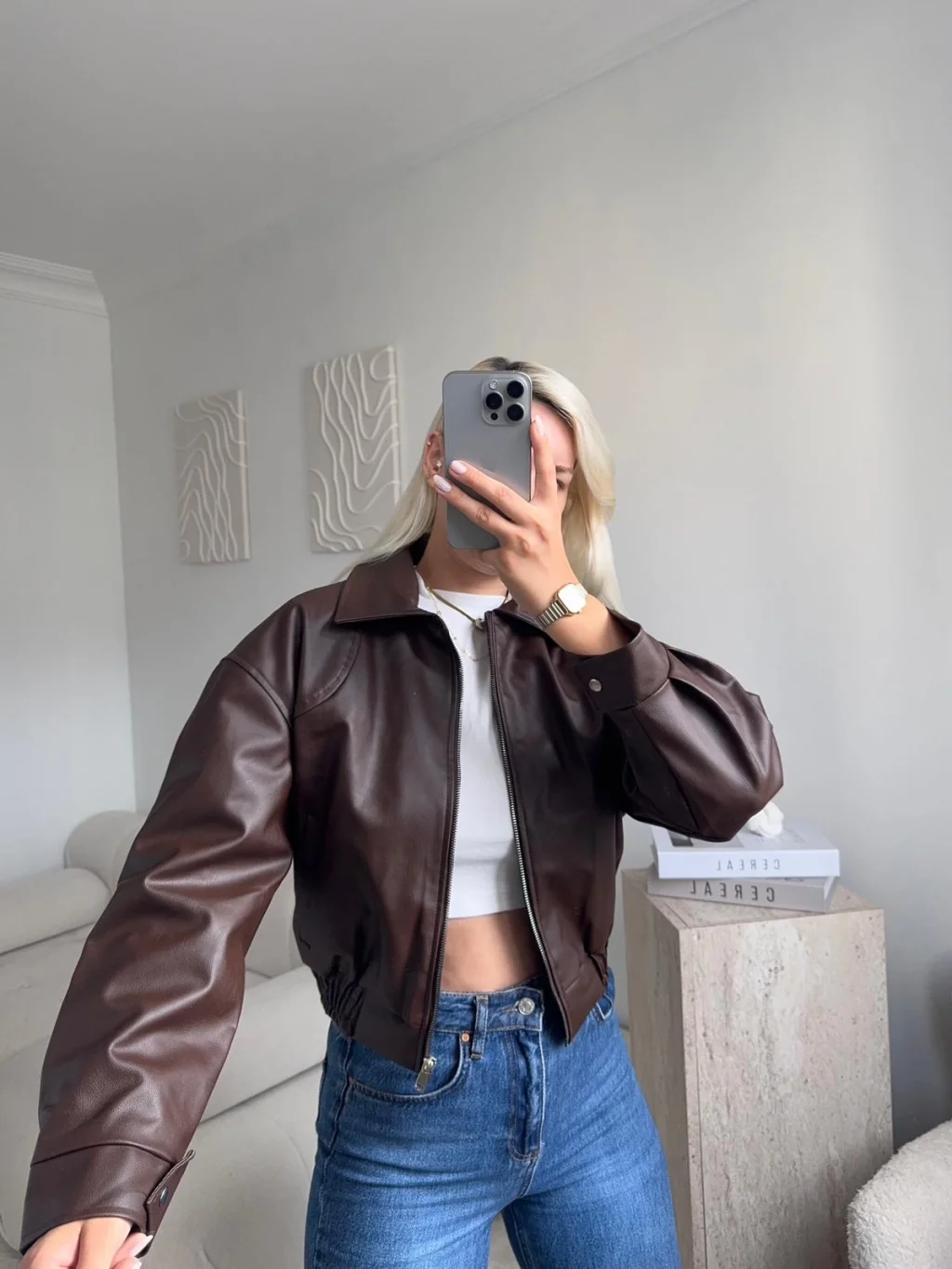 Bel Lastik Deri Ceket - KAHVE