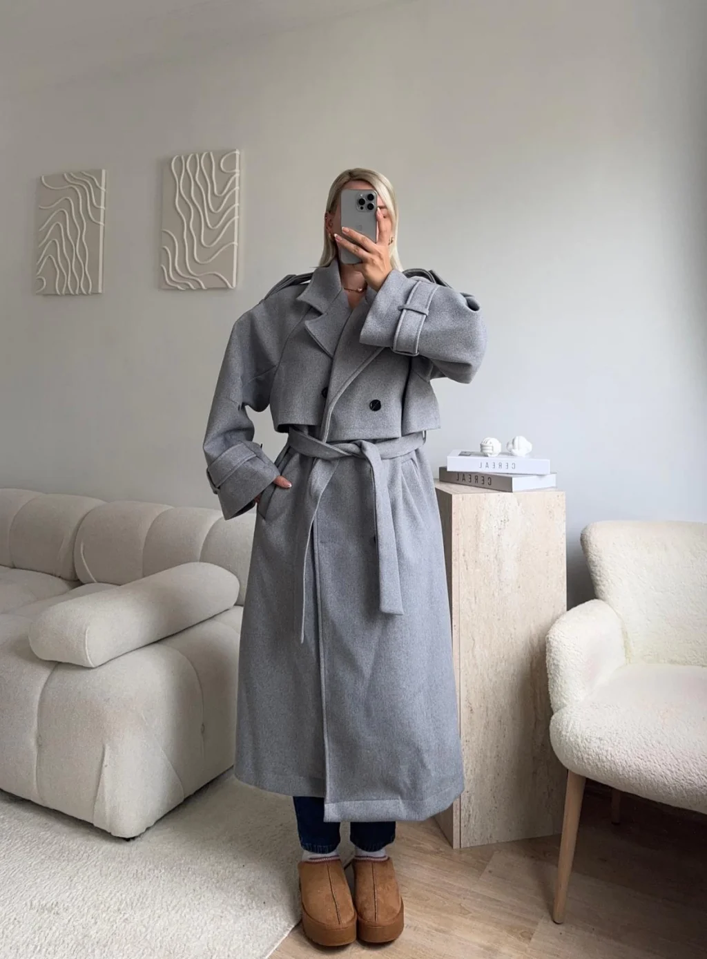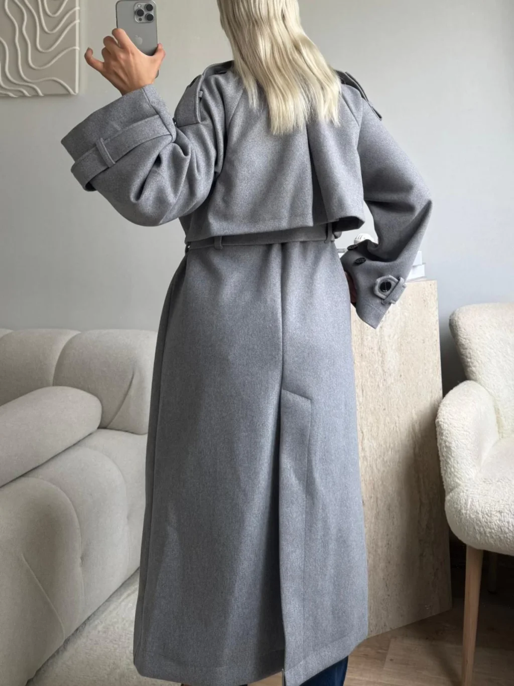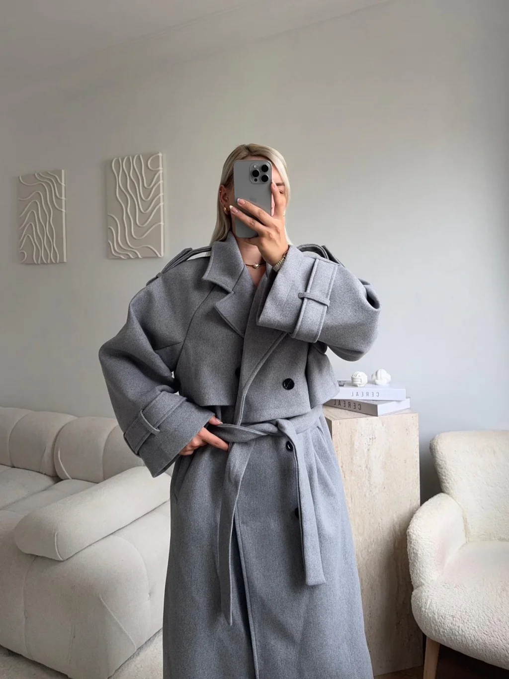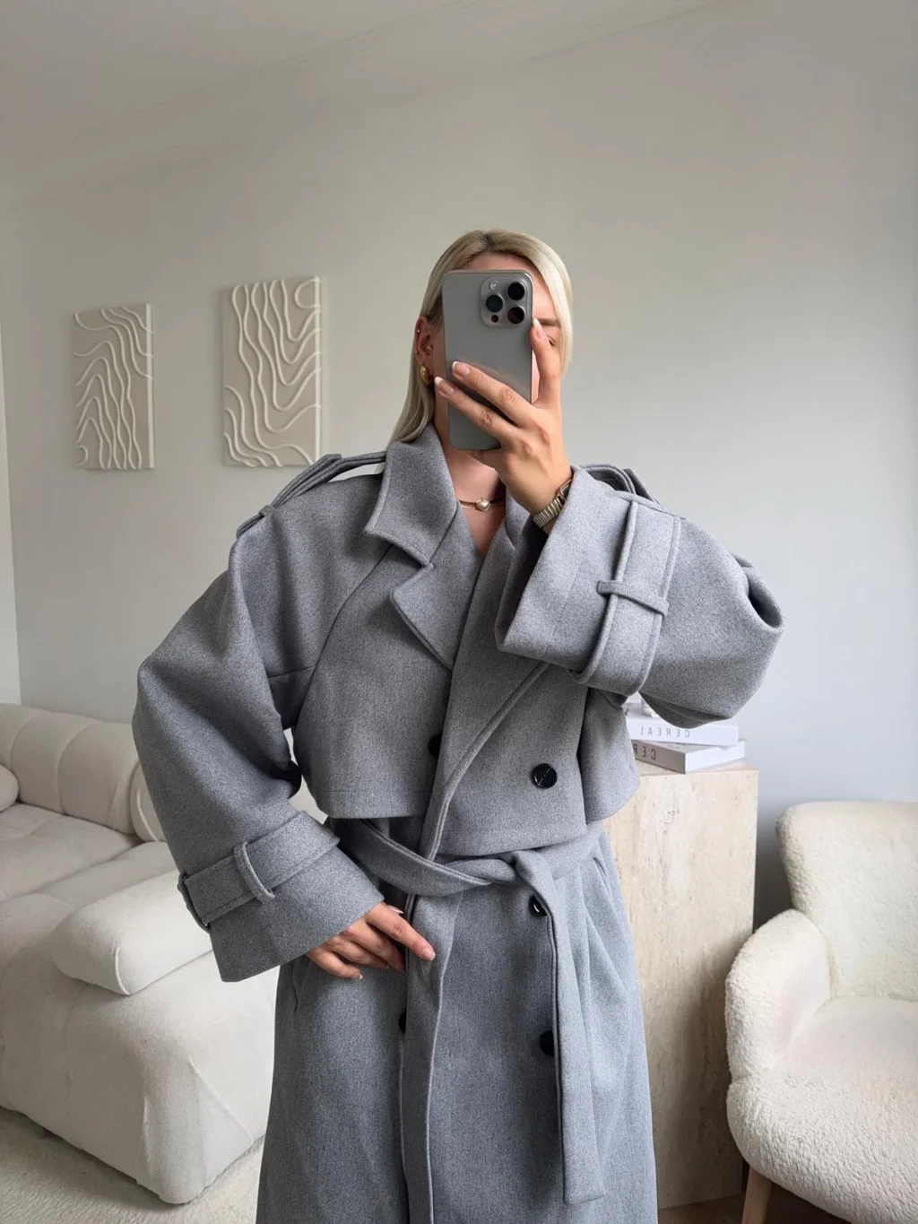 Beli Kuşaklı Kaşe Kaban - GRİ