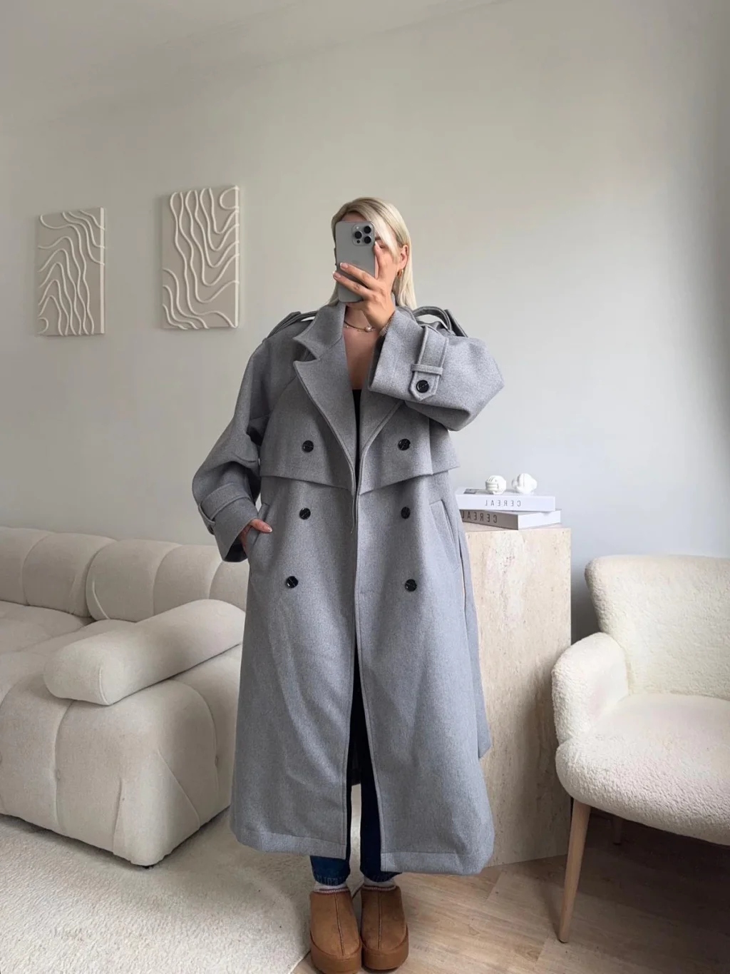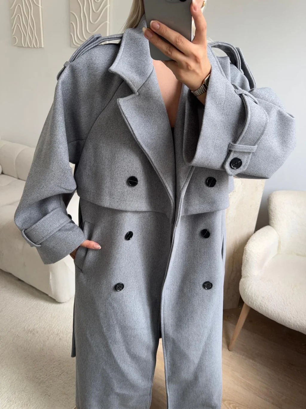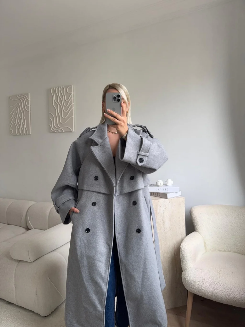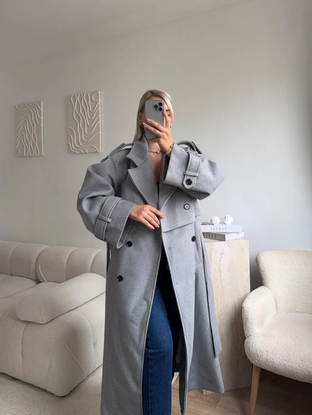 Beli Kuşaklı Kaşe Kaban - GRİ