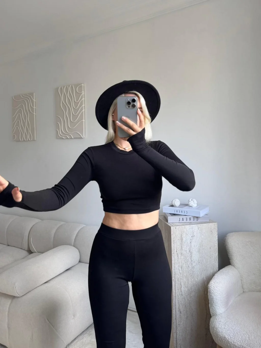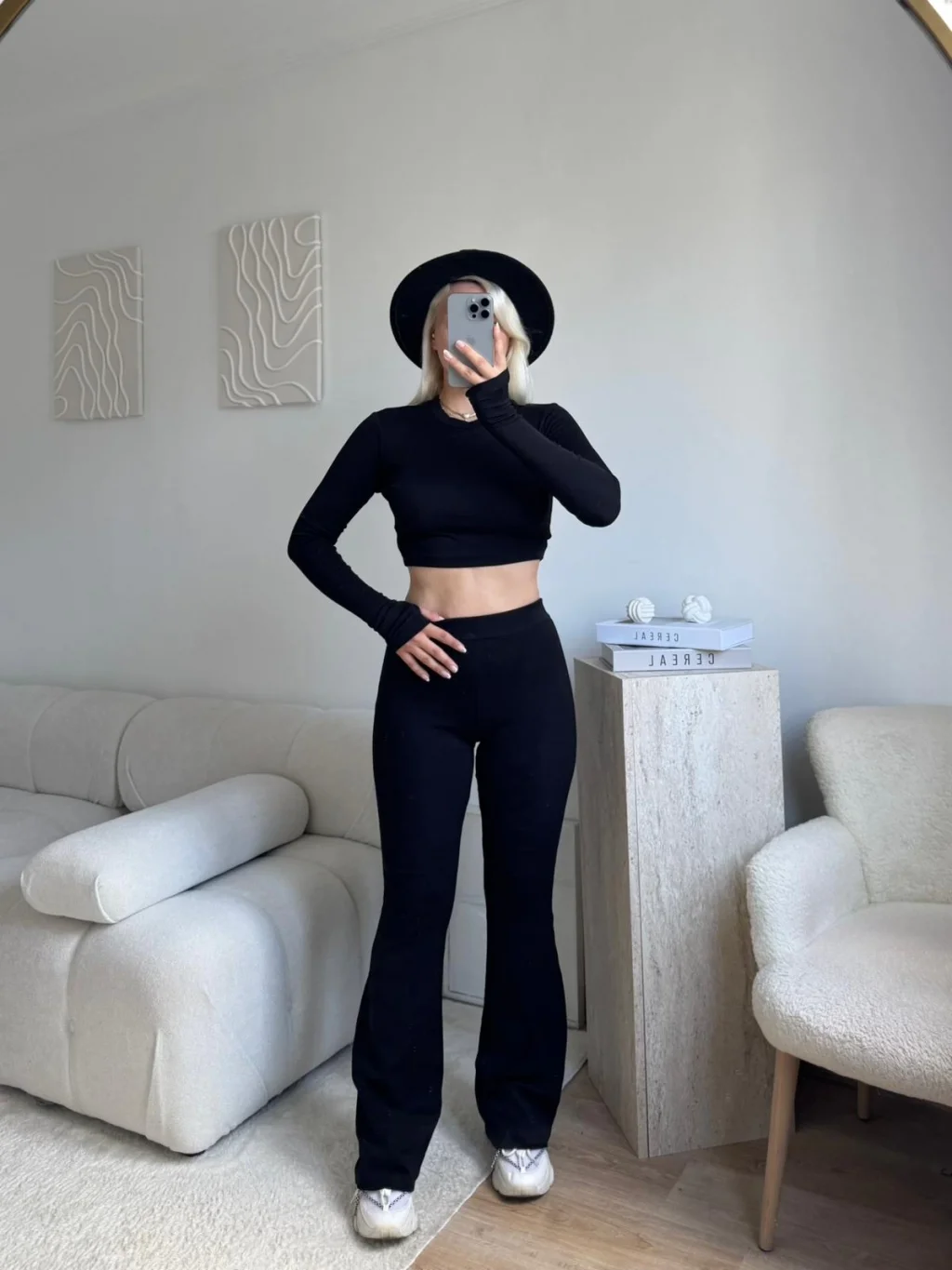 BSK Basic Crop & Taytlı Takım - SİYAH