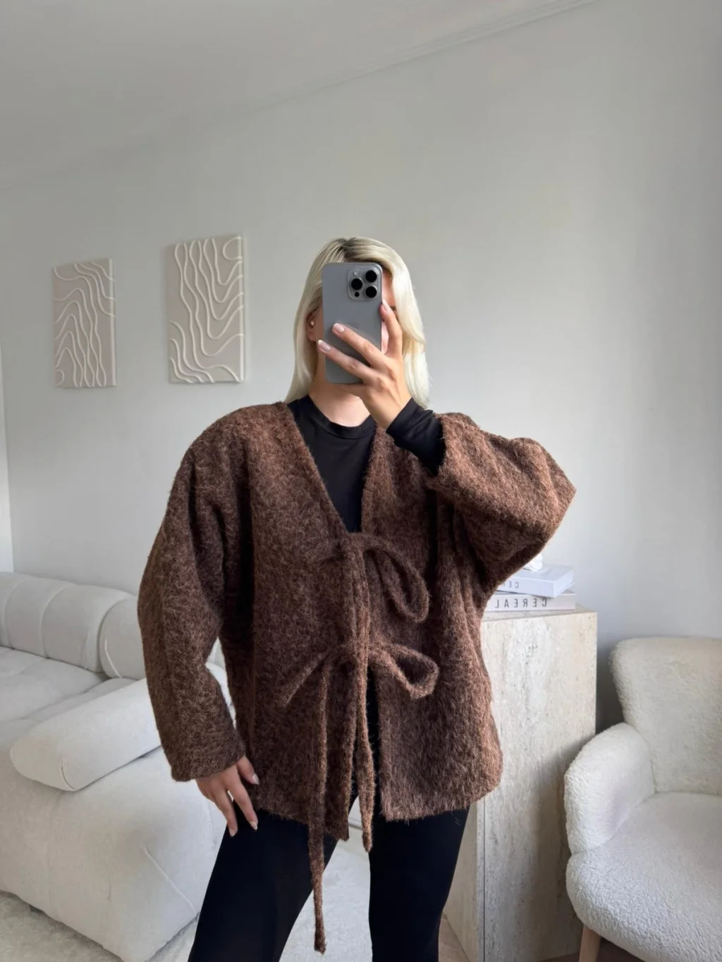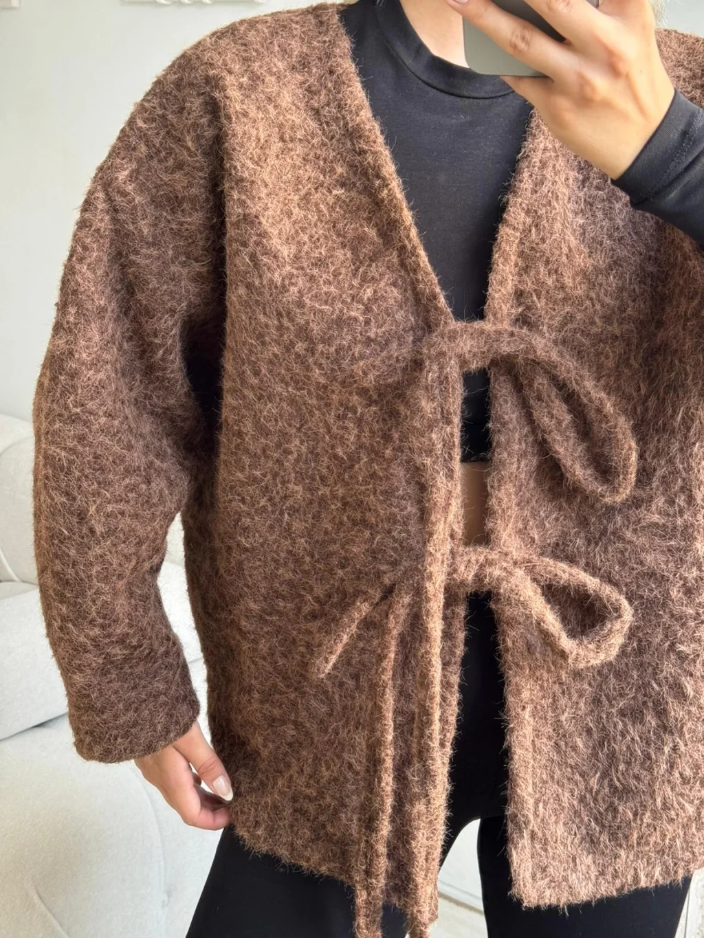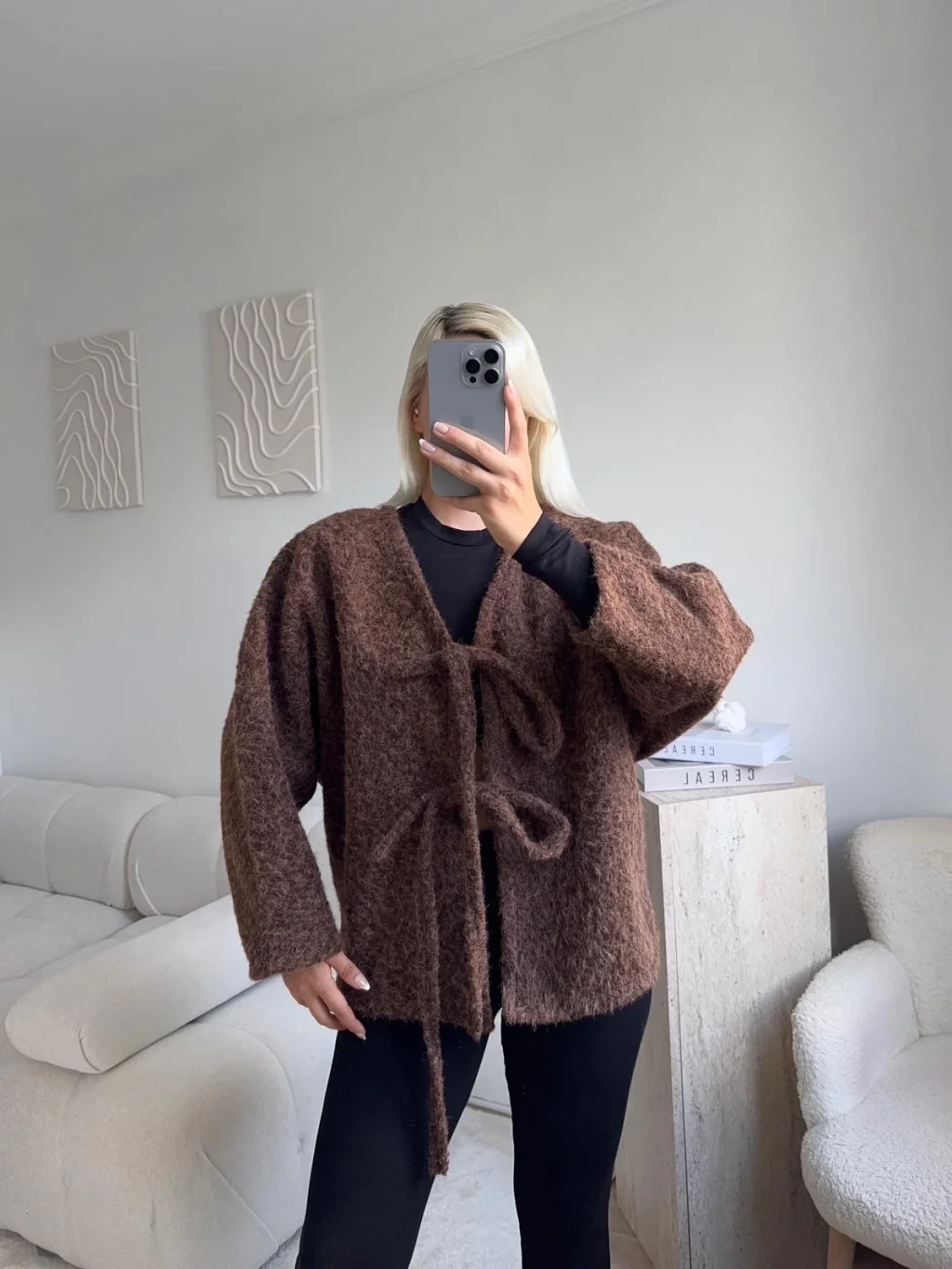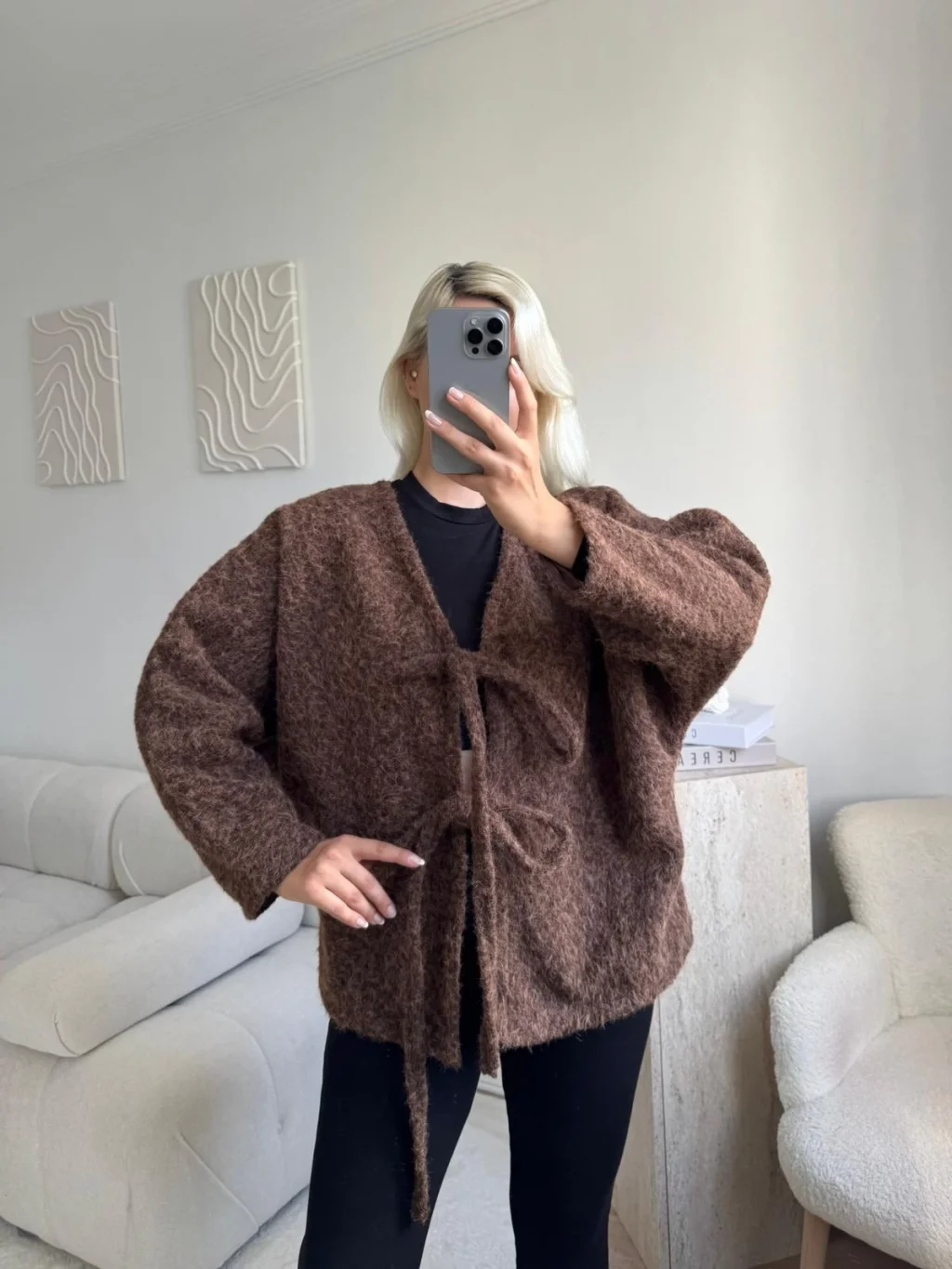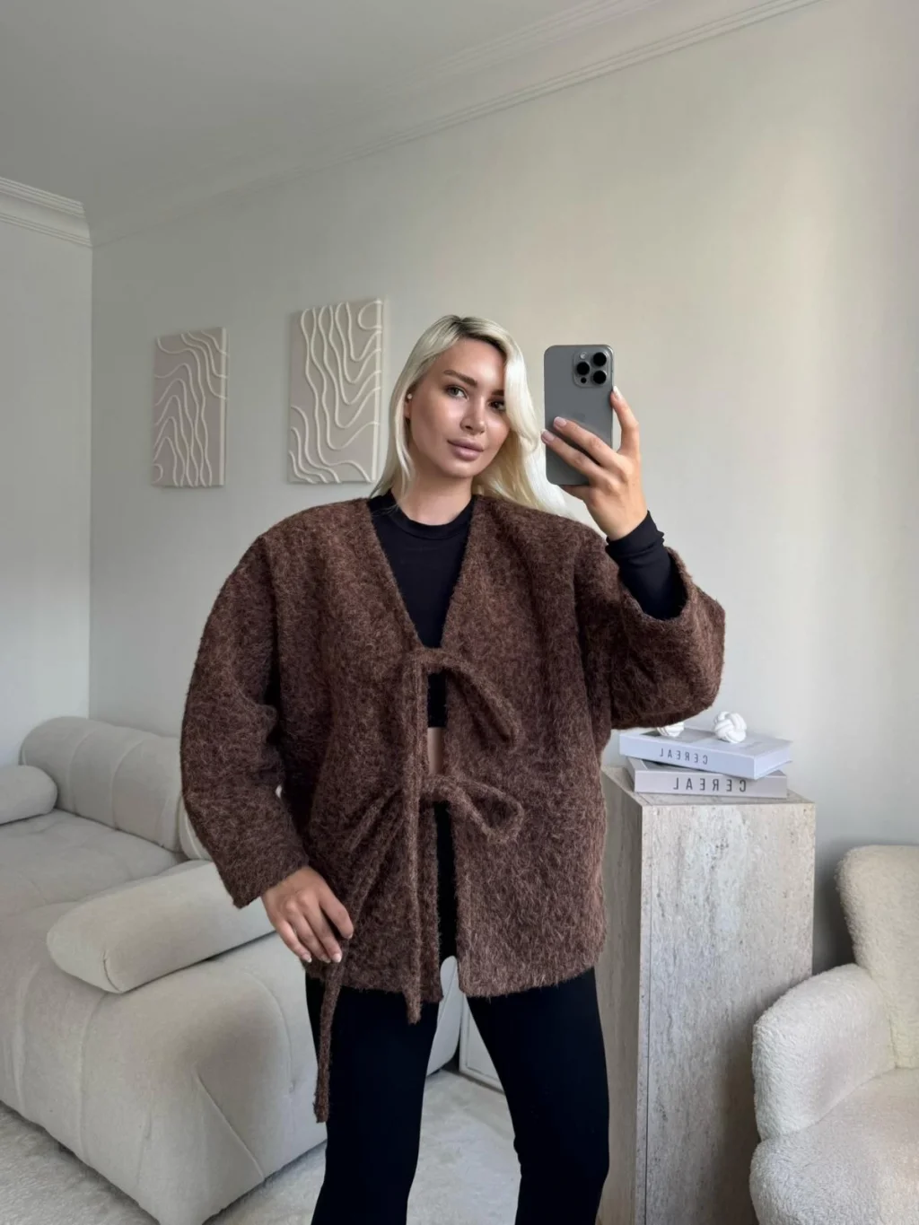 Fiyonklu Kırçıllı Ceket - KAHVE