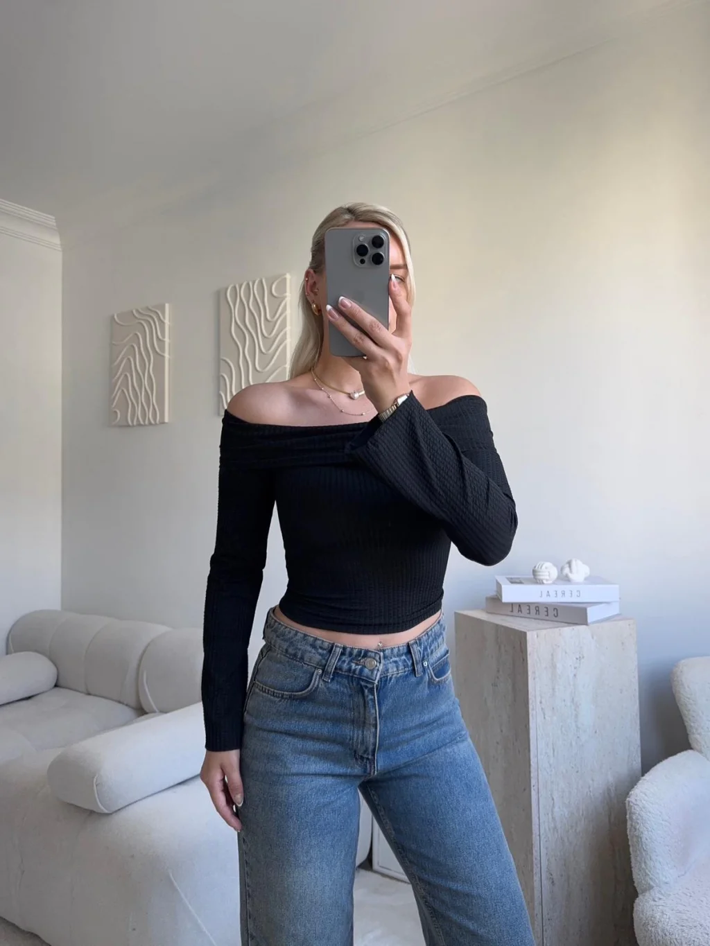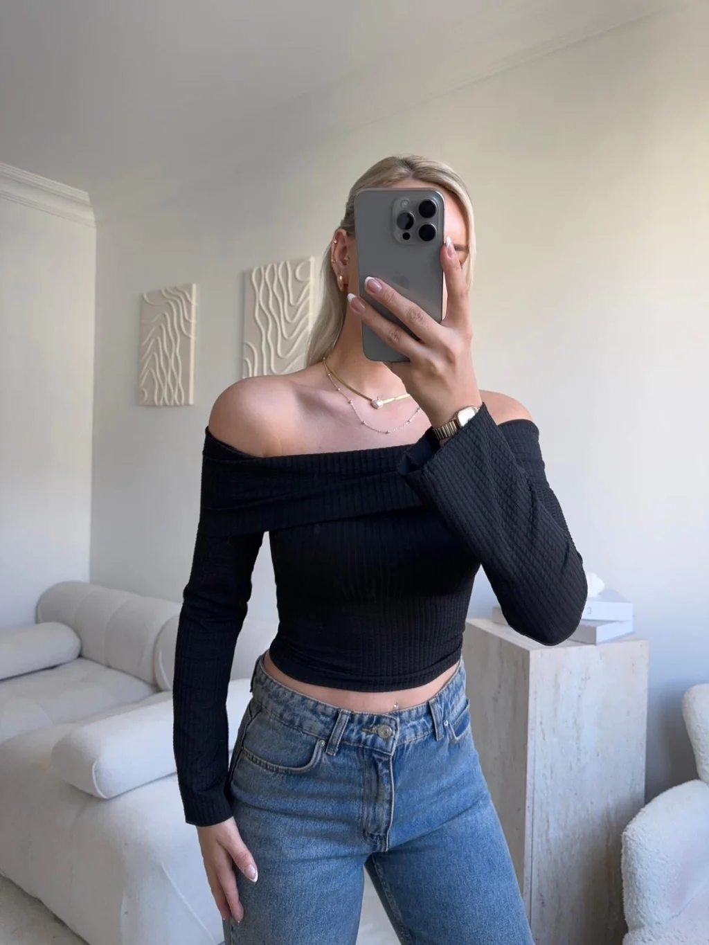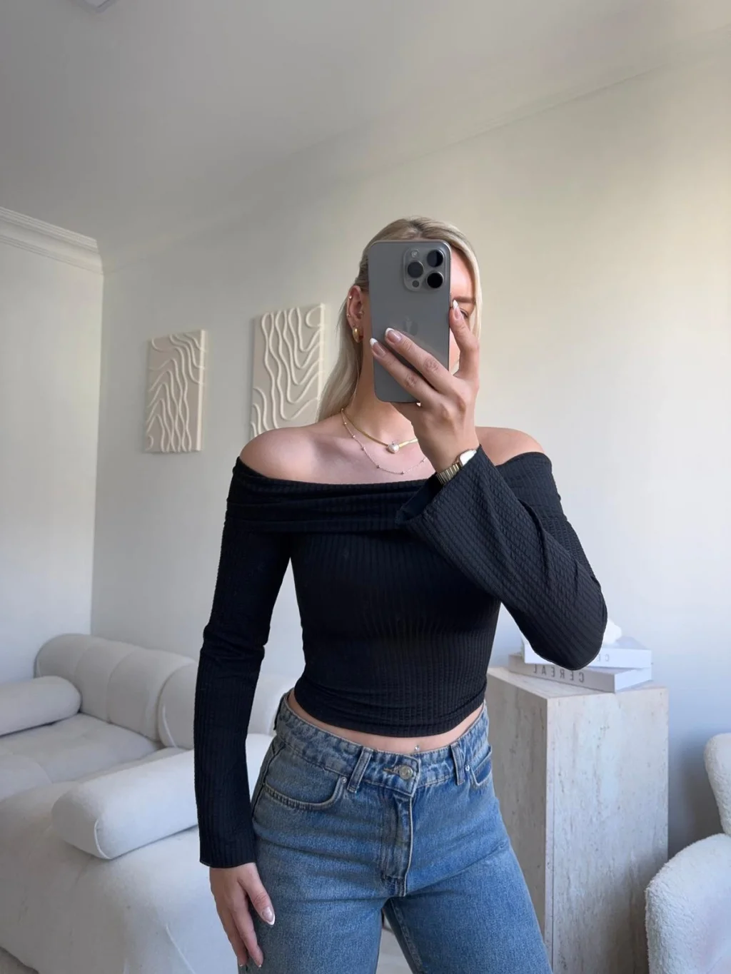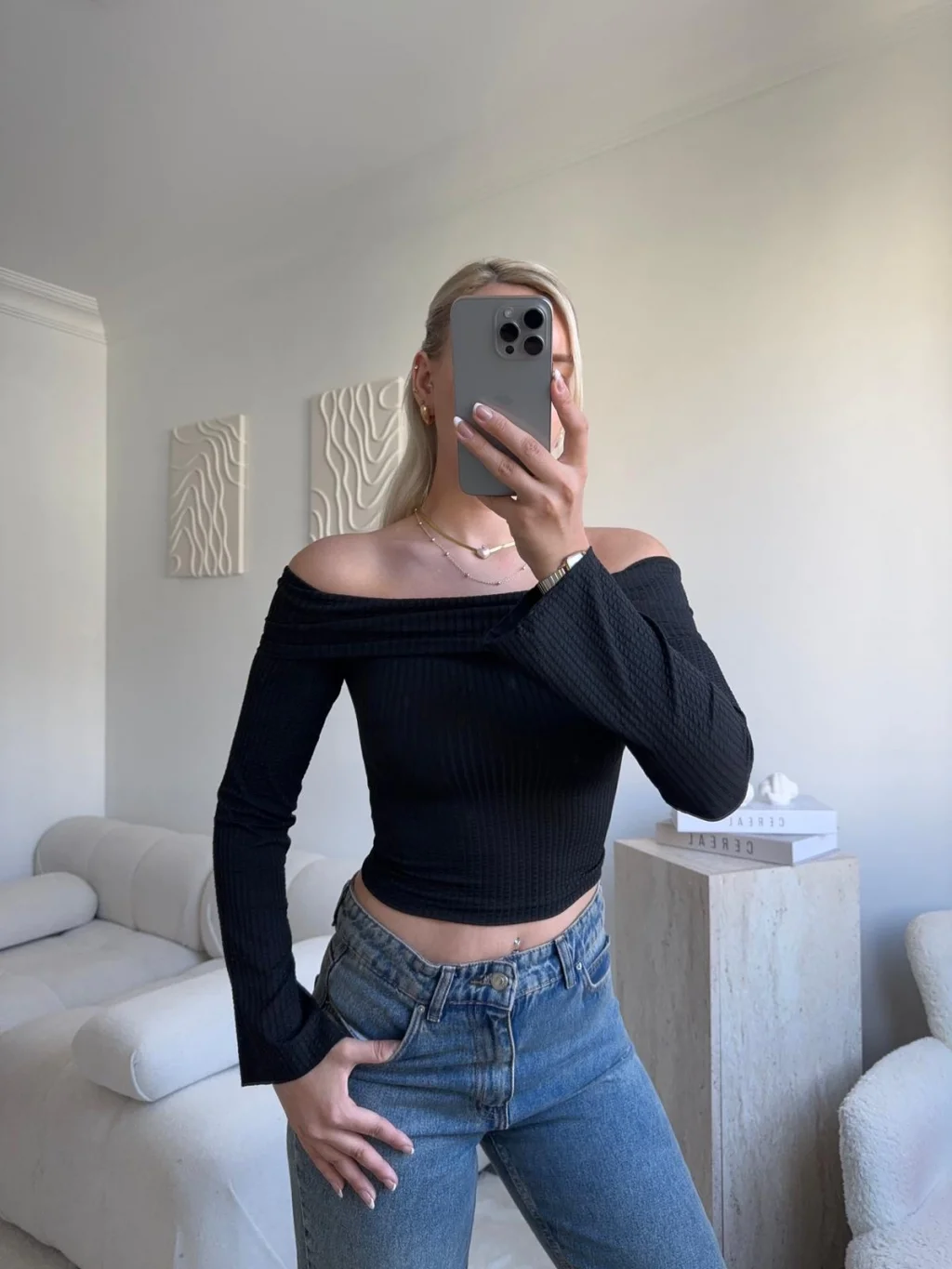 Gofre Madonna Yaka Crop - SİYAH
