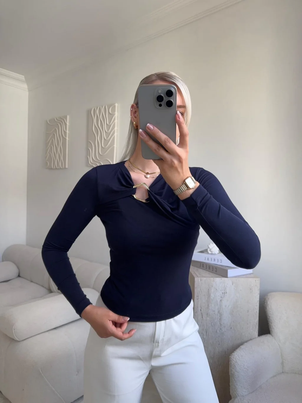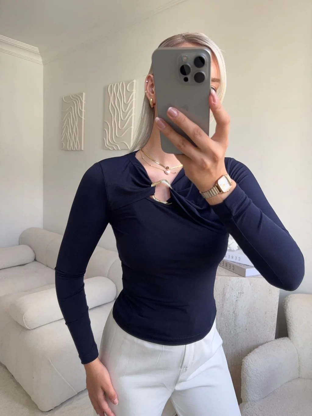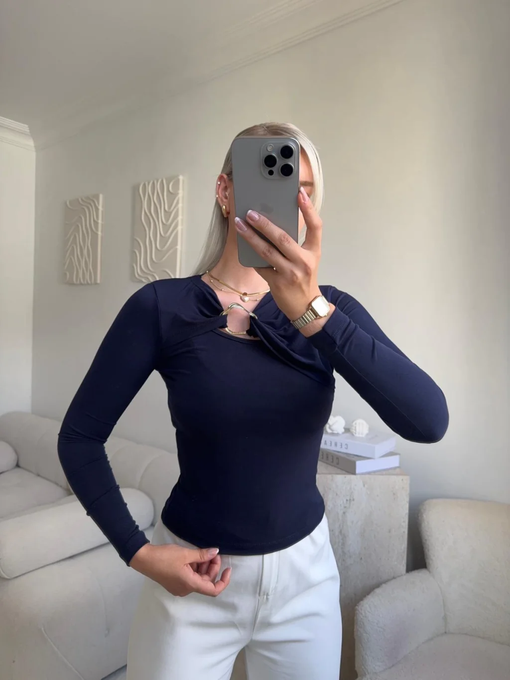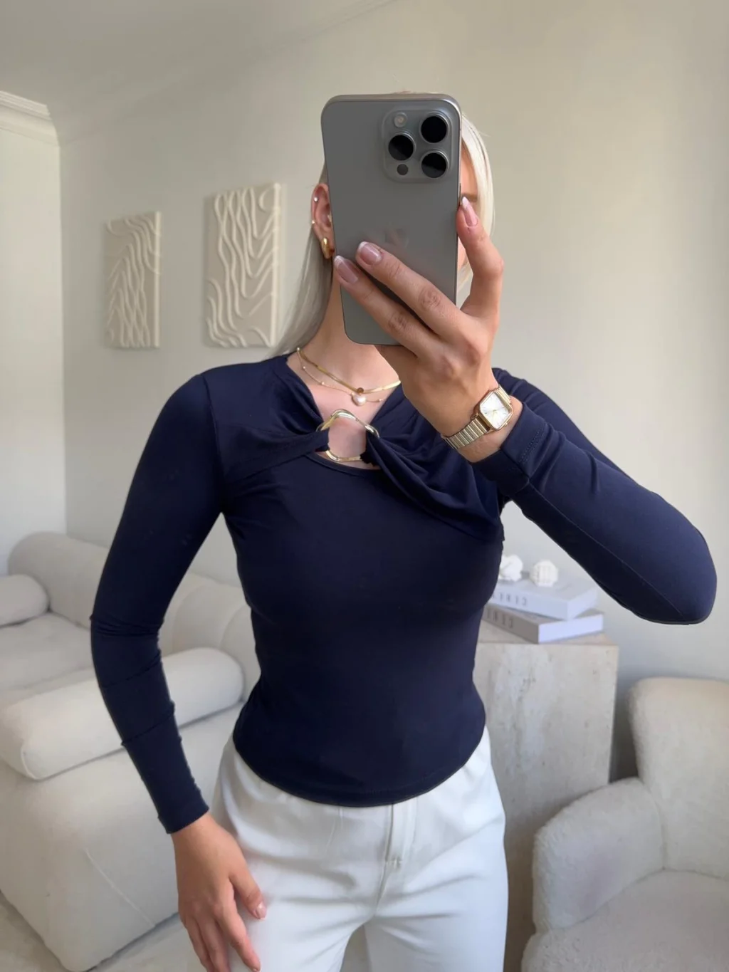 Göğüs Aksesuar Bluz - LACİVERT