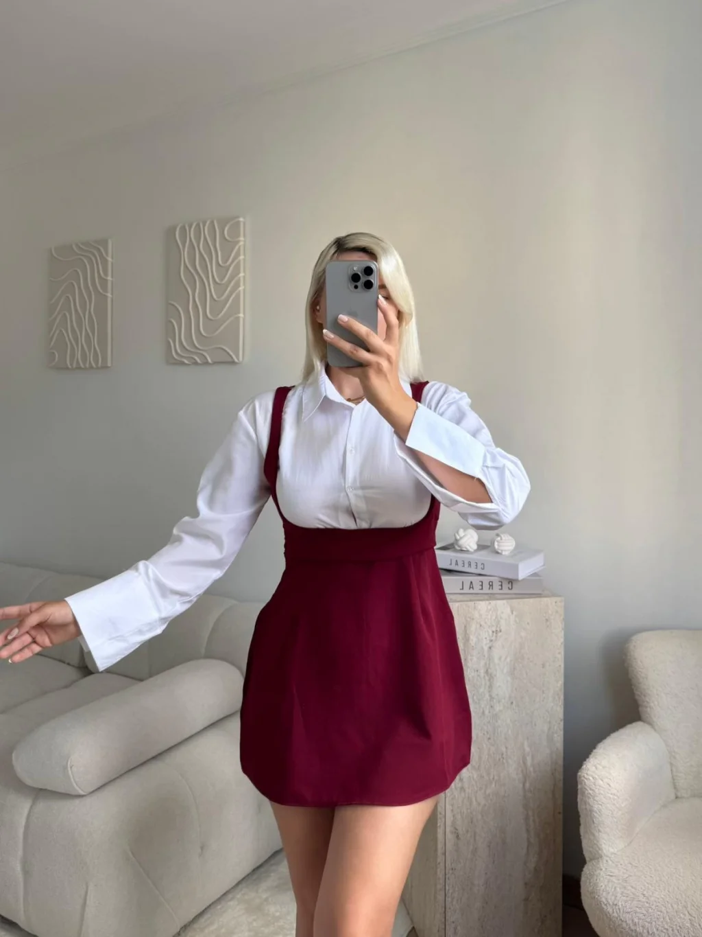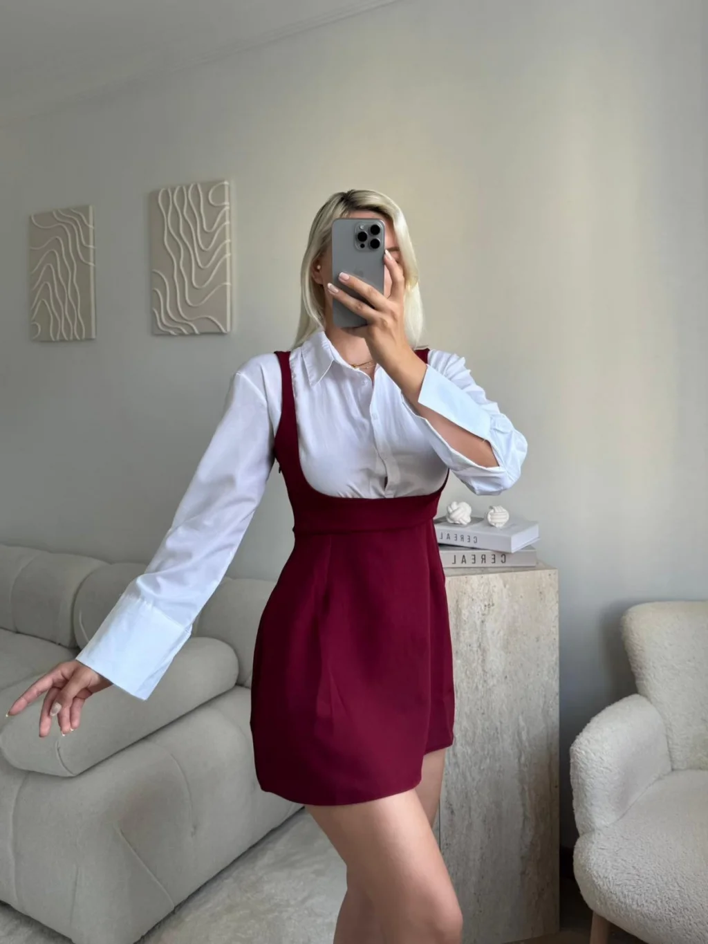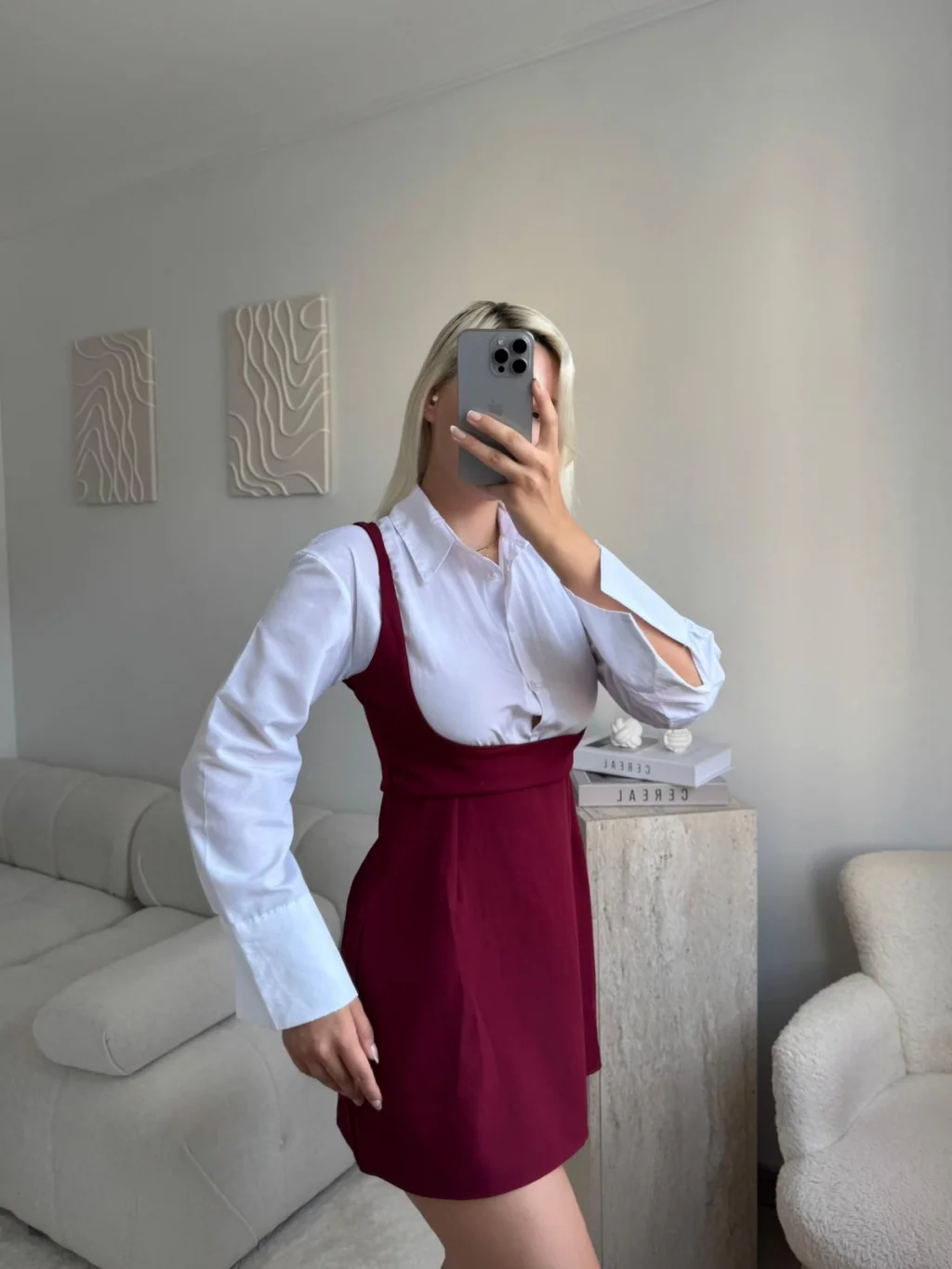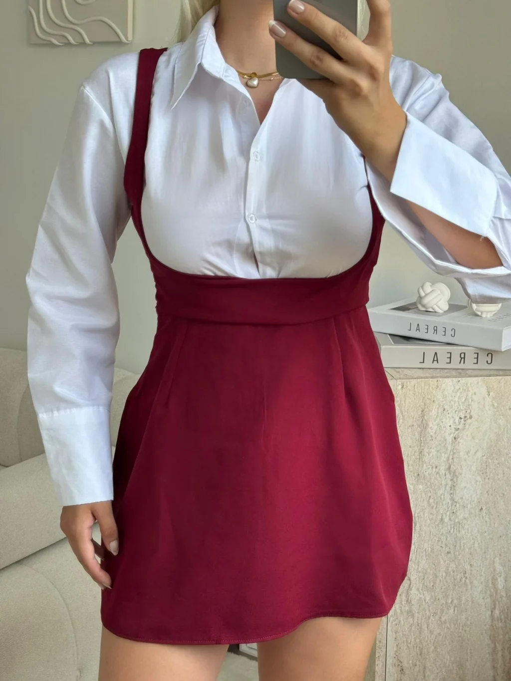 Gömlek Detay Salopet Elbise - BORDO