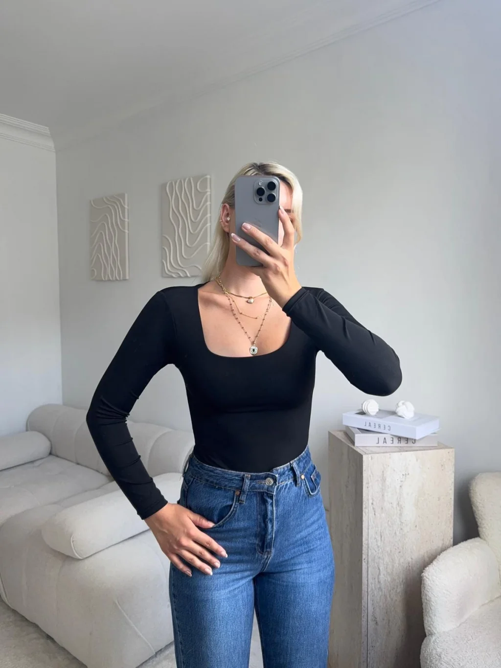 Kare Yaka Bodysuit - SİYAH