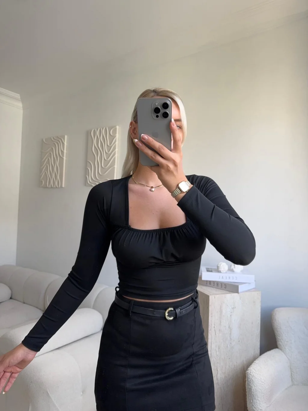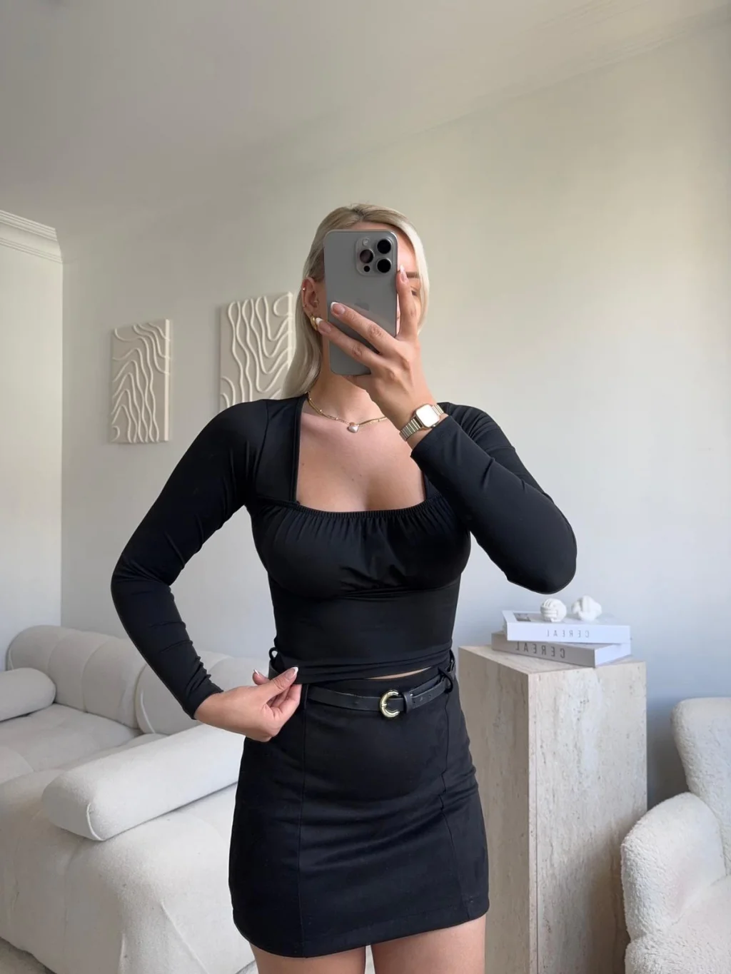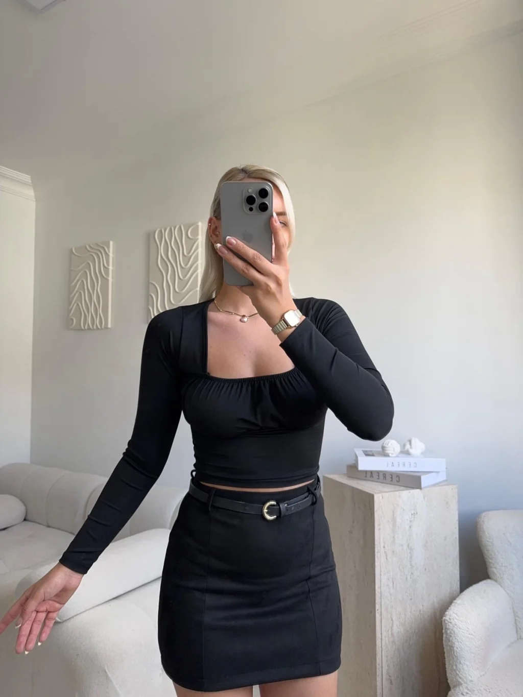 Kare Yaka Büzgü Detay Crop - SİYAH