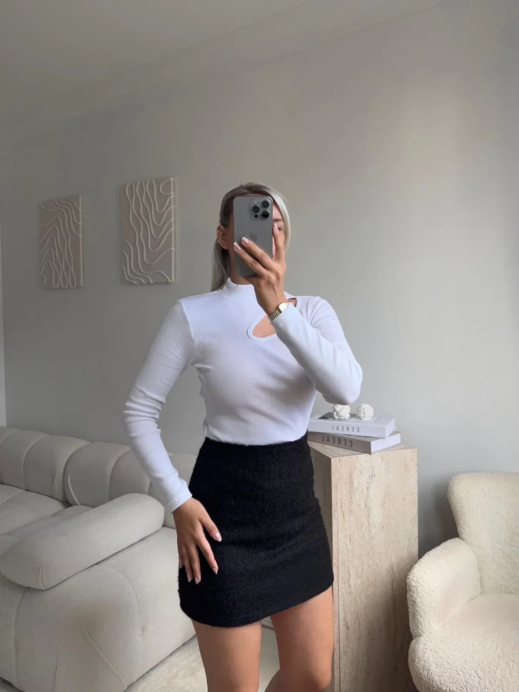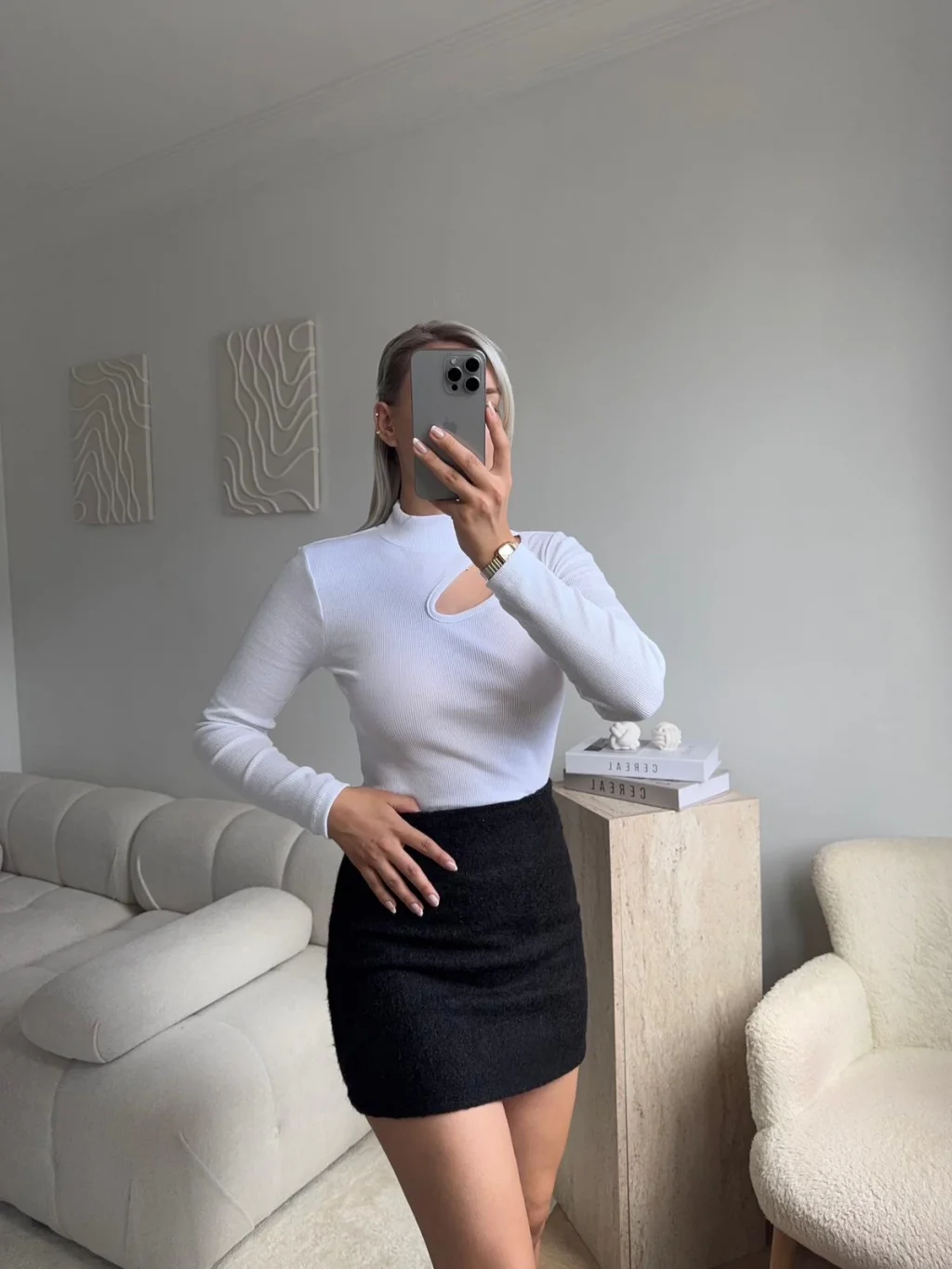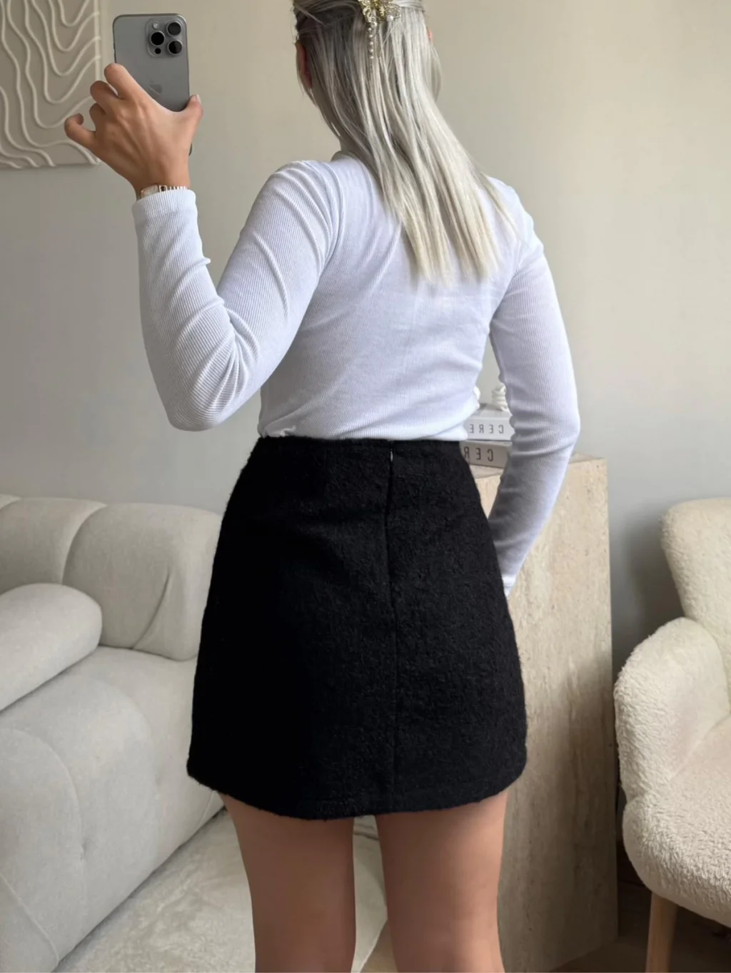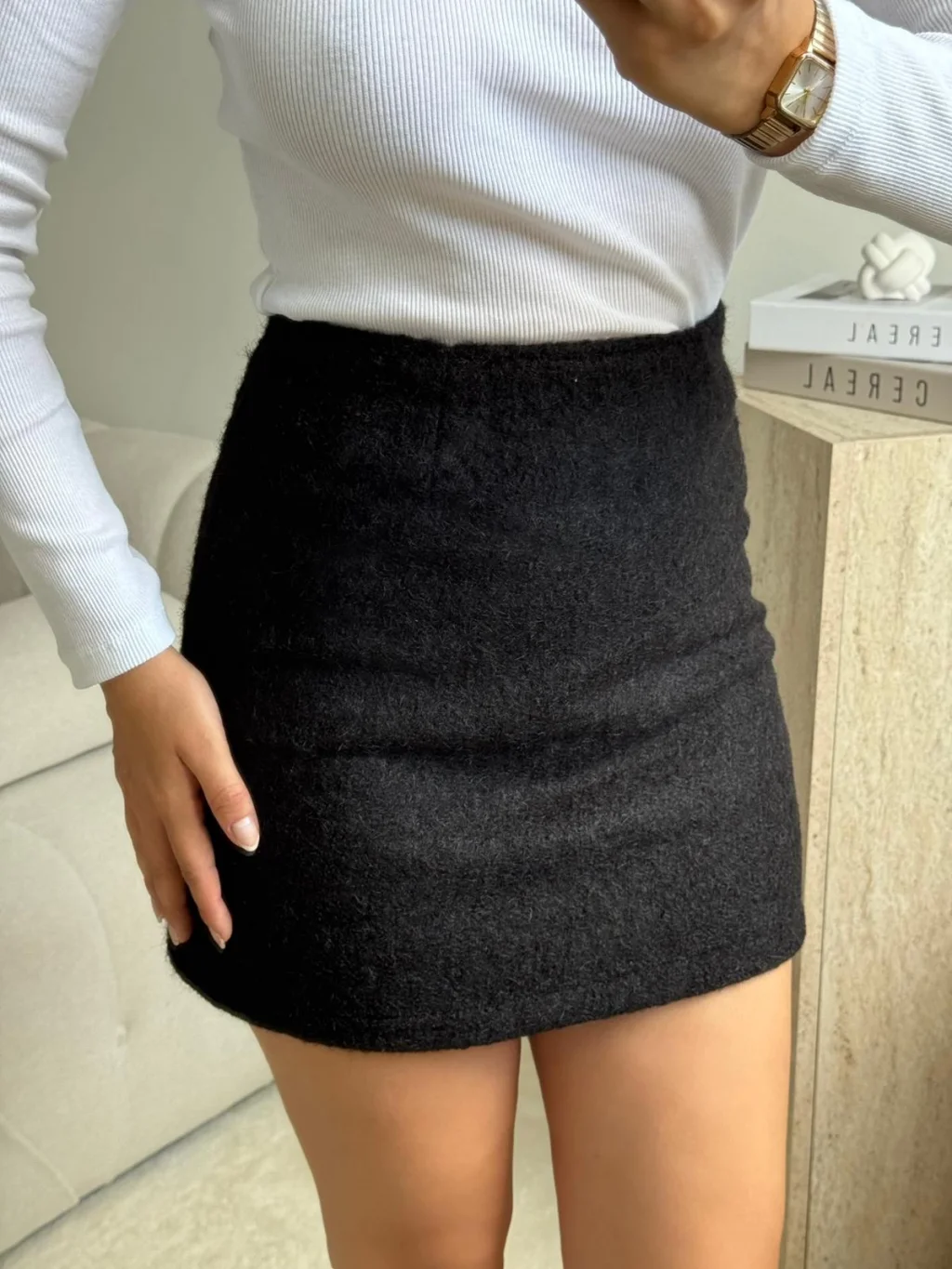 Kırçıllı Kaşe Etek - SİYAH