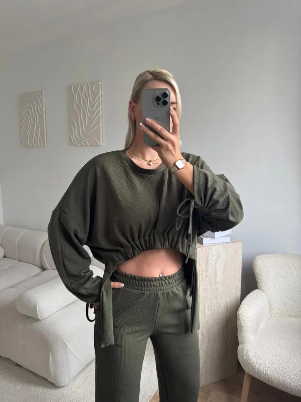 Körüklü Crop & Pantolon Takım - YEŞİL