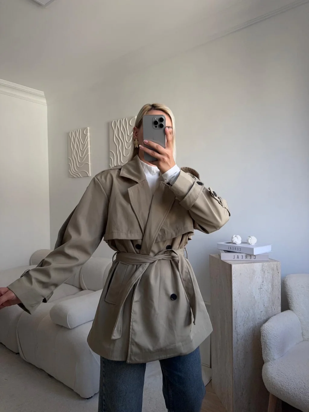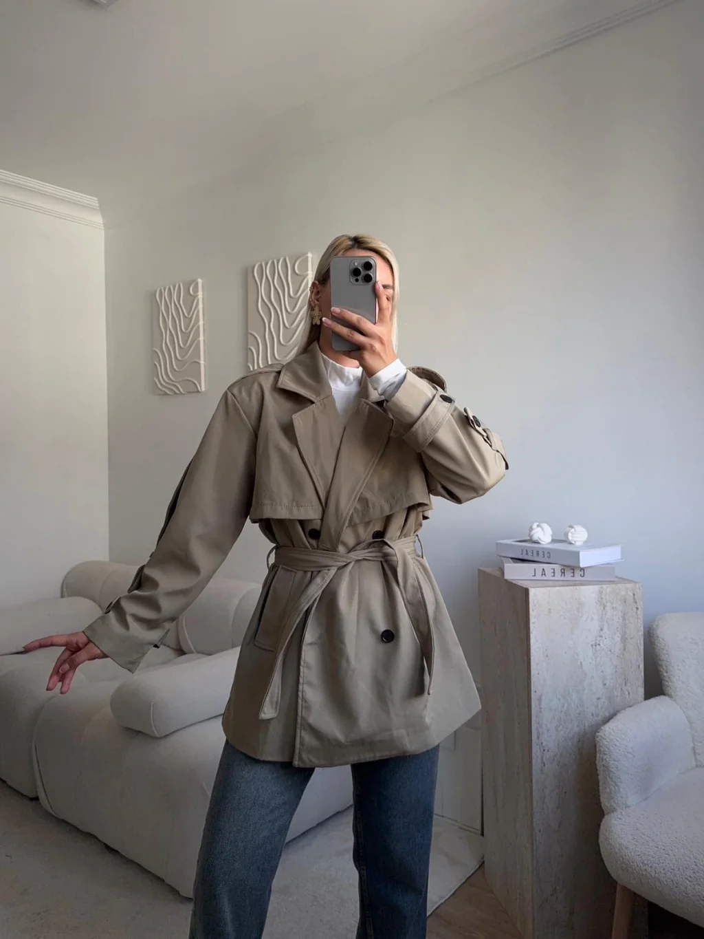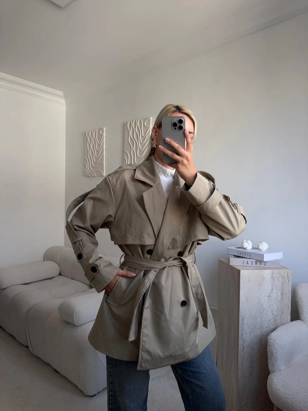 Kuşaklı Midi Trençkot - VİZON