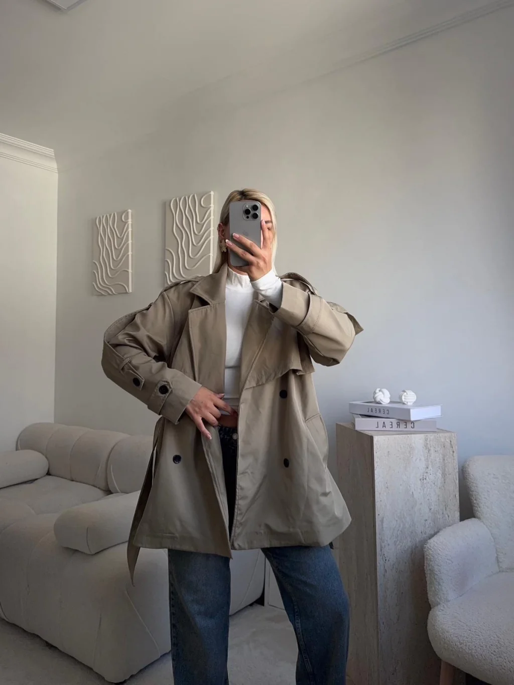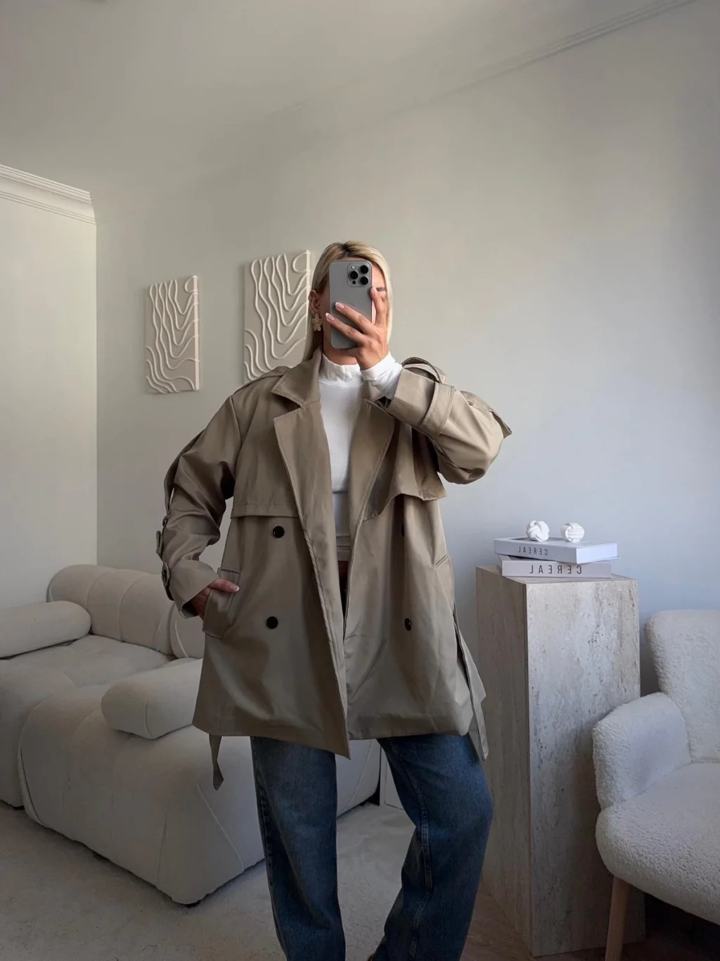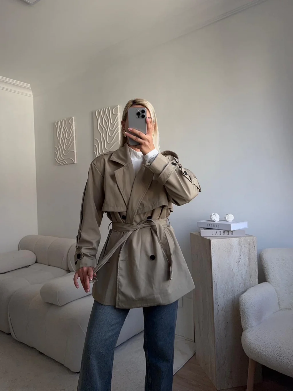 Kuşaklı Midi Trençkot - VİZON