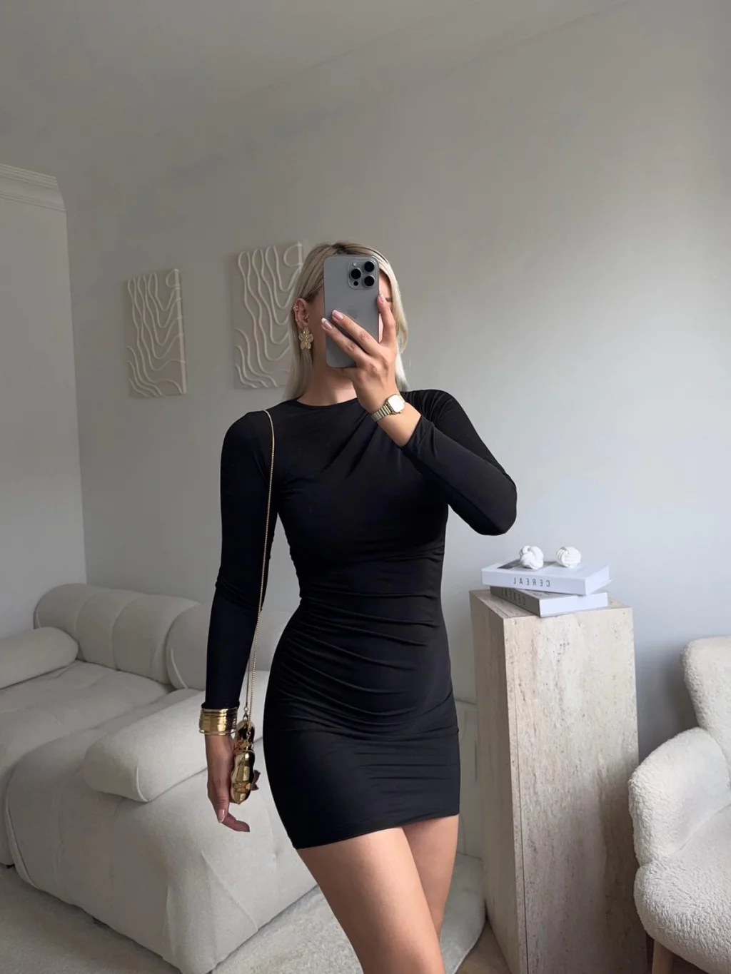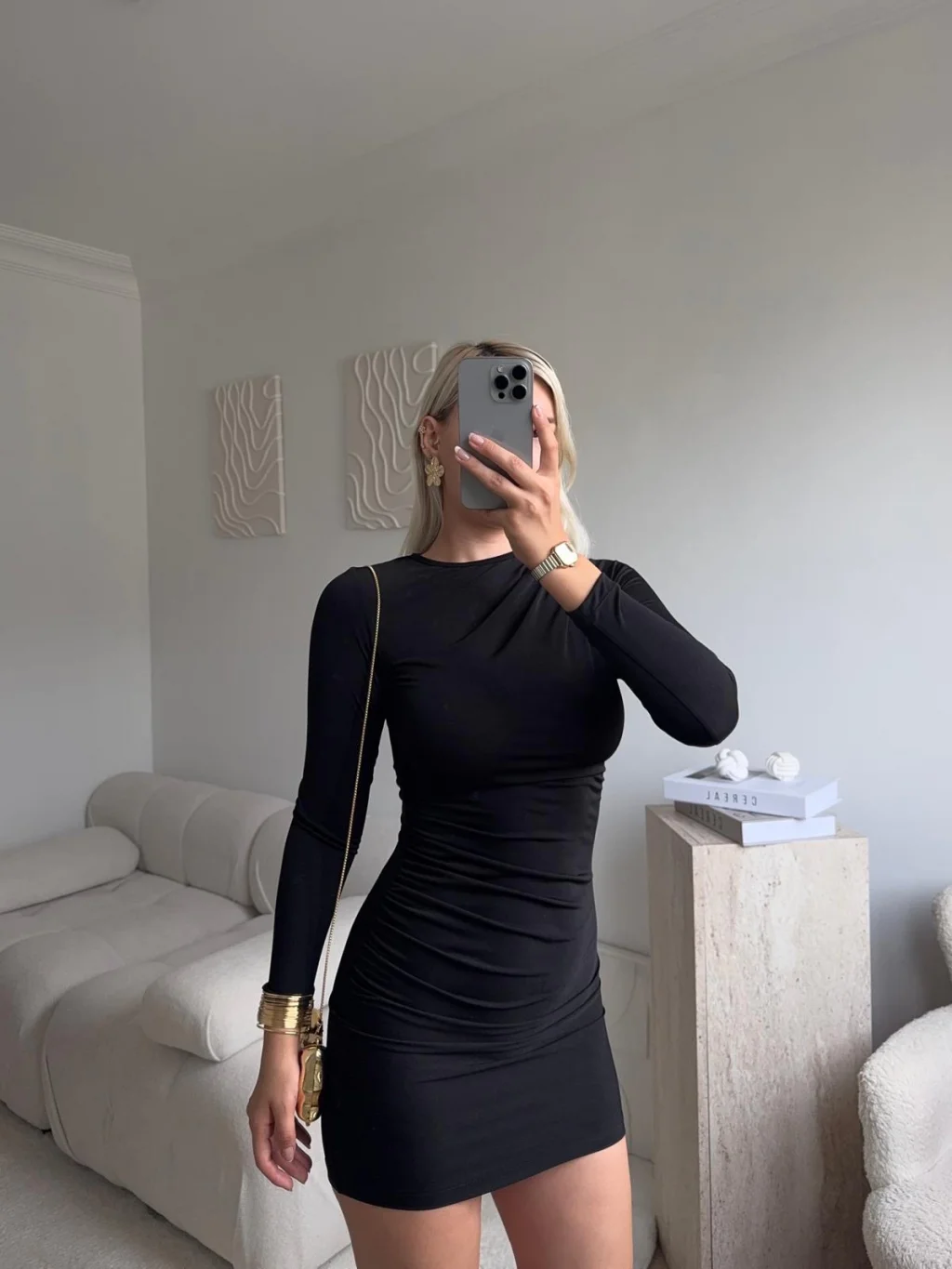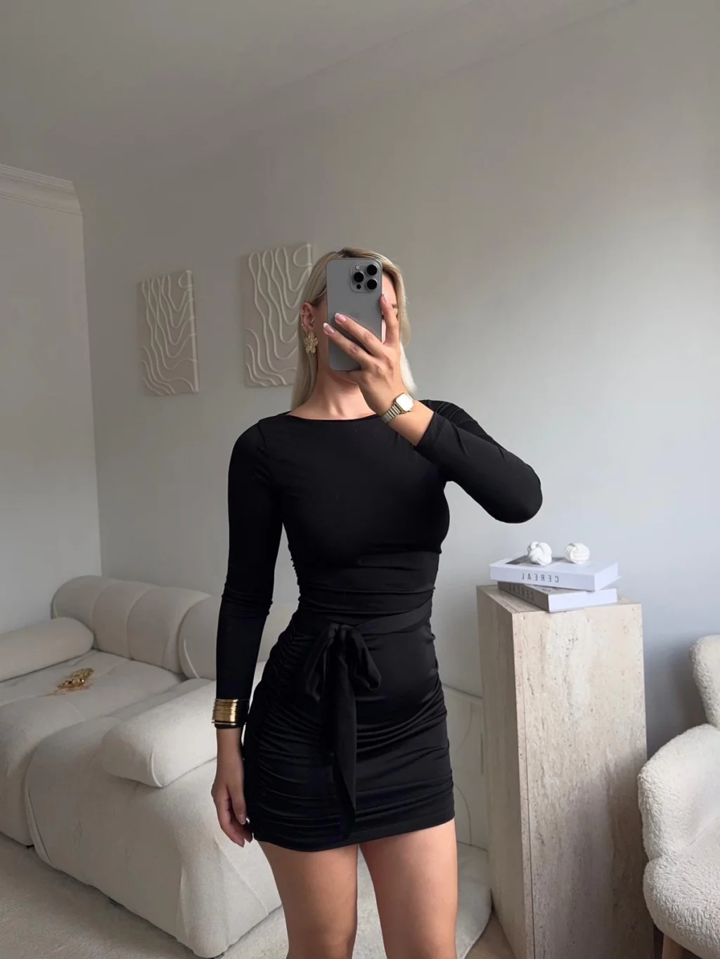 Kuşaklı Sandy Elbise - SİYAH
