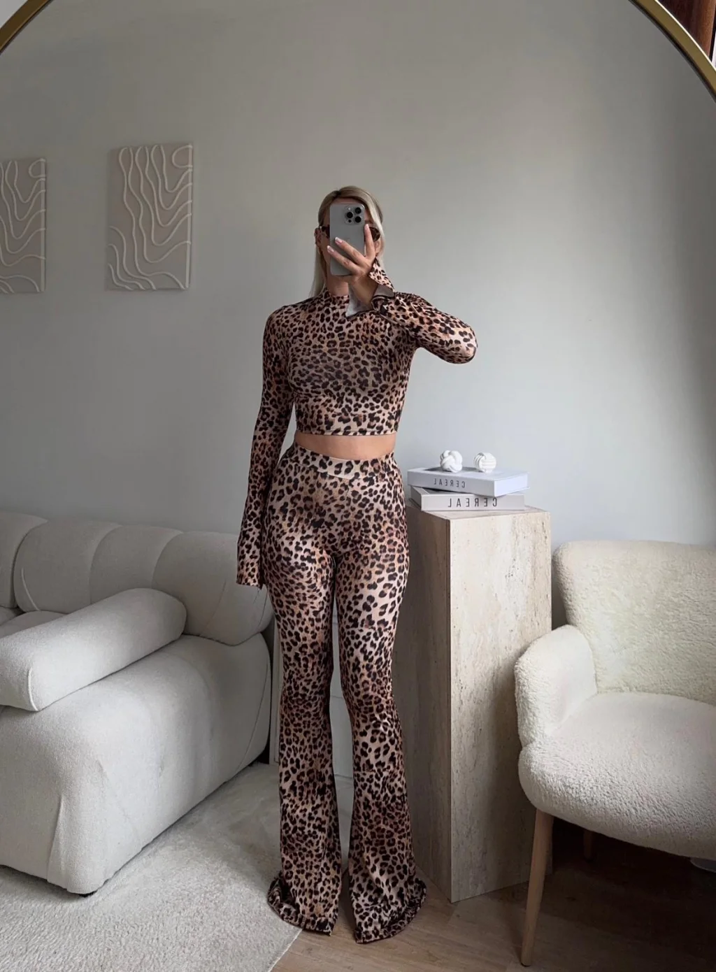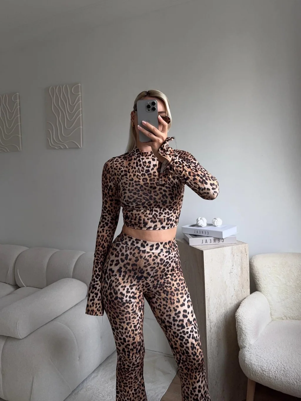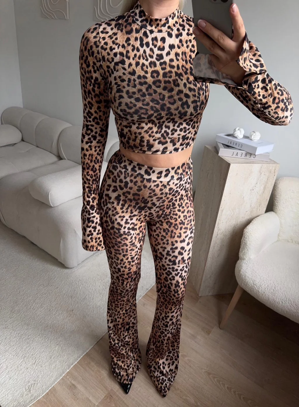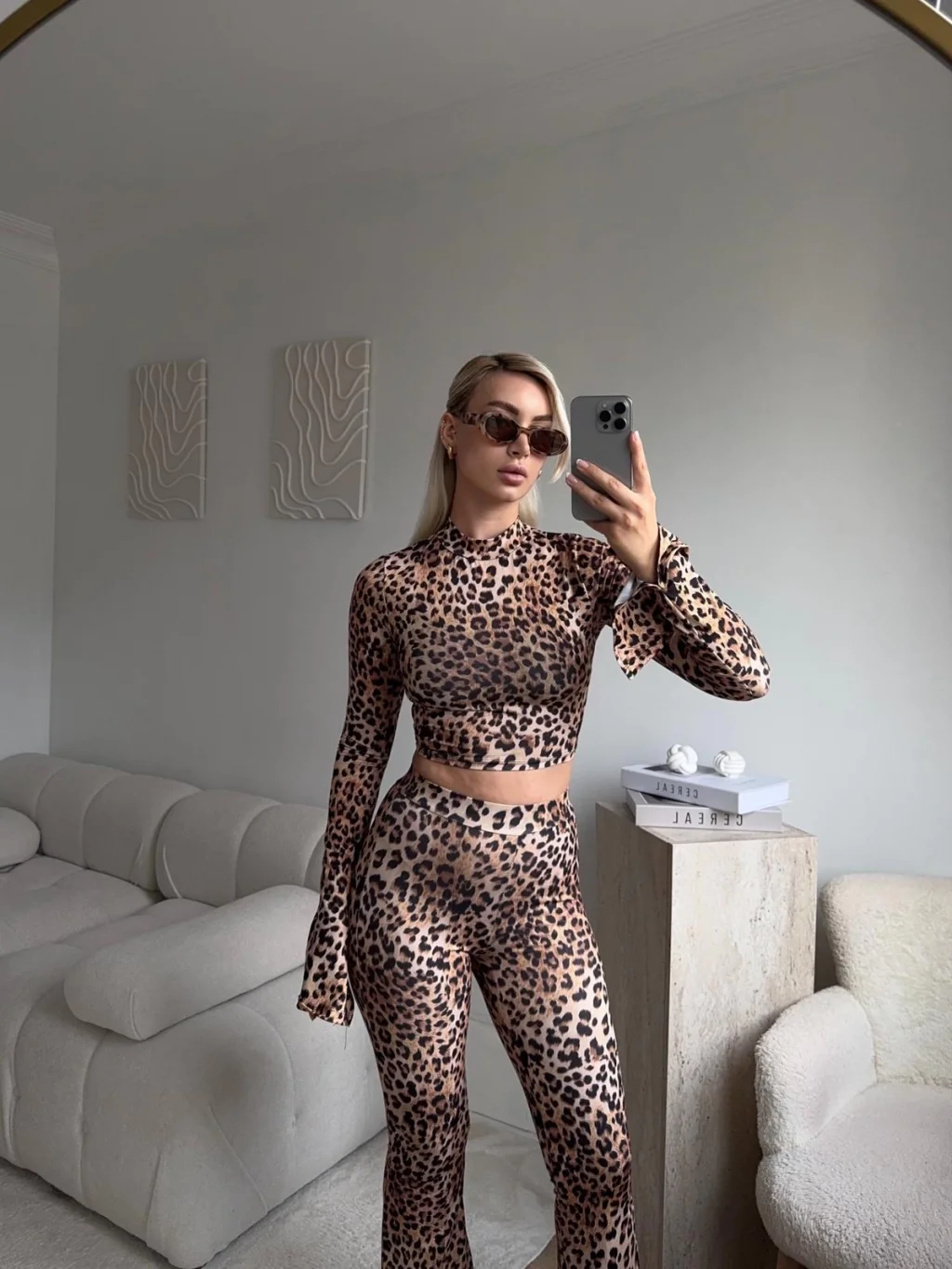 Leopar Yüksek Bel Flare Takım