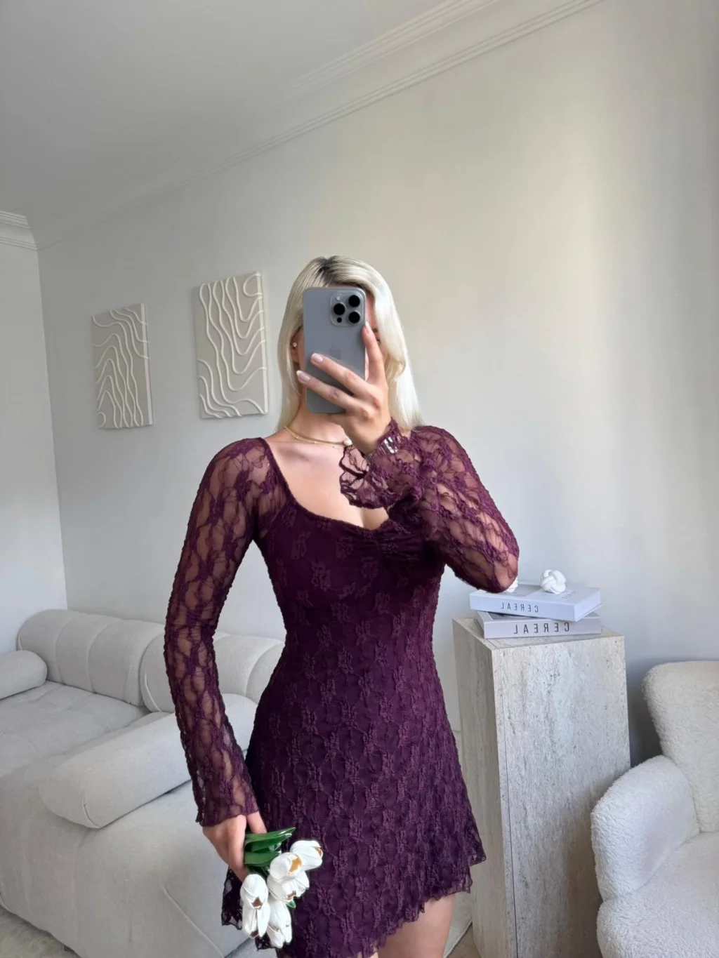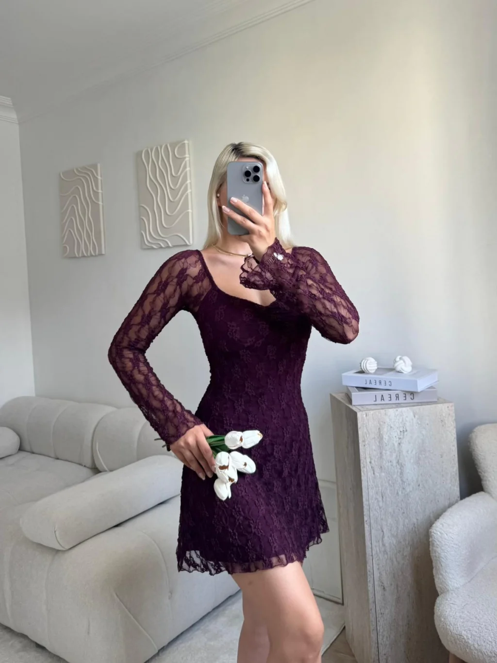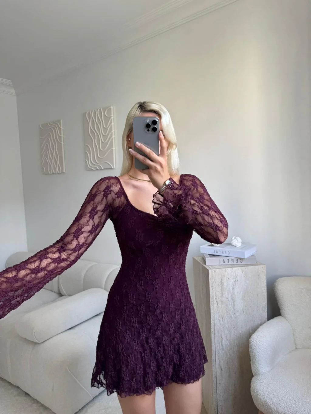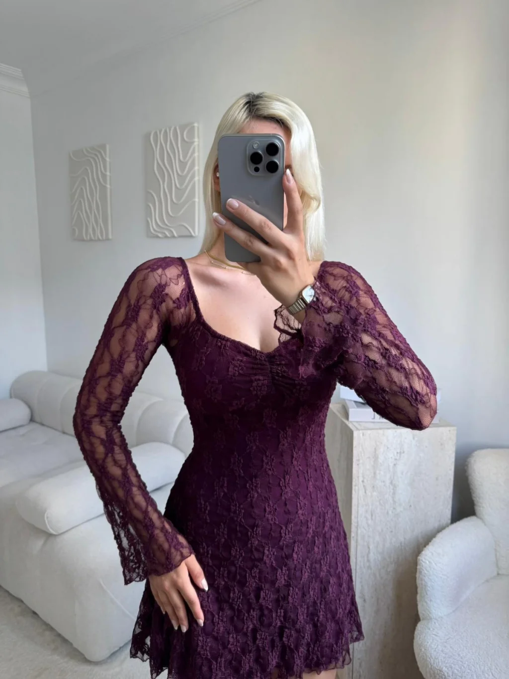Madonna Yaka Dantel Astarlı Elbise - MOR