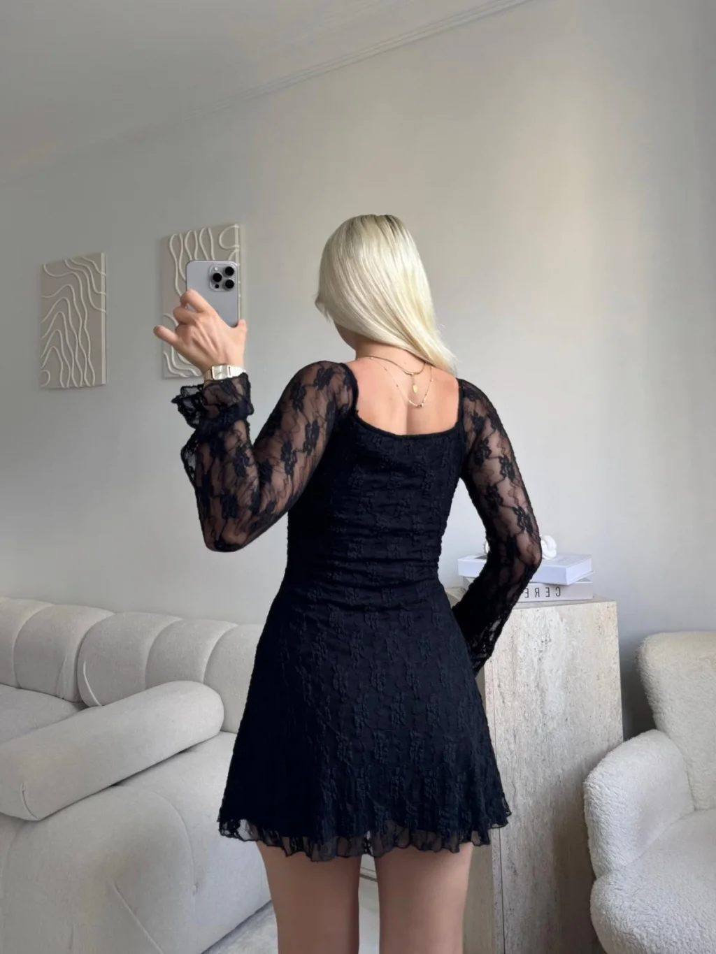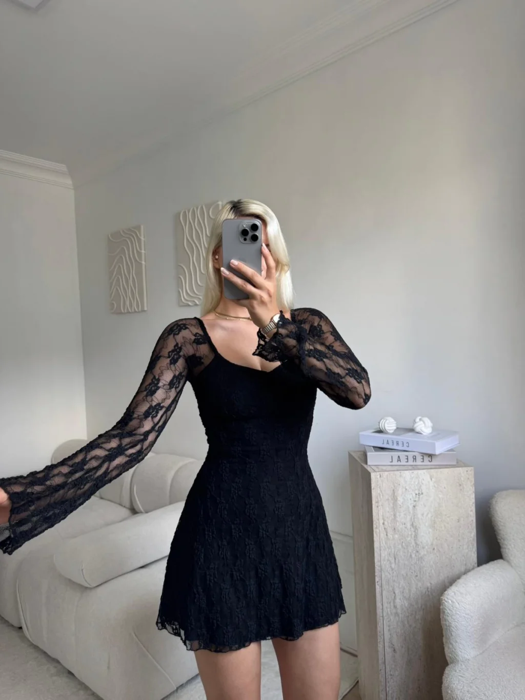 Madonna Yaka Dantel Astarlı Elbise - SİYAH