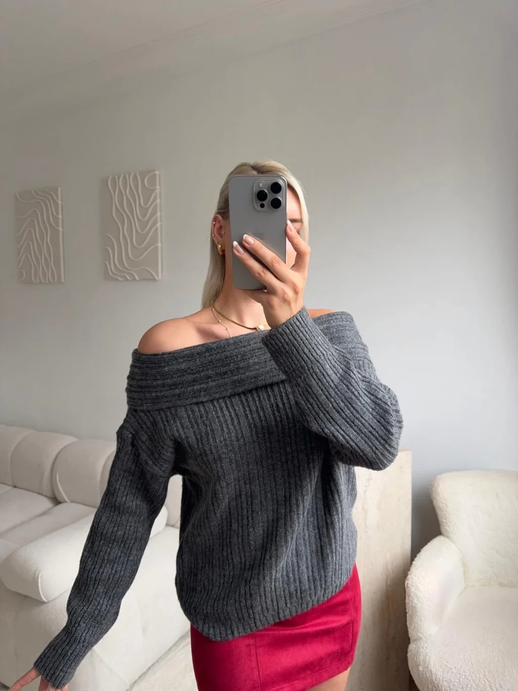 Madonna Yaka Şardonlu Kazak - ANTRASİT