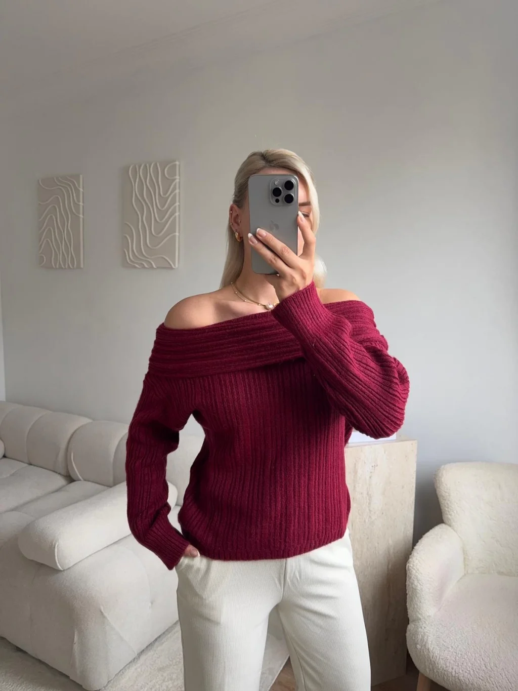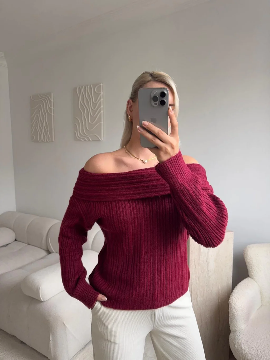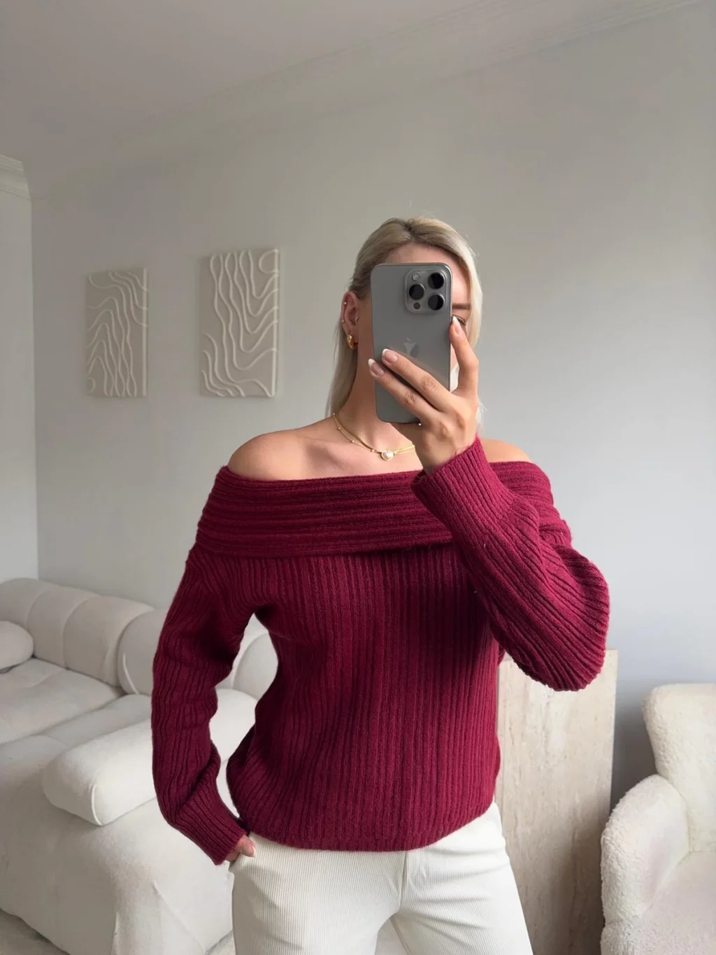 Madonna Yaka Şardonlu Kazak - BORDO