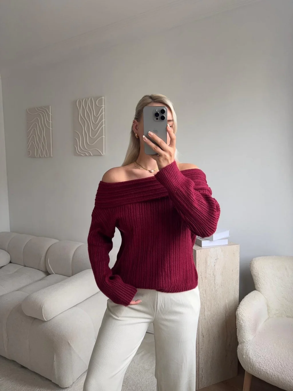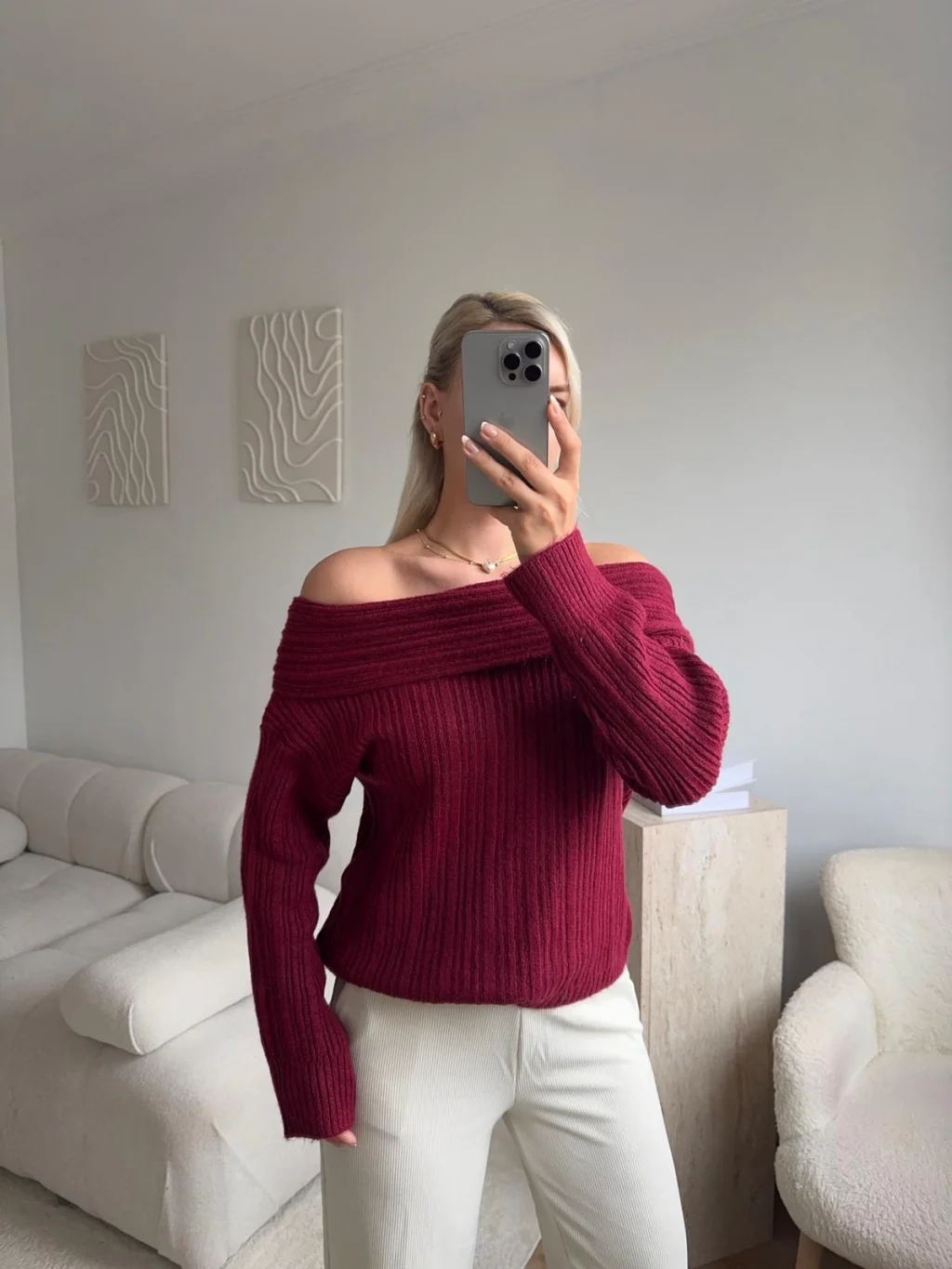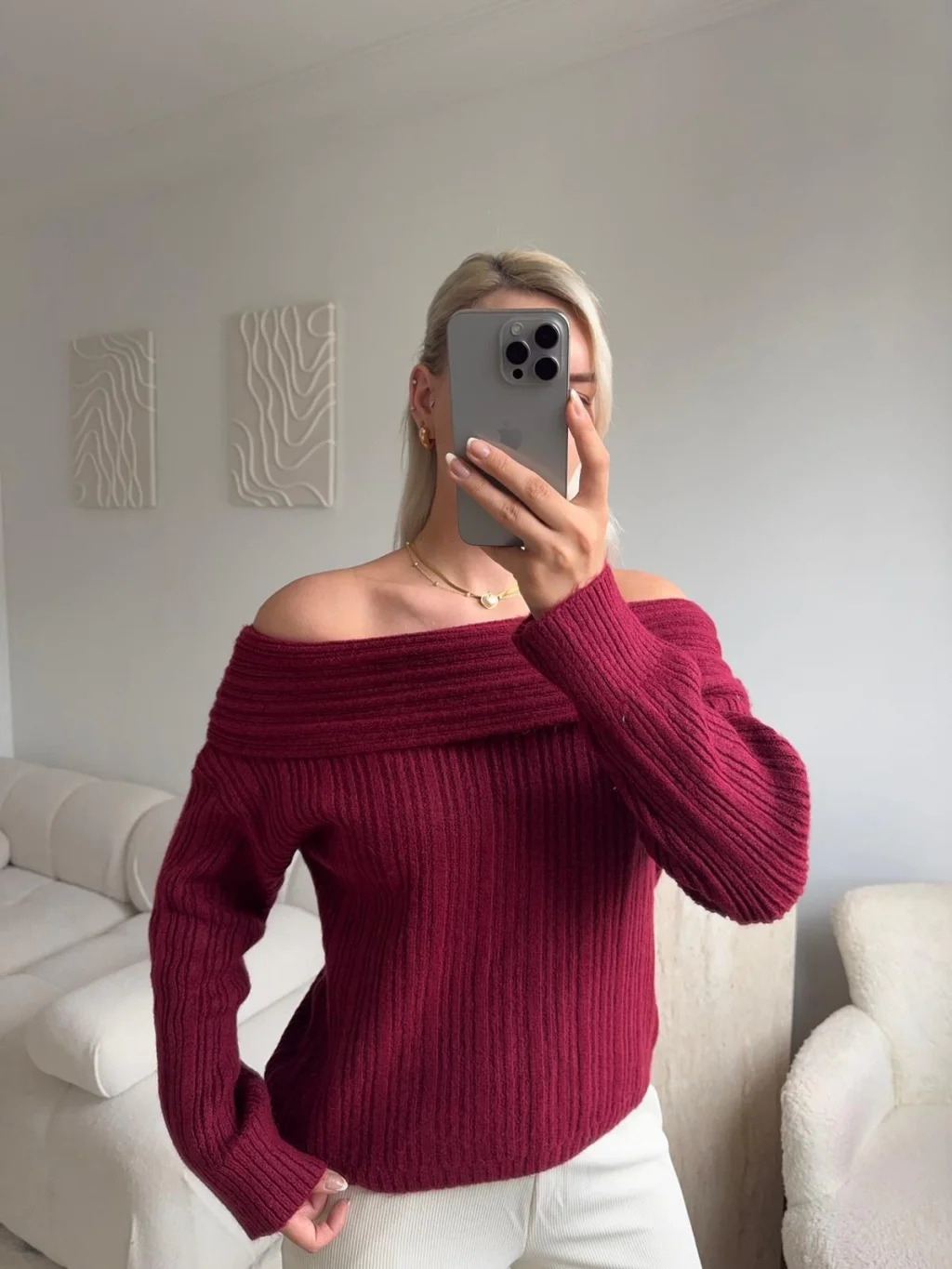 Madonna Yaka Şardonlu Kazak - BORDO