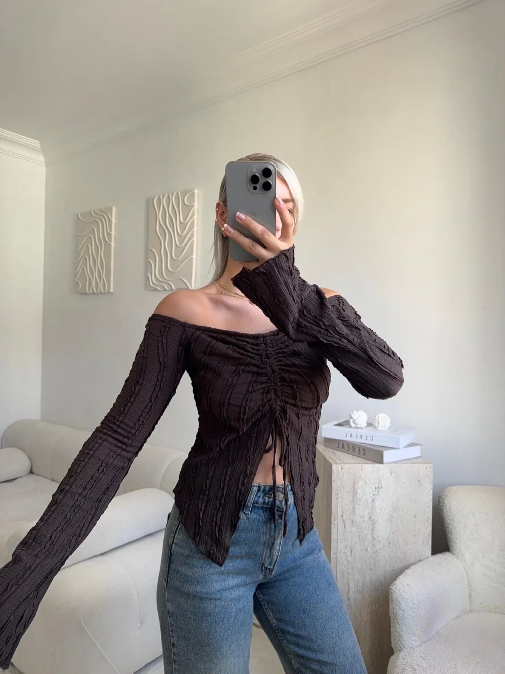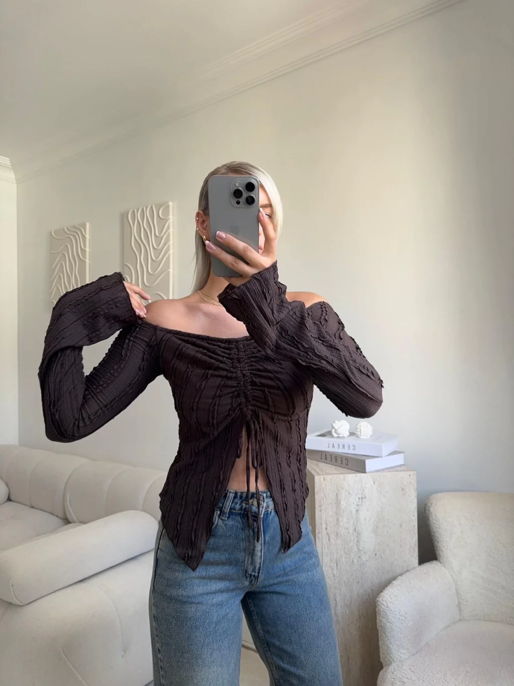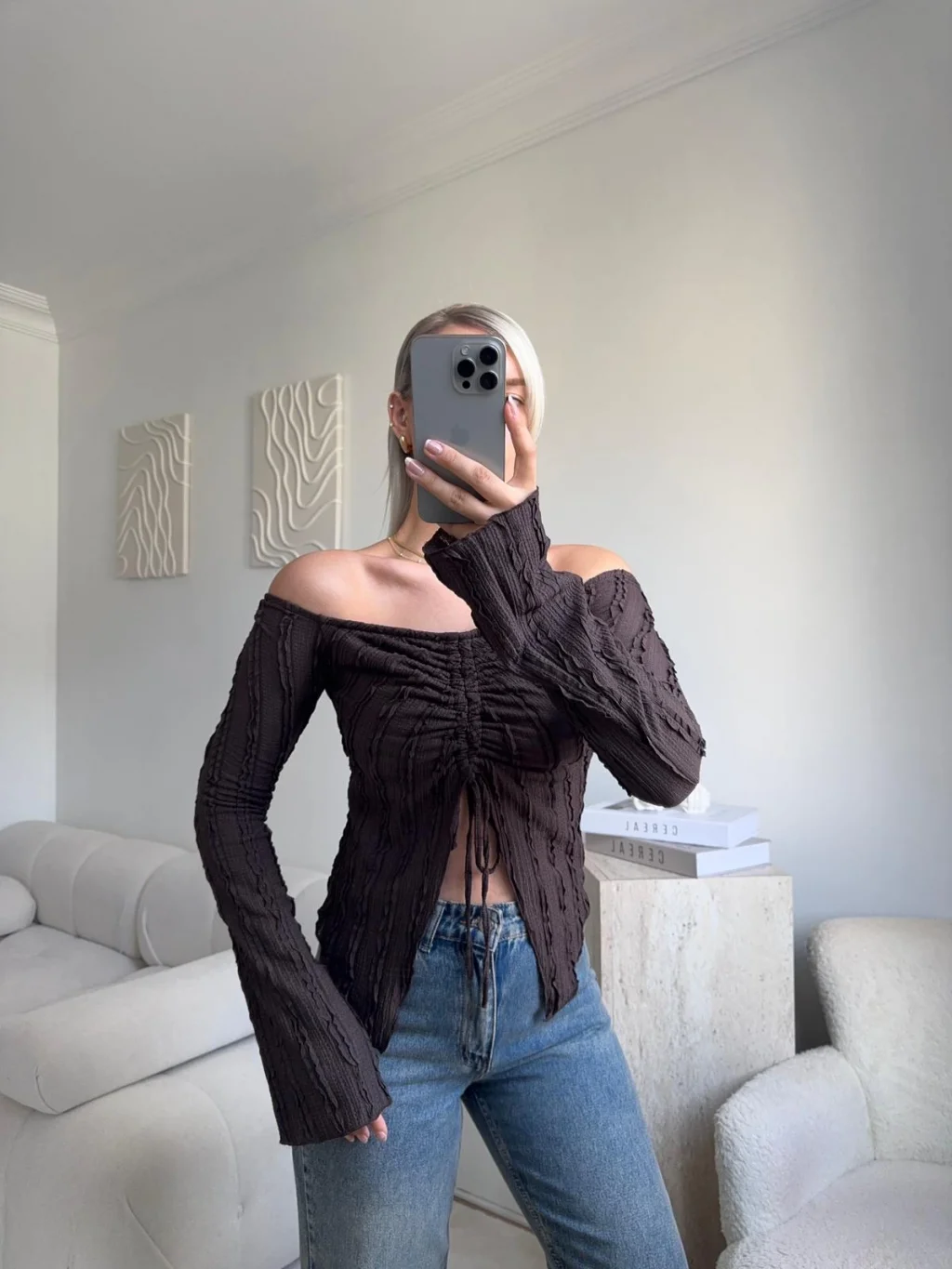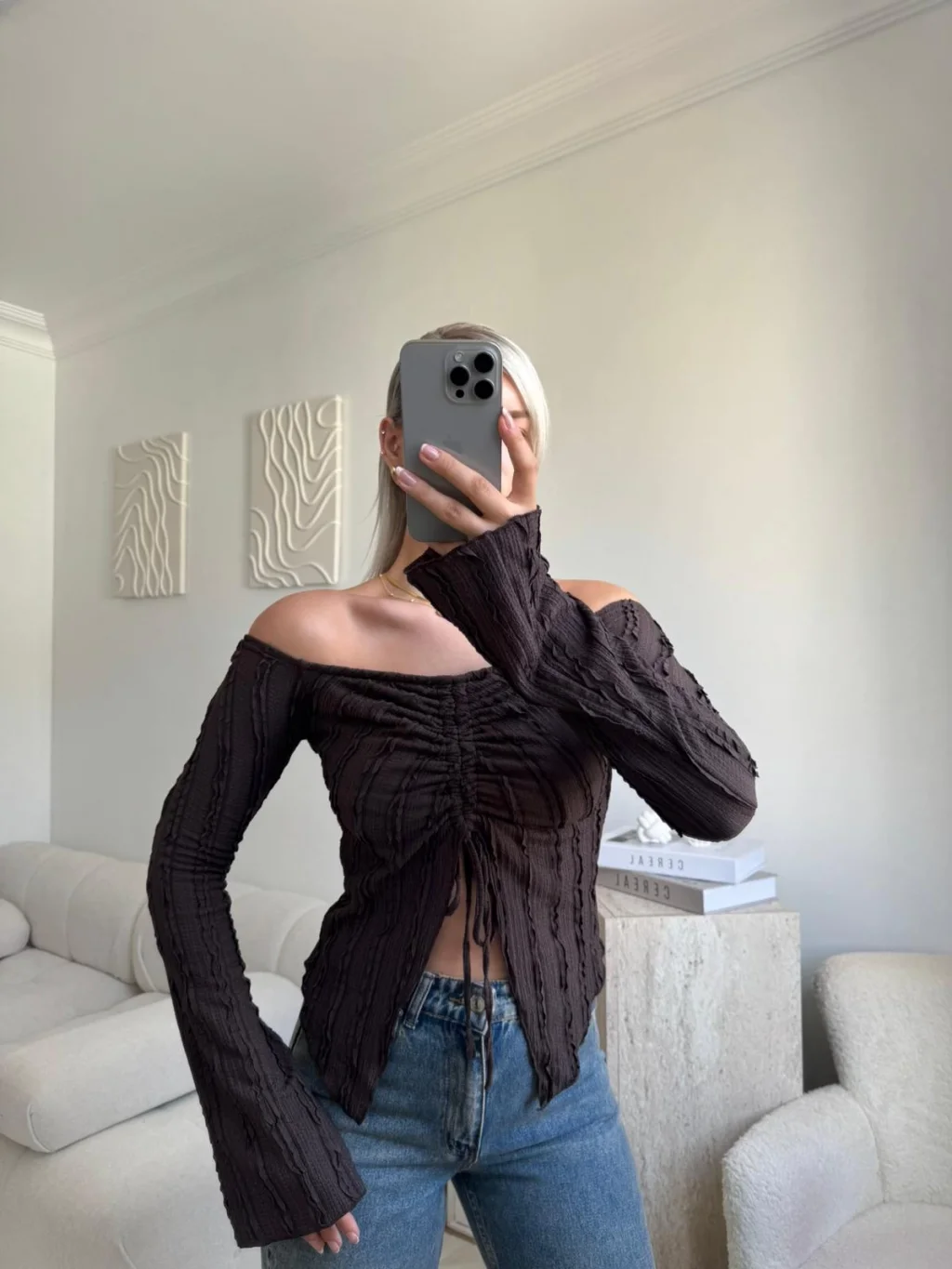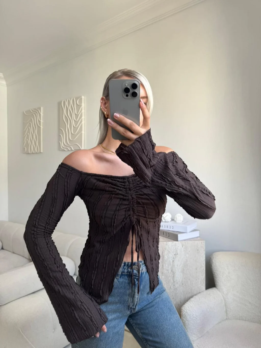 Ön Büzgü Madonna Bluz - KAHVE