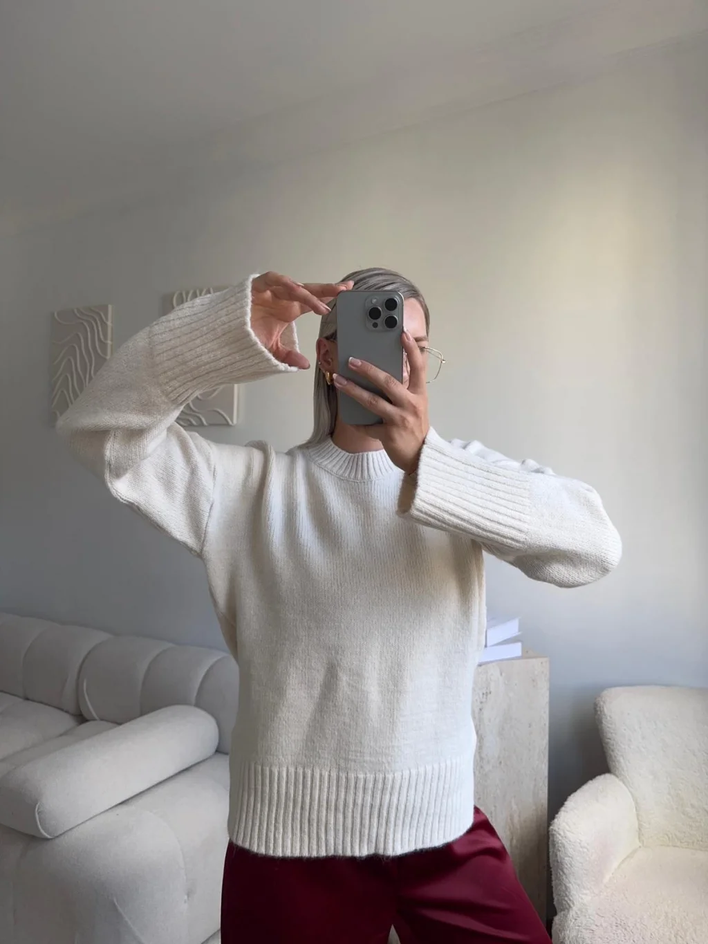 Oversize Bisiklet Yaka Kazak - BEJ