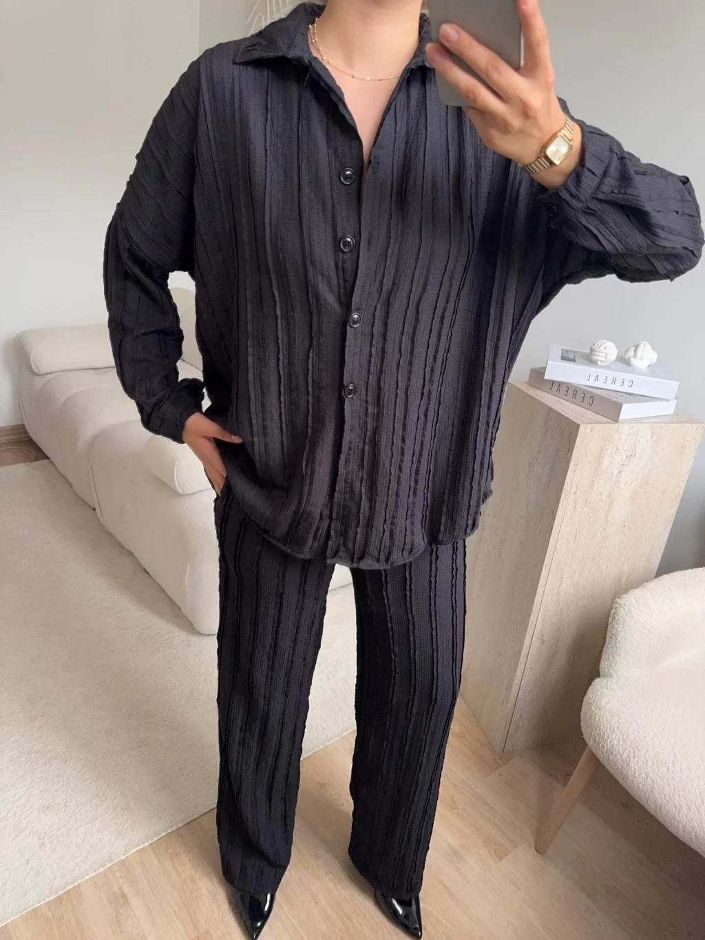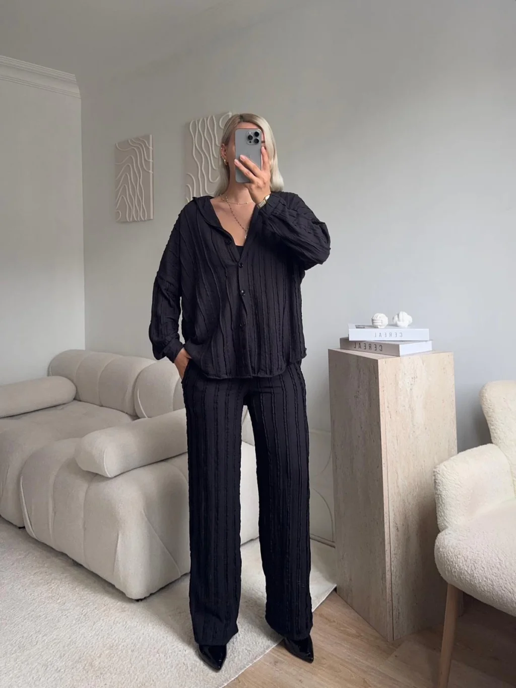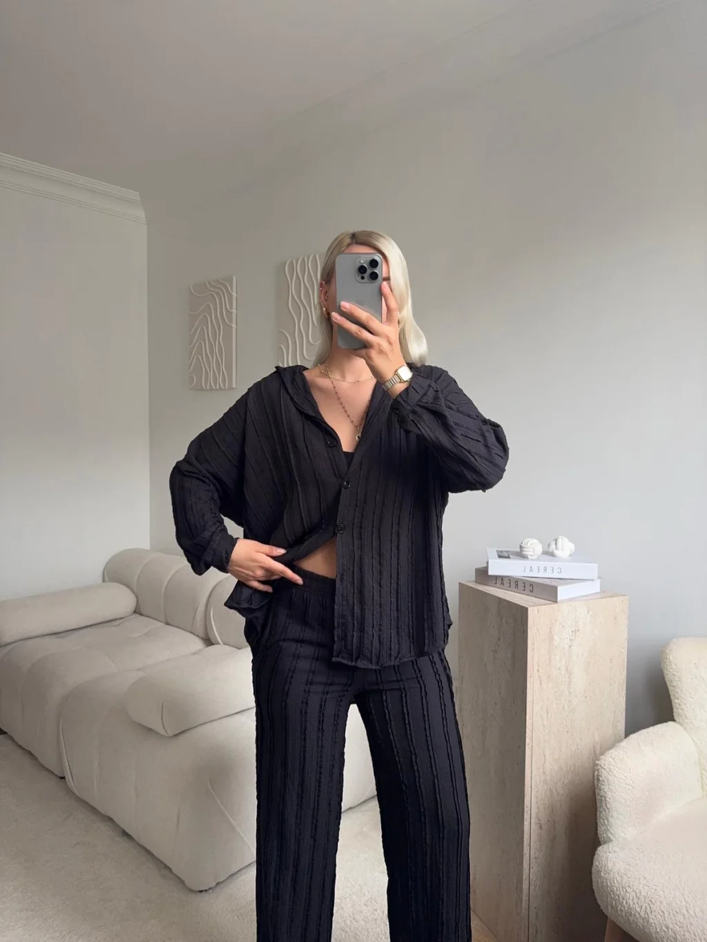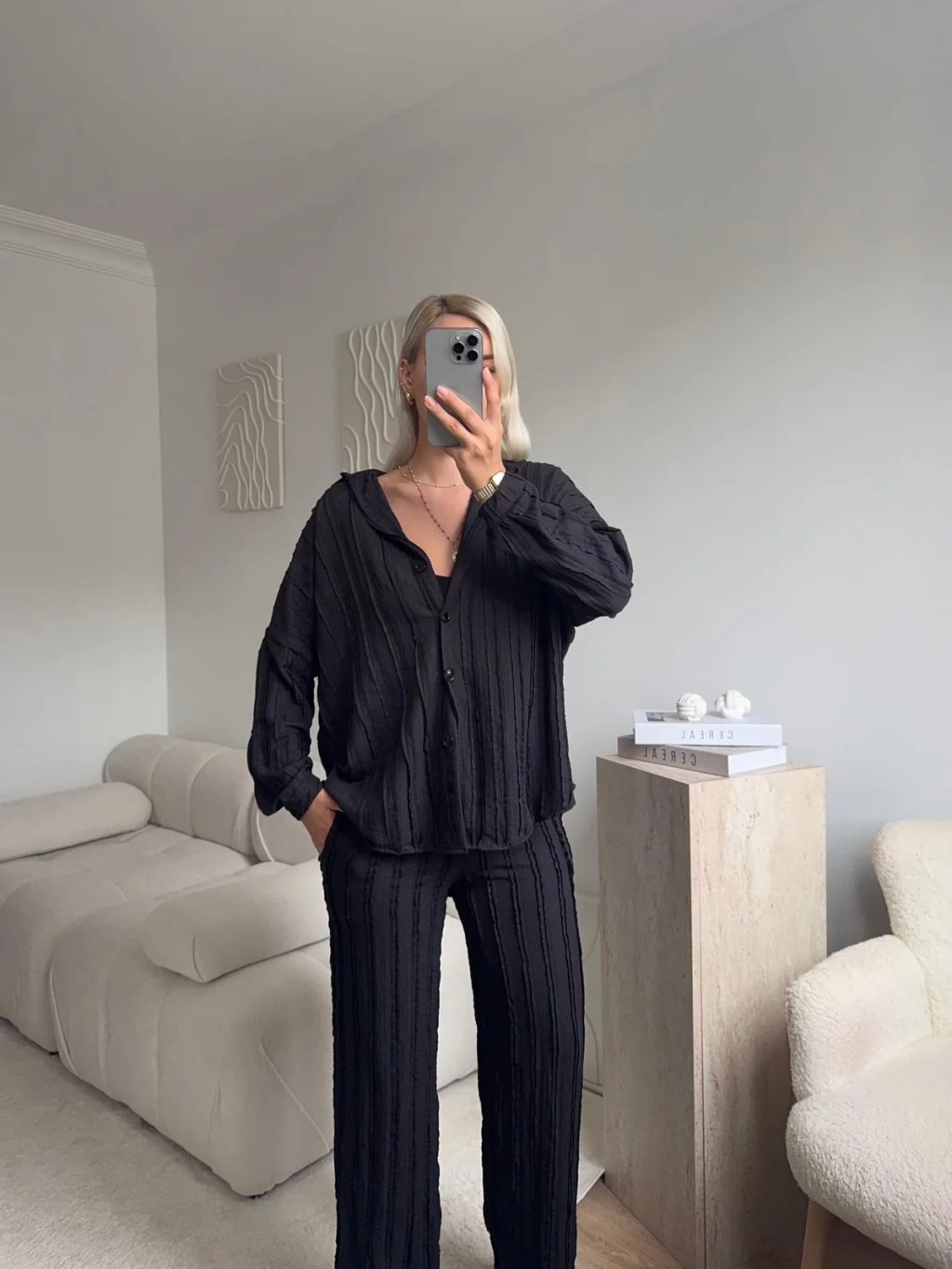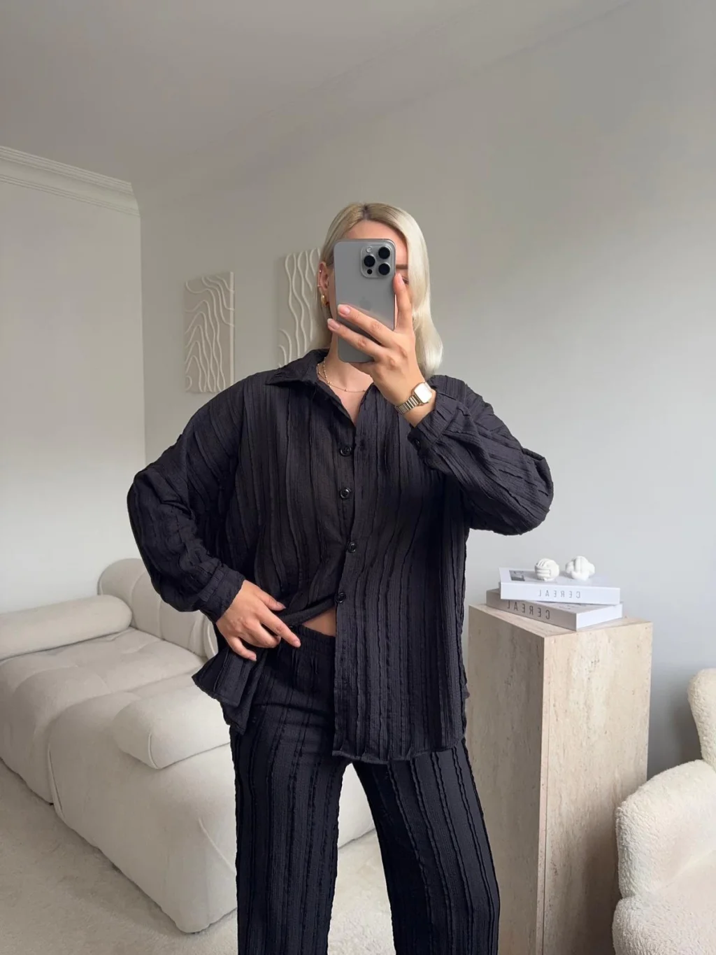Oversize Gömlek & Pantolon Takım - SİYAH