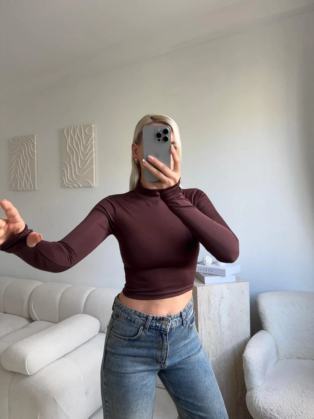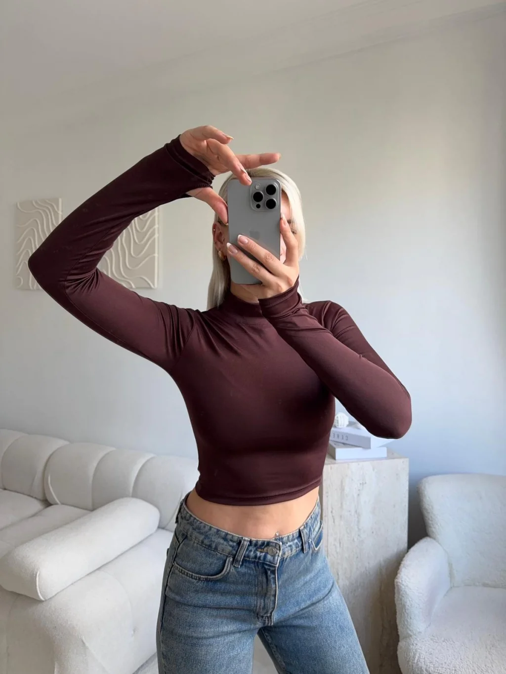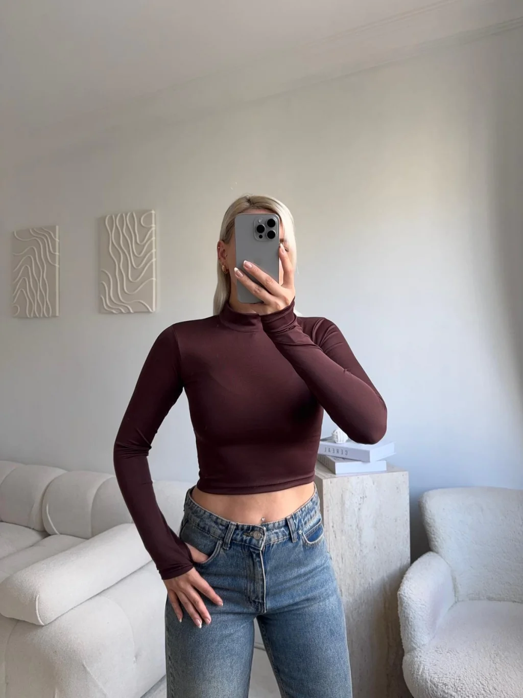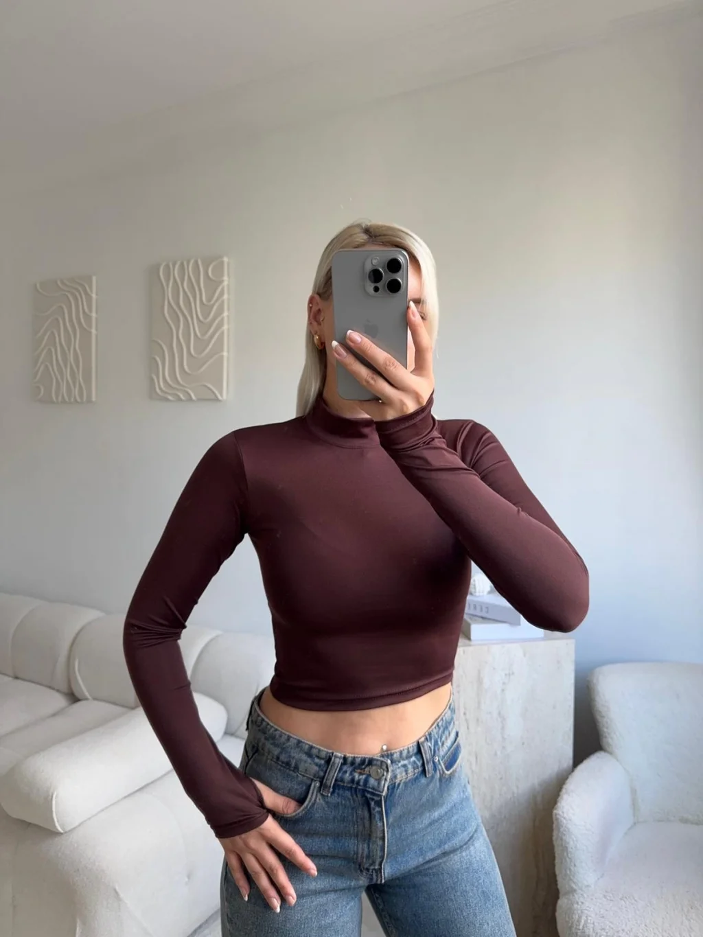 Parmak Geçmeli Balıkçı Crop - KAHVE