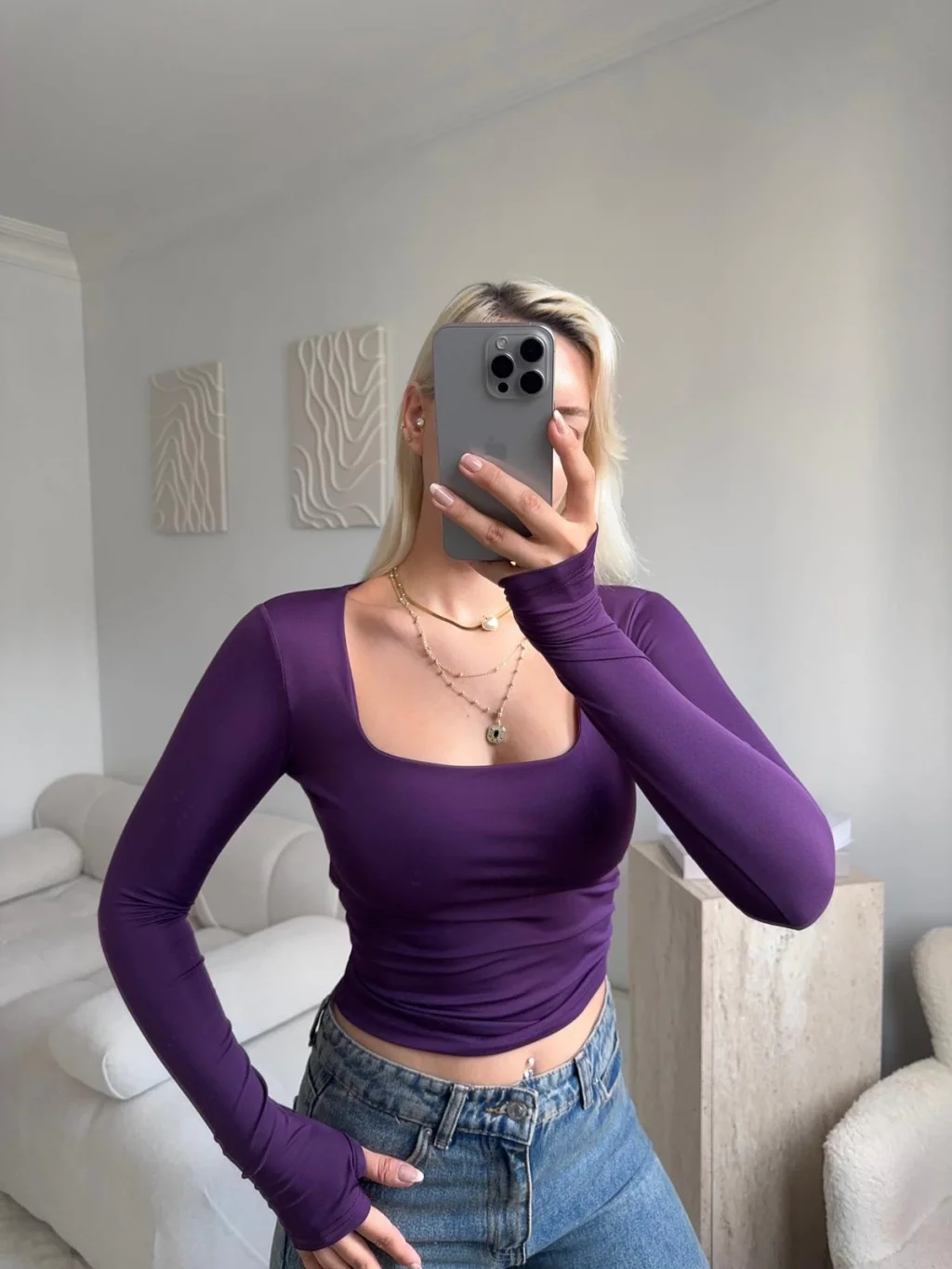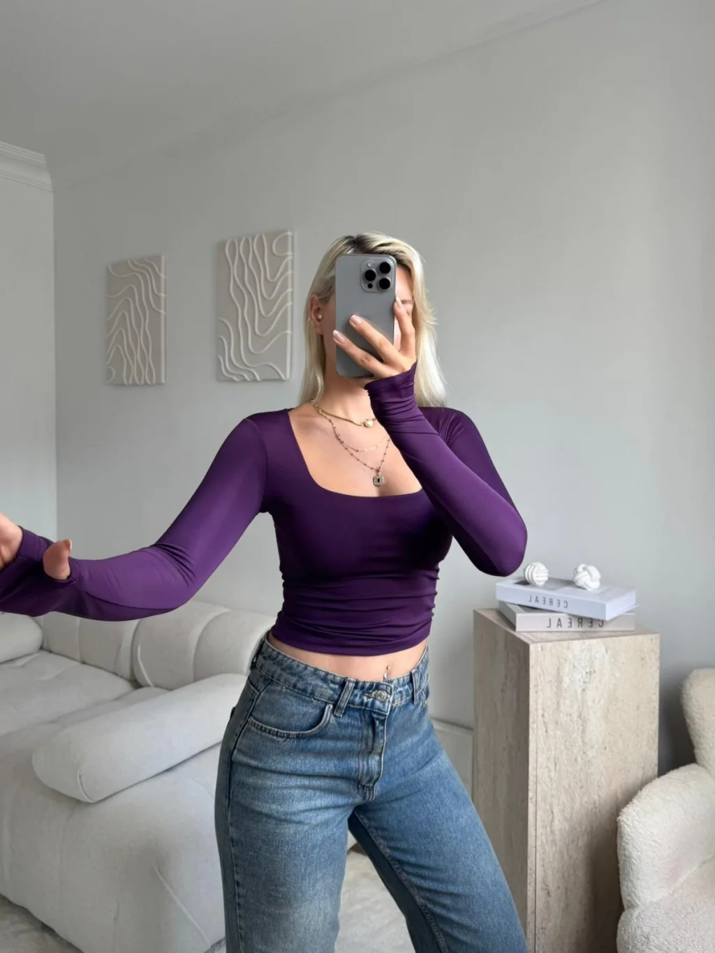 Parmak Geçmeli Kare Yaka Crop - MOR