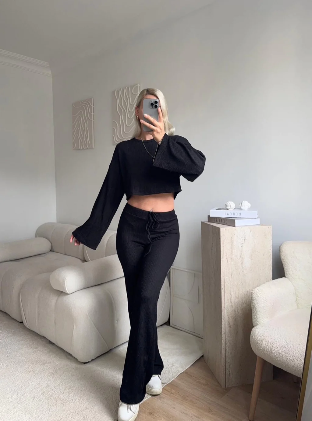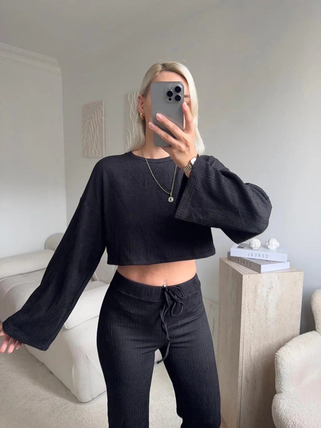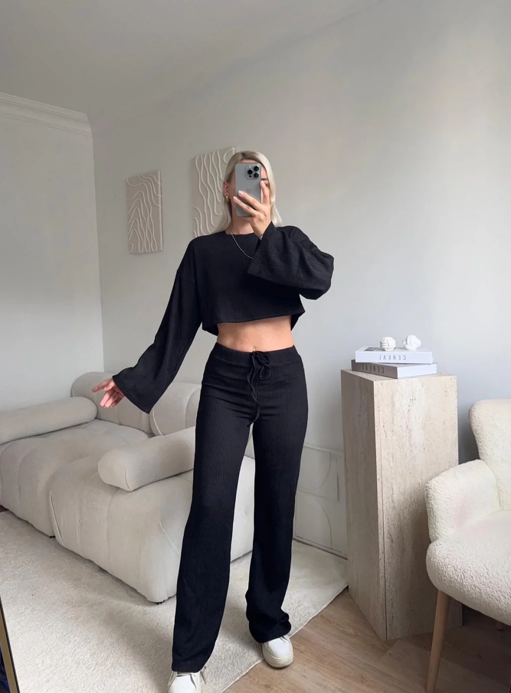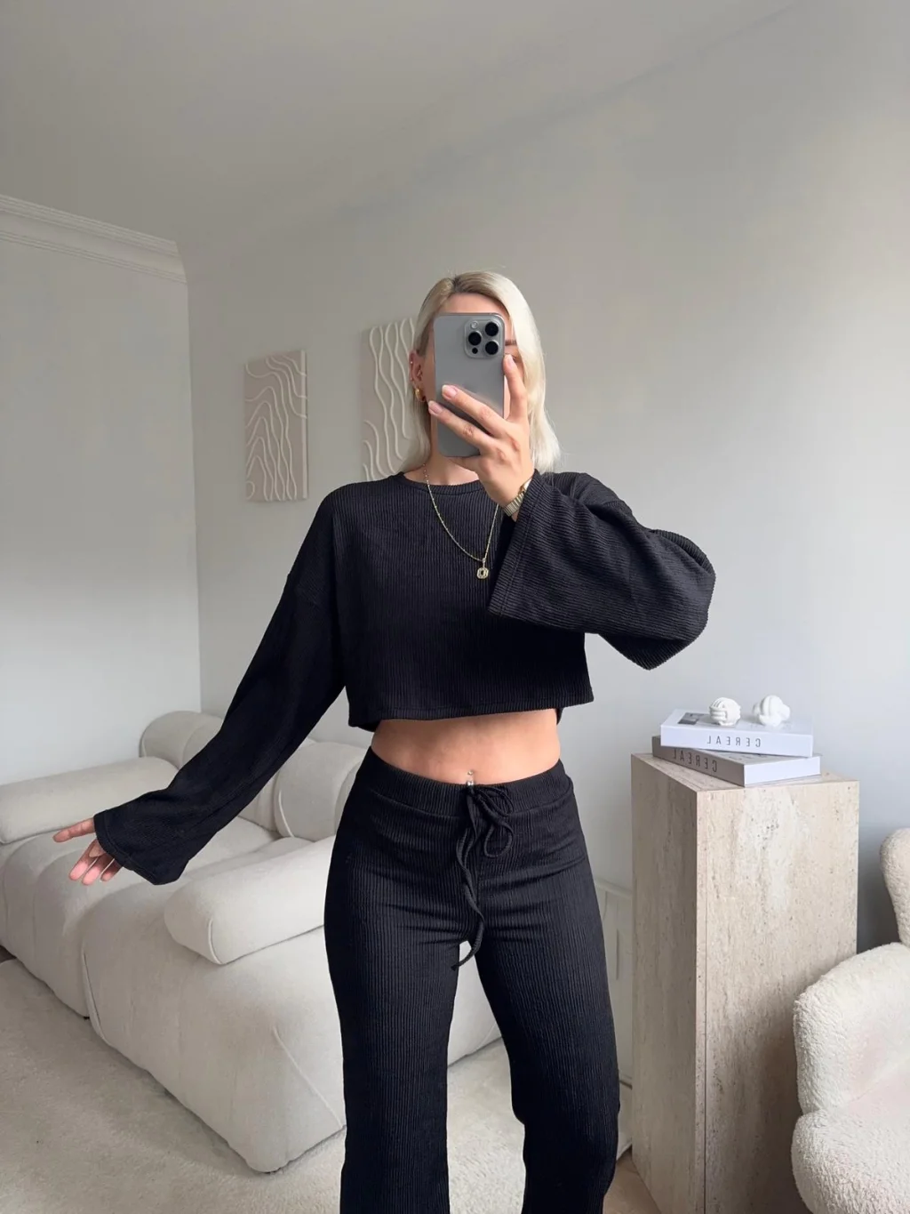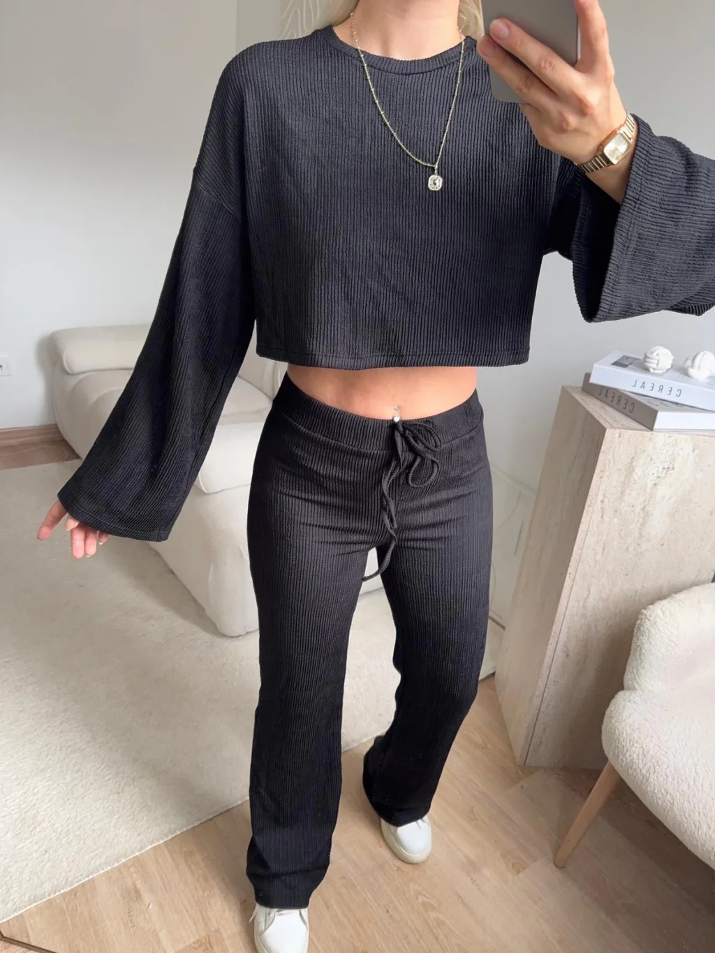Salaş Crop & Pantolon Takım - SİYAH
