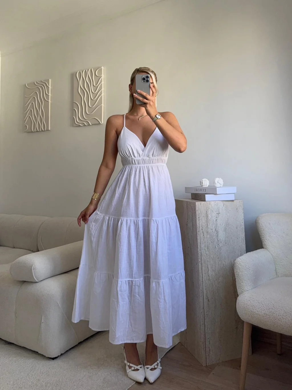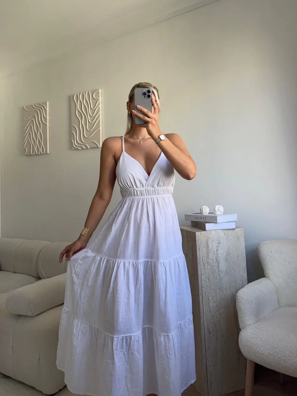 Sırt Çapraz Askılı Elbise - BEYAZ
