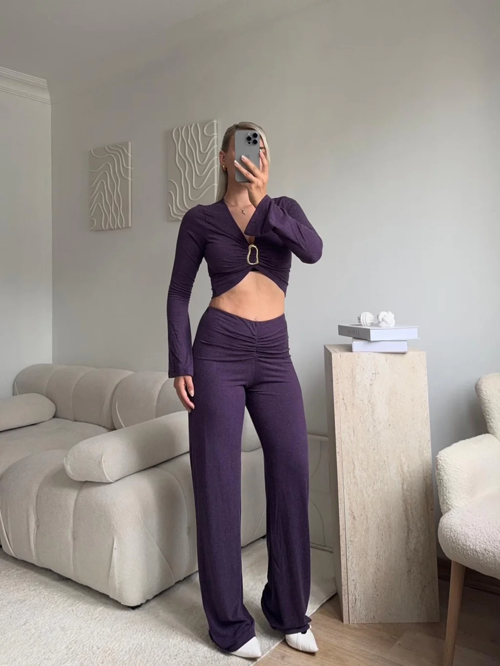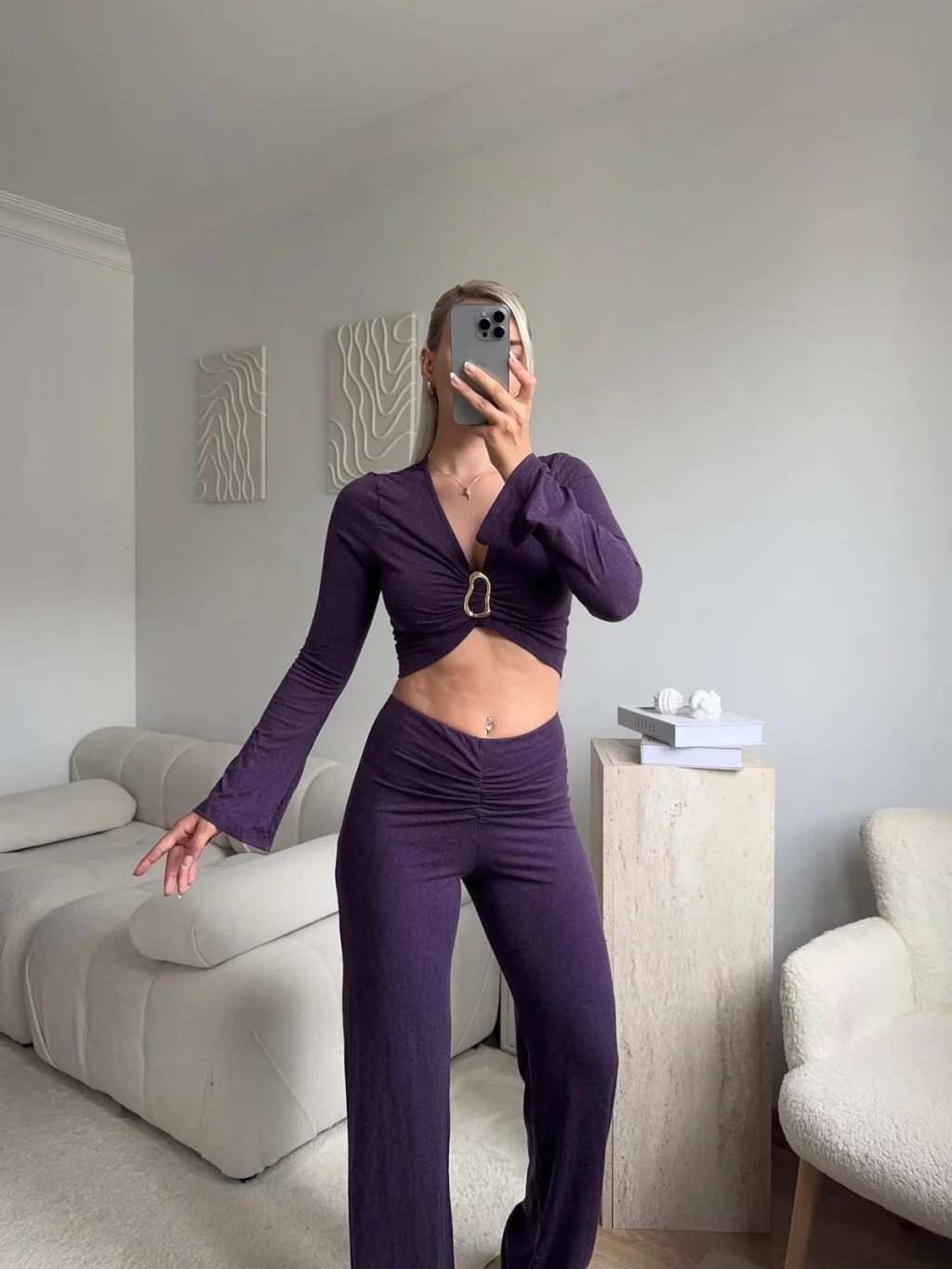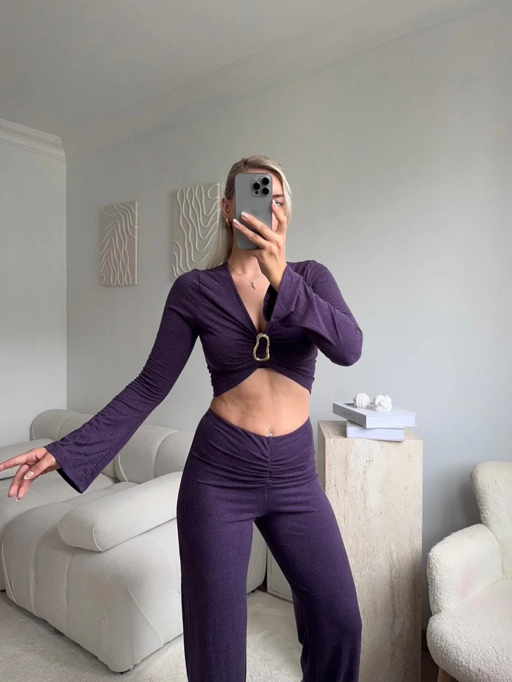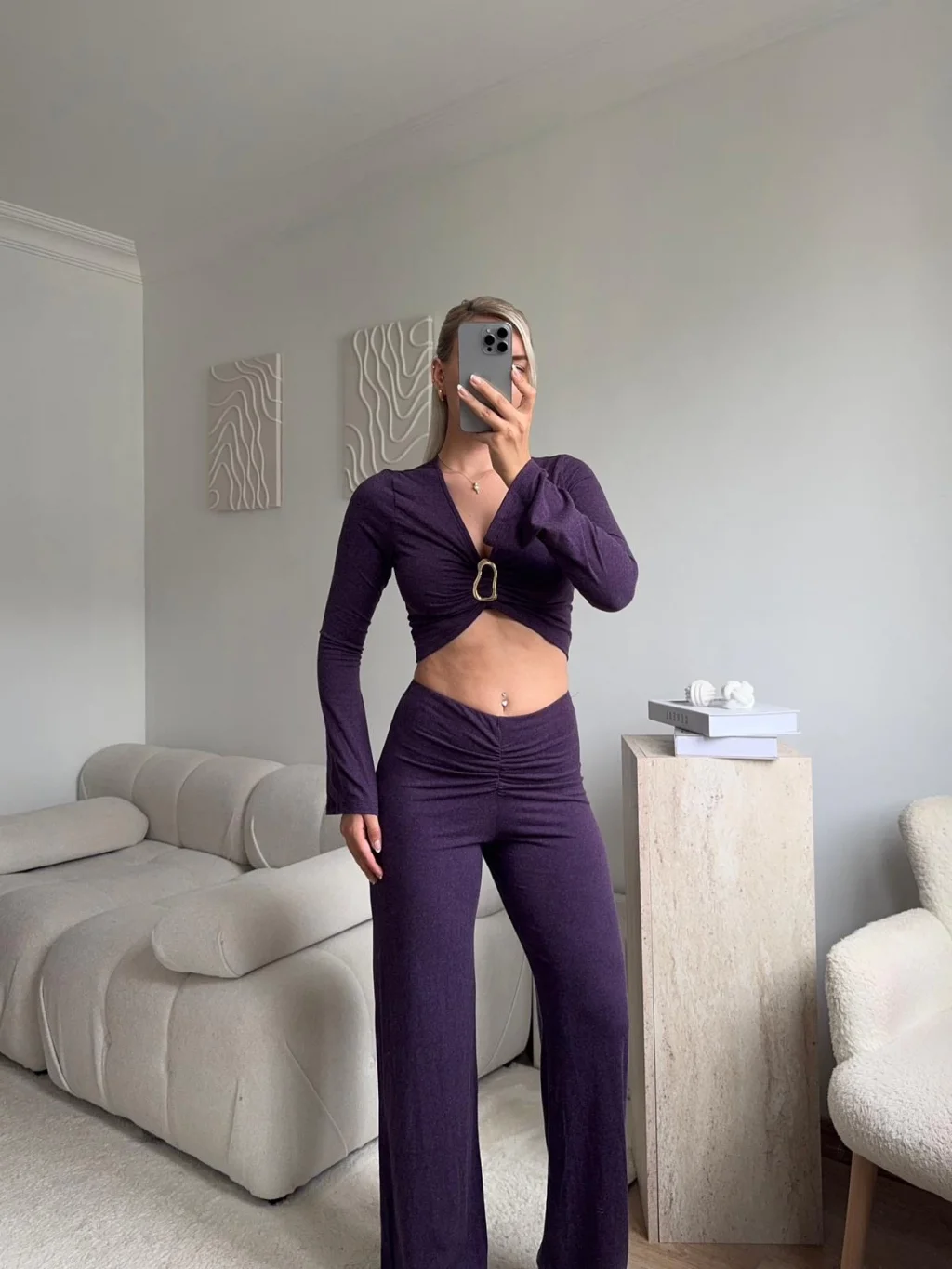 Tokalı Kruvaze Crop & Pantolon Takım - MOR