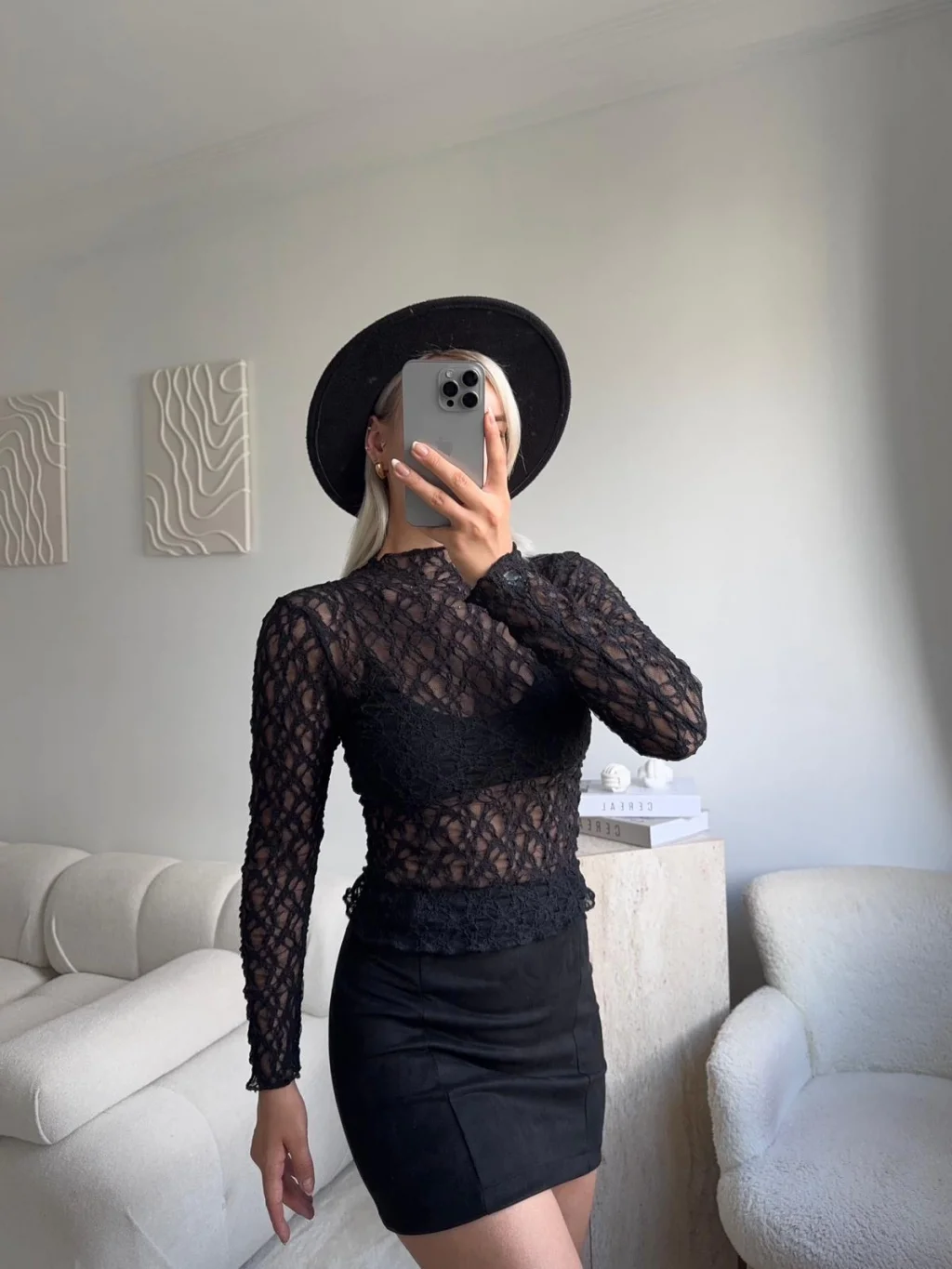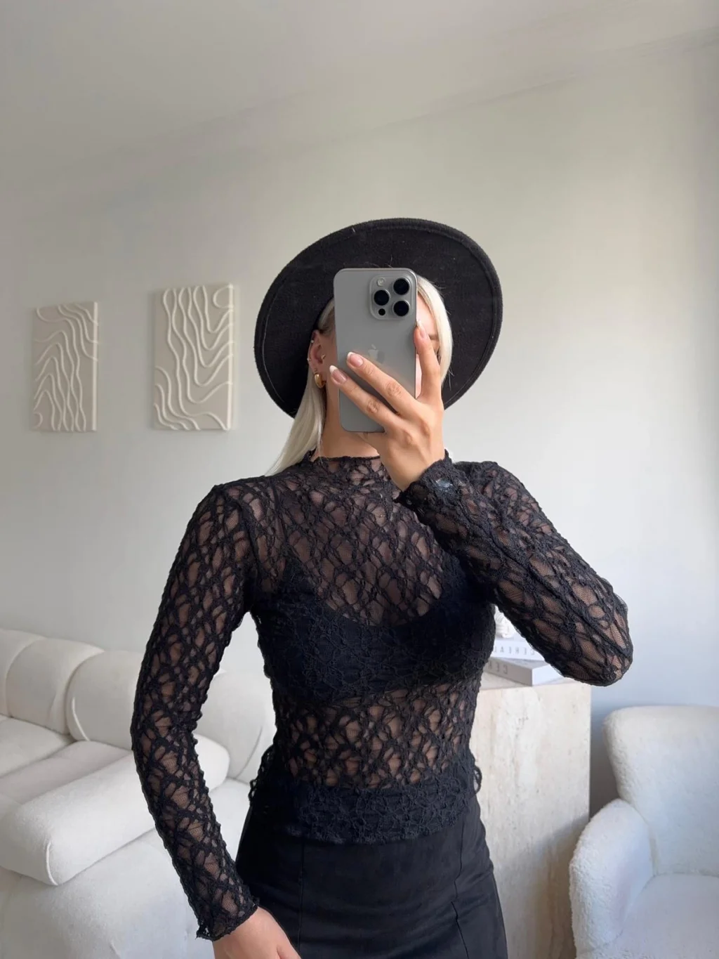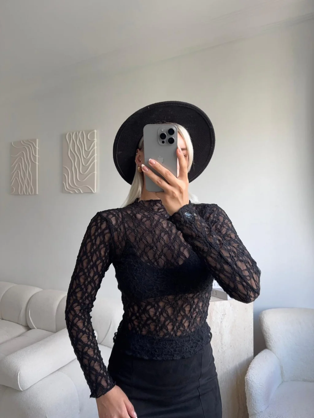 Transparan Dantel Bluz - SİYAH