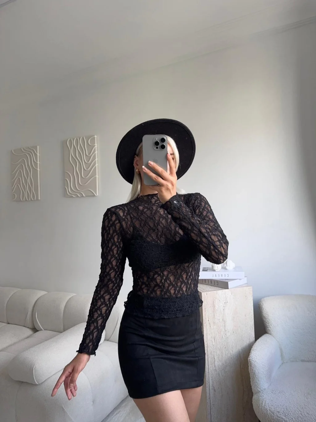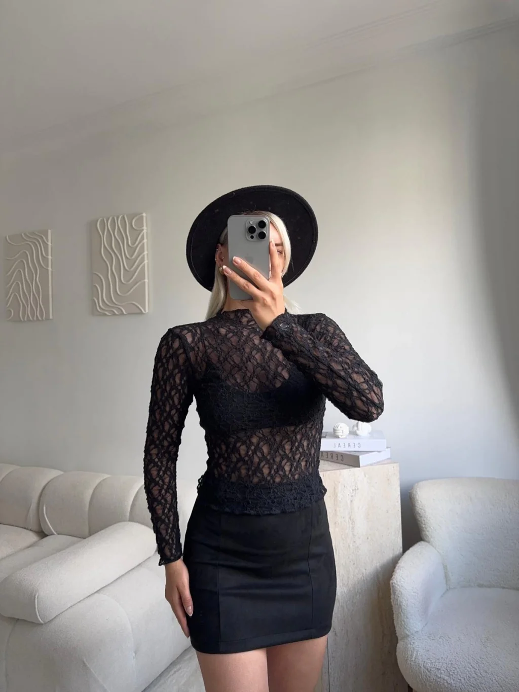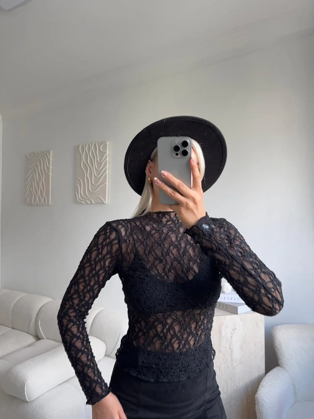 Transparan Dantel Bluz - SİYAH