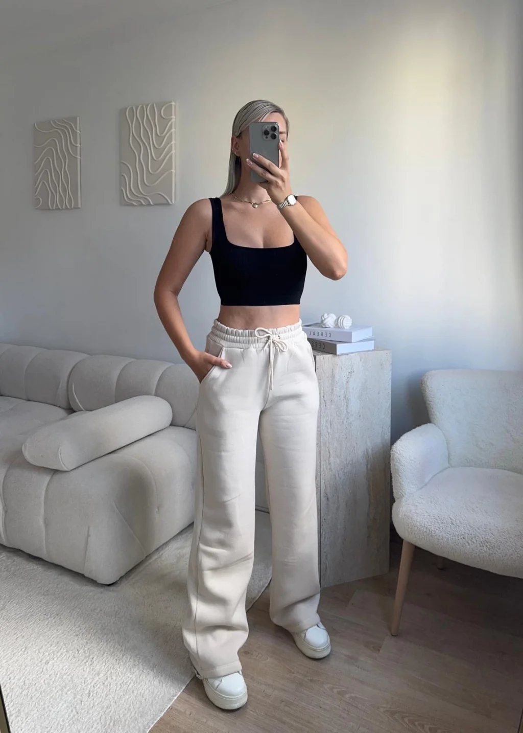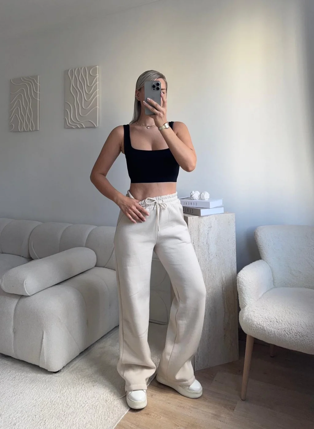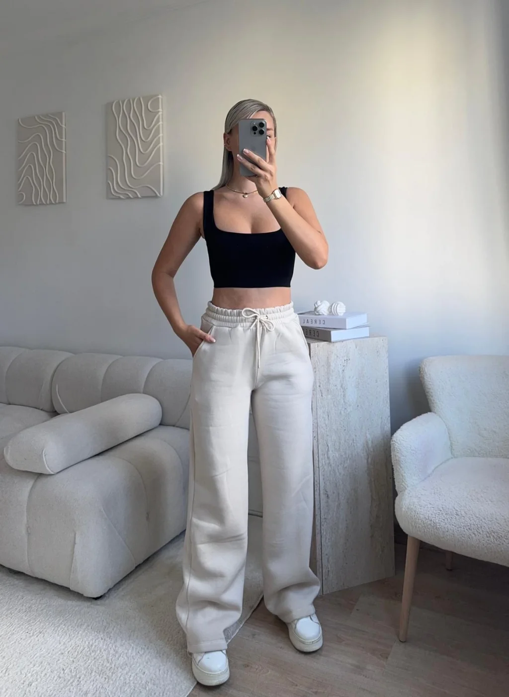 Üç İplik Yüksek Bel Eşofman - BEJ