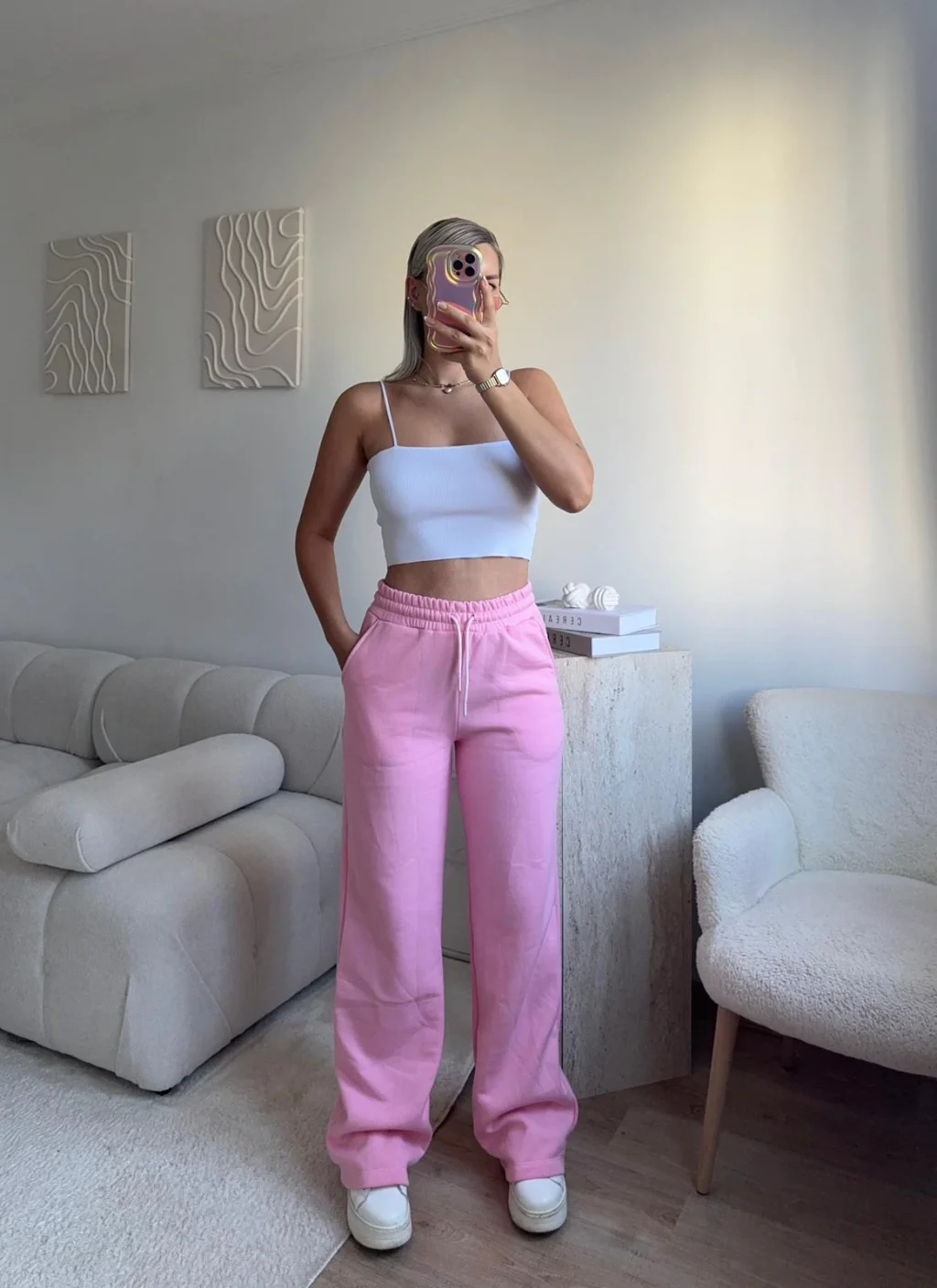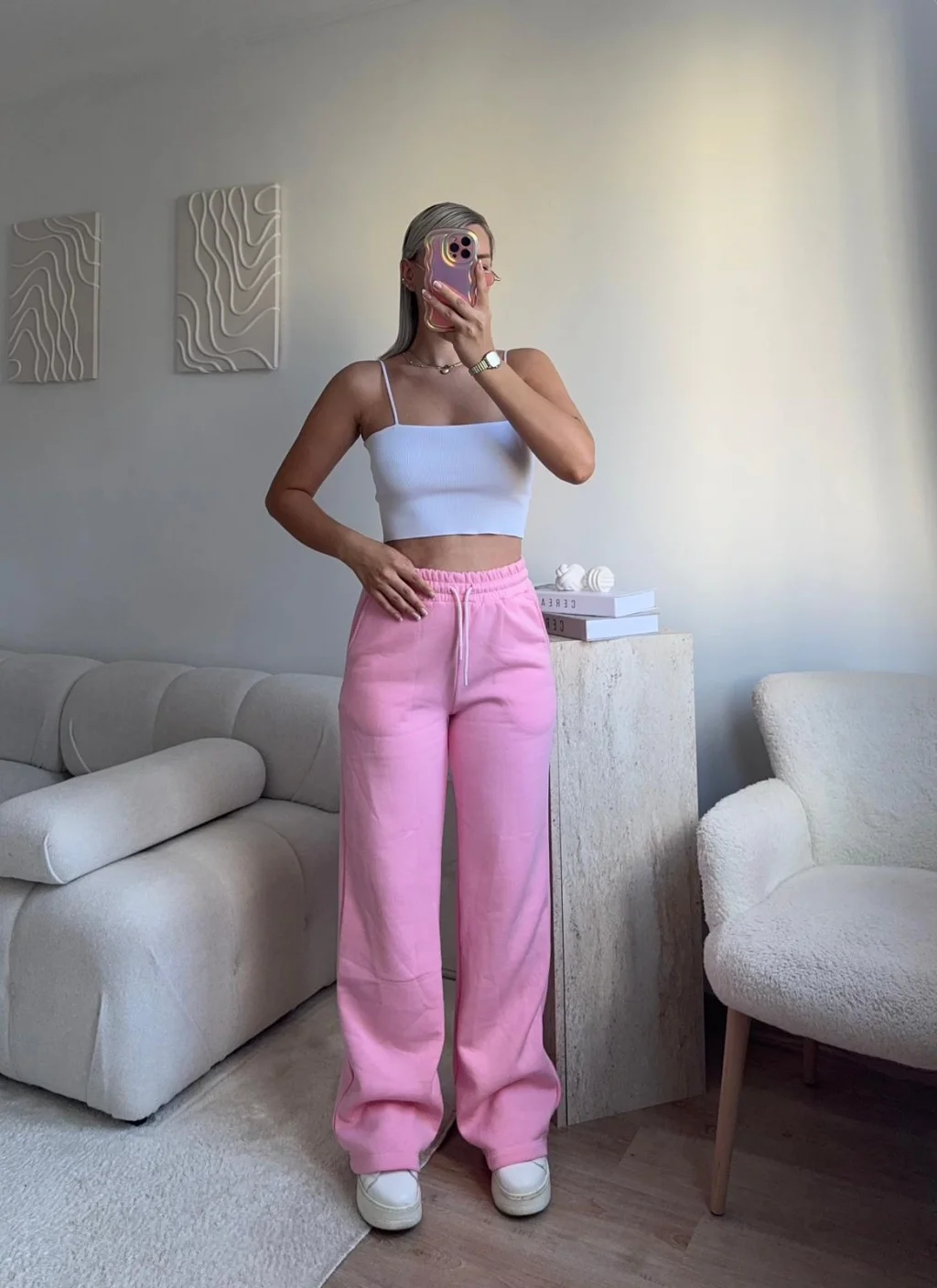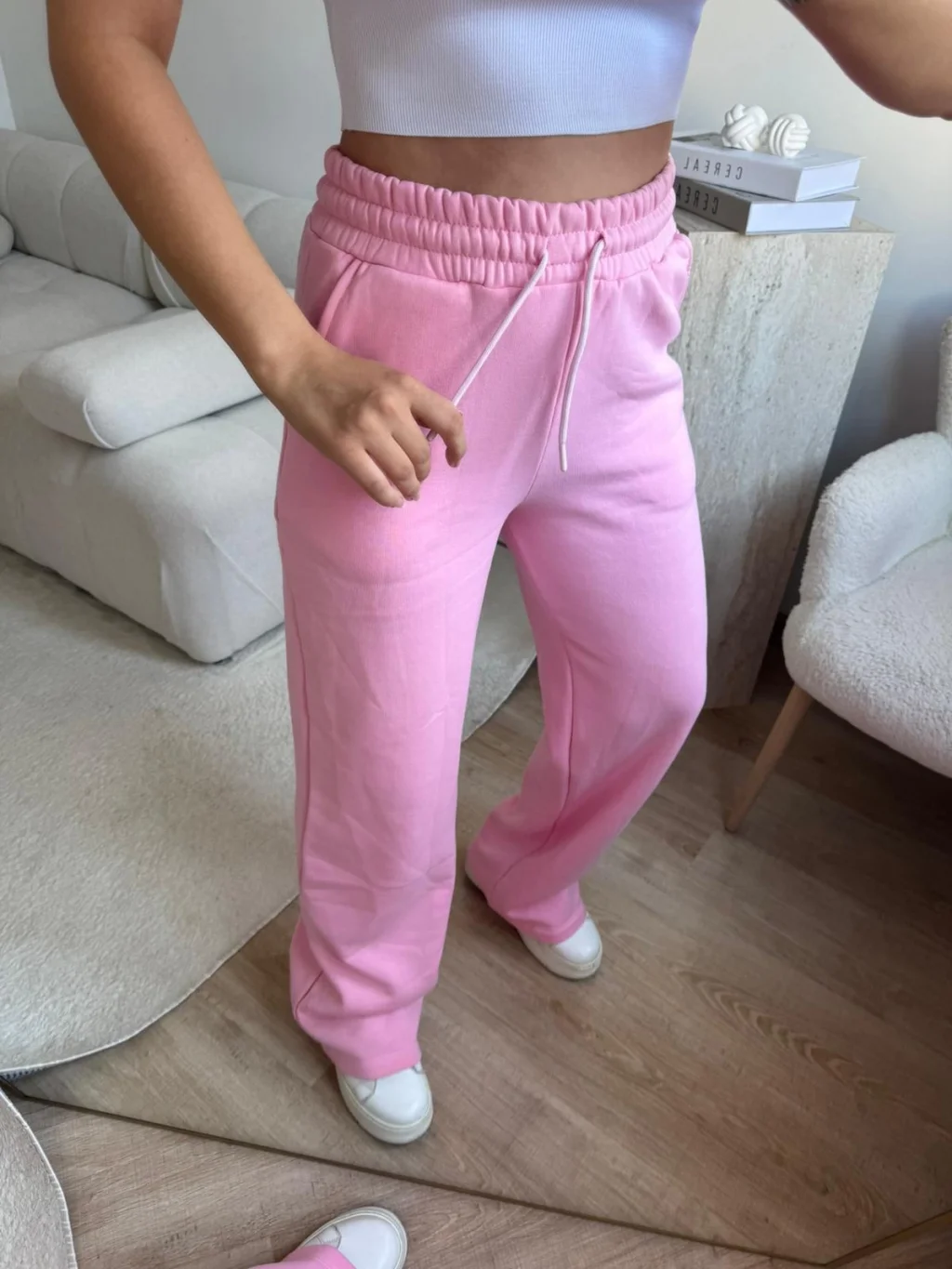 Üç İplik Yüksek Bel Eşofman - PEMBE