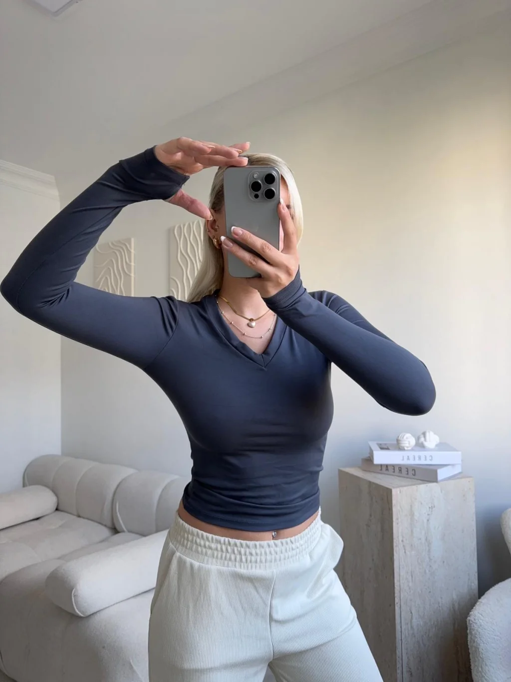 V Yaka Belize Kumaş Crop - FÜME