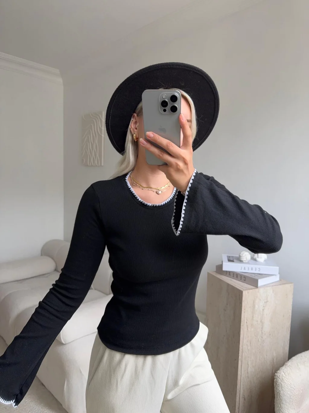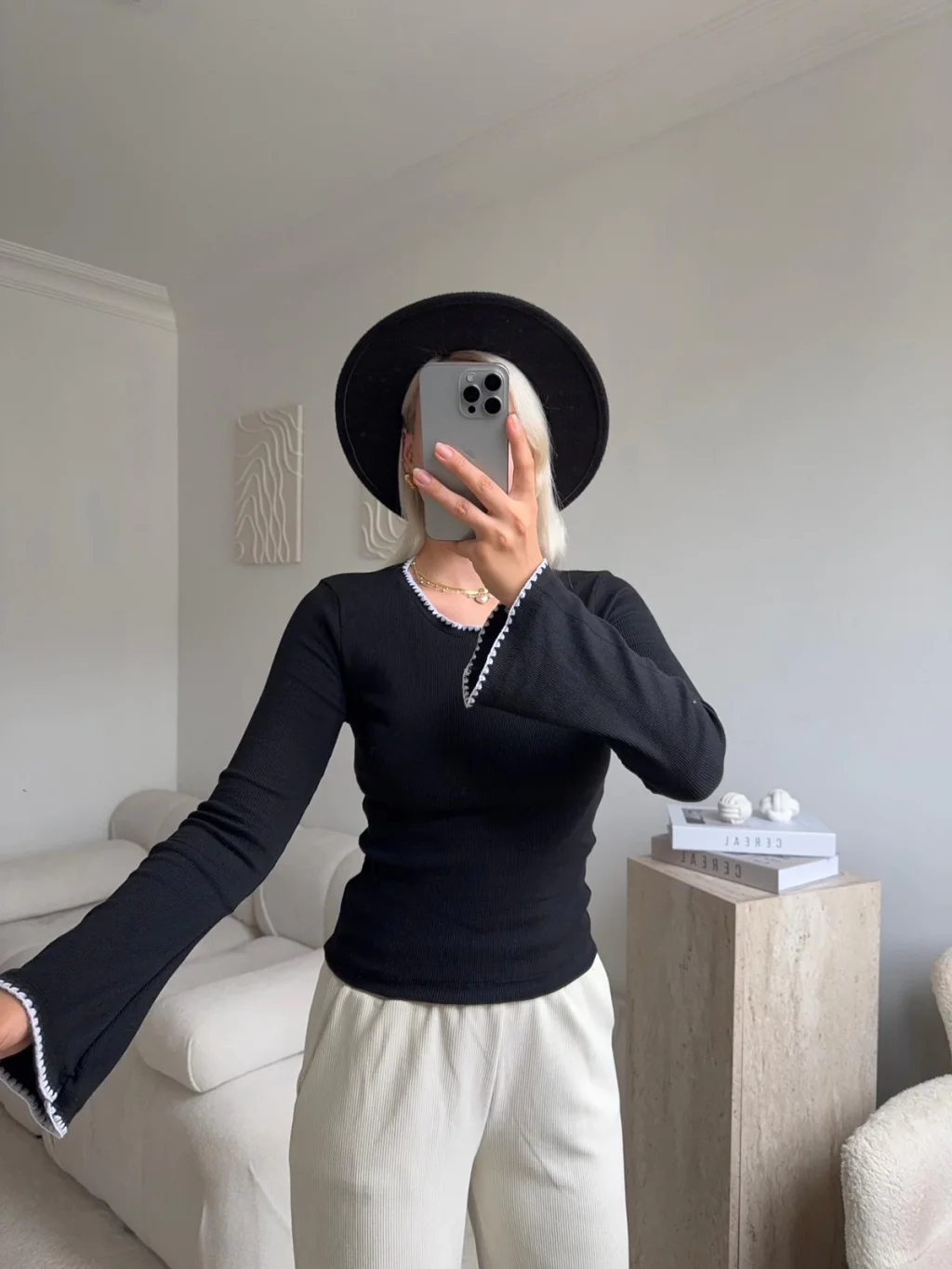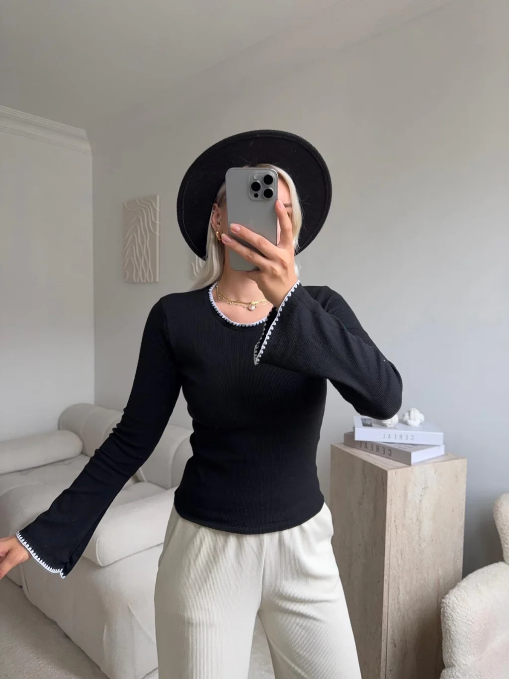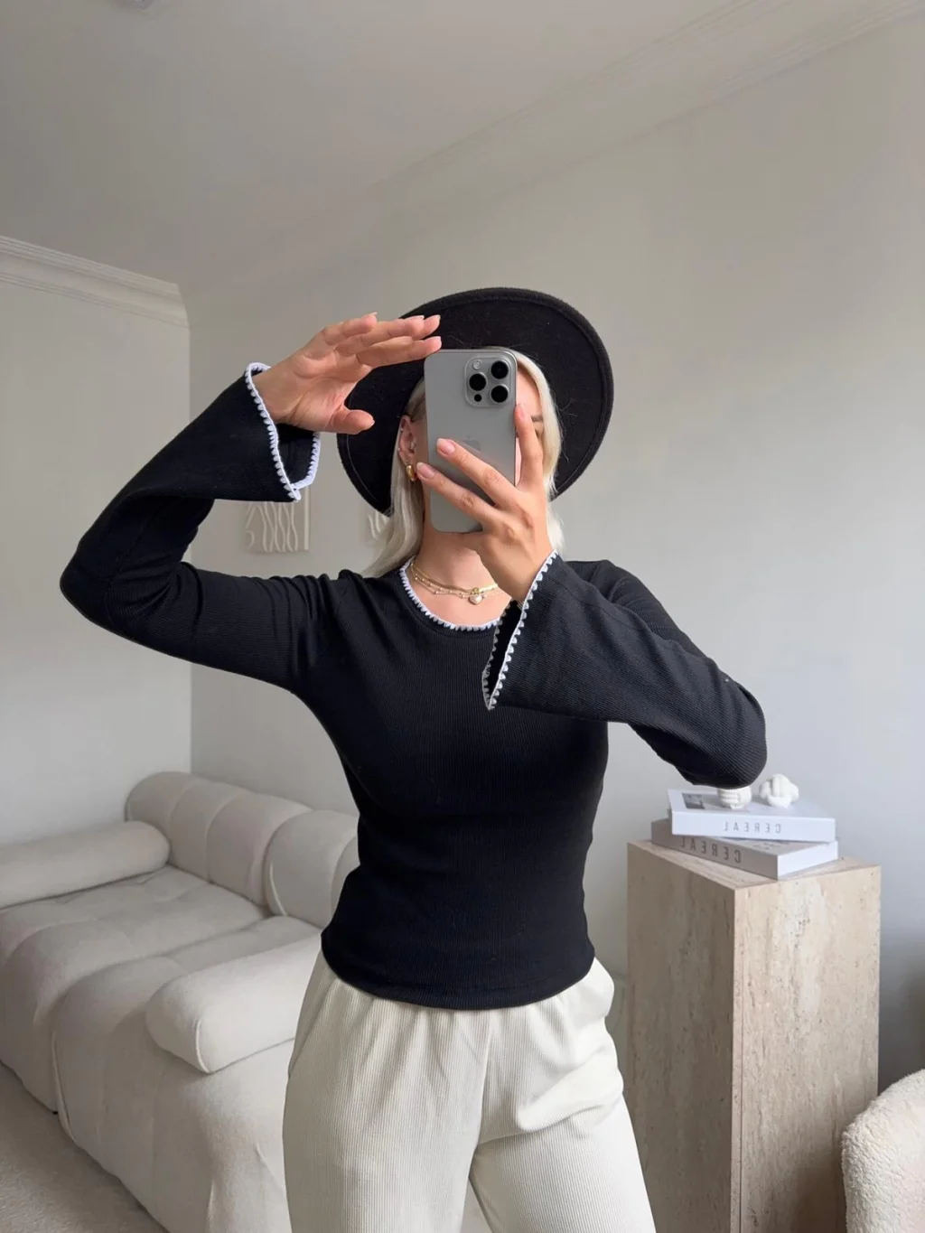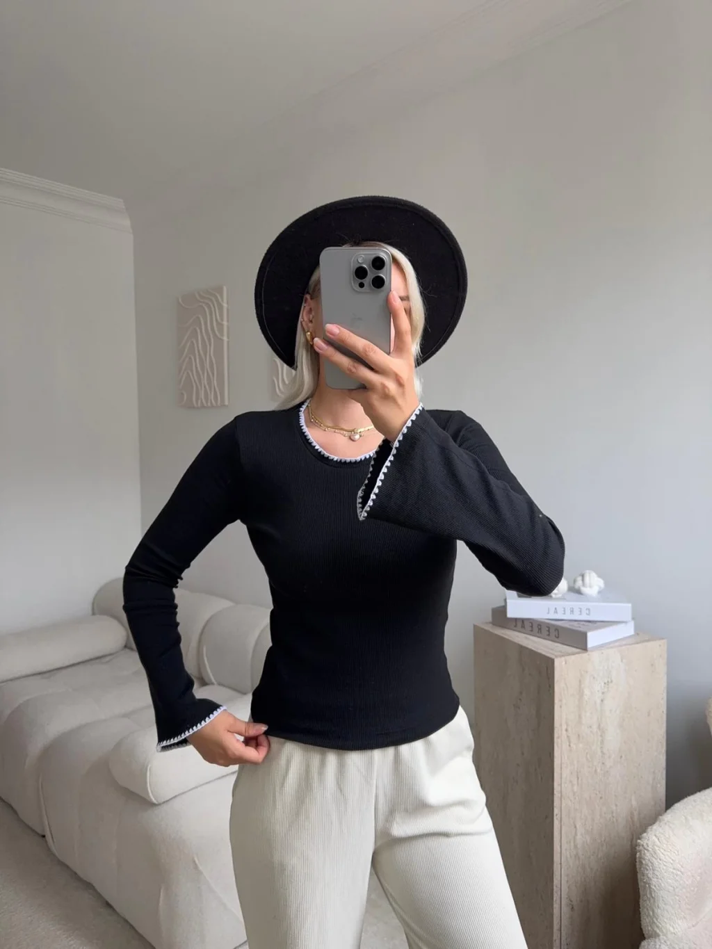 Volan Kol Kontrast Bluz - SİYAH