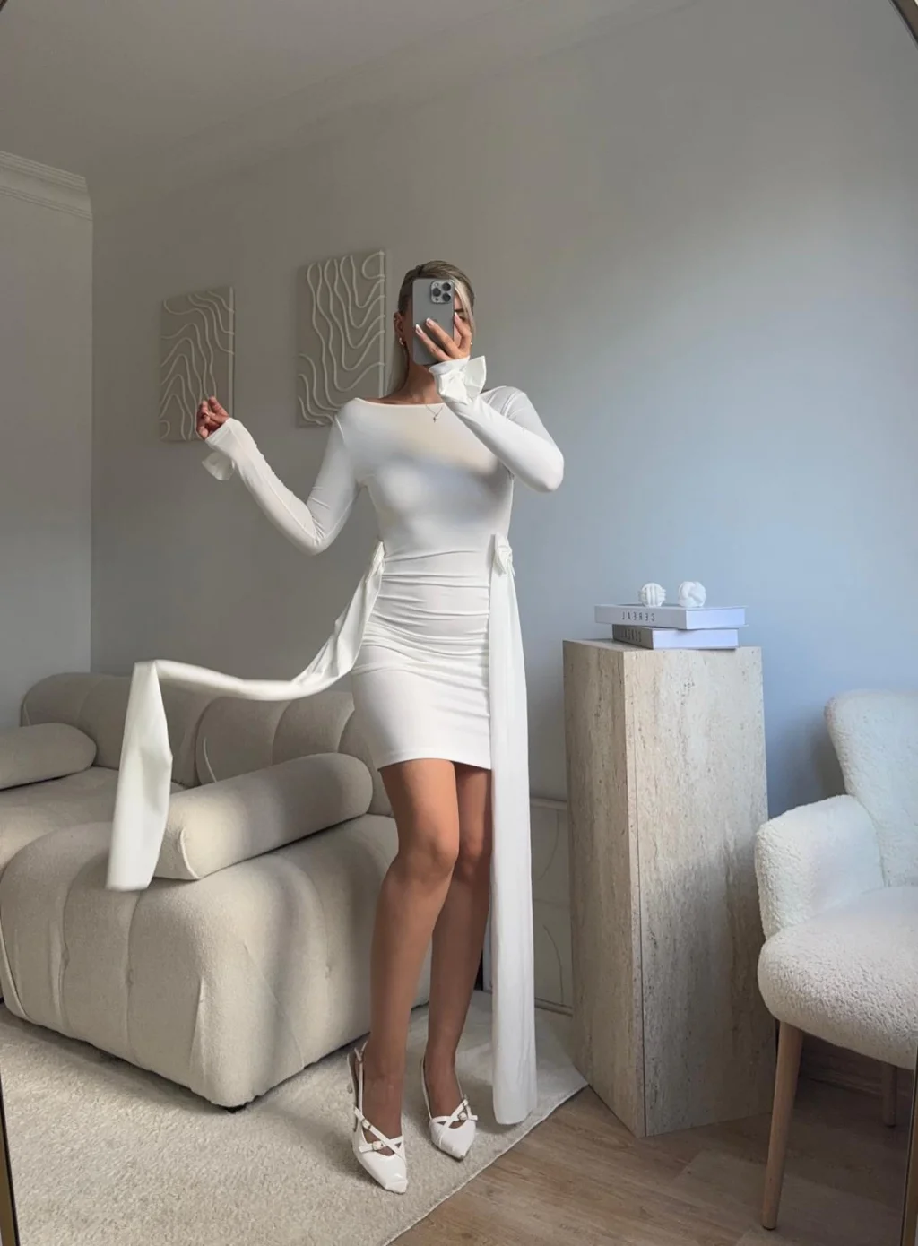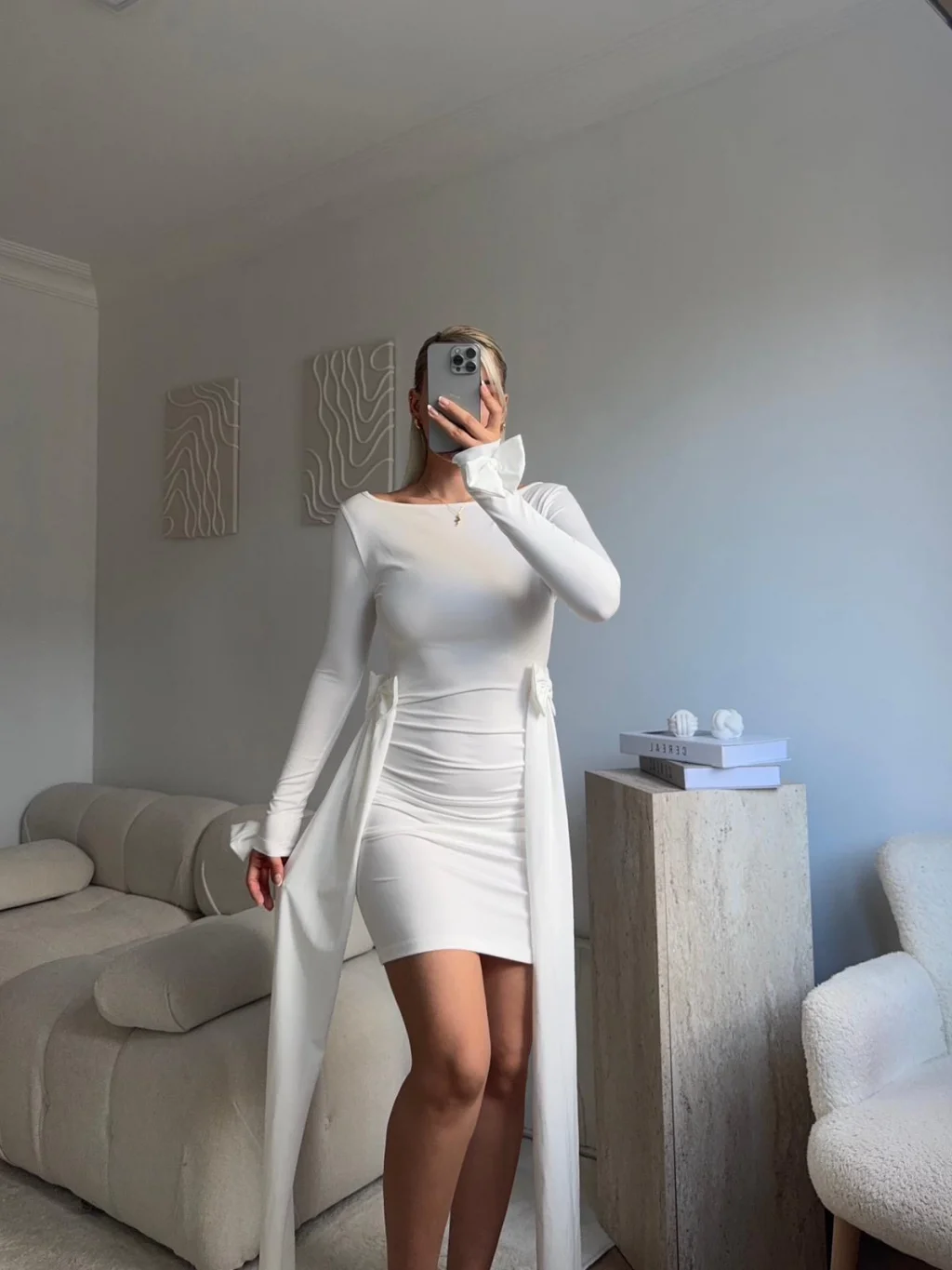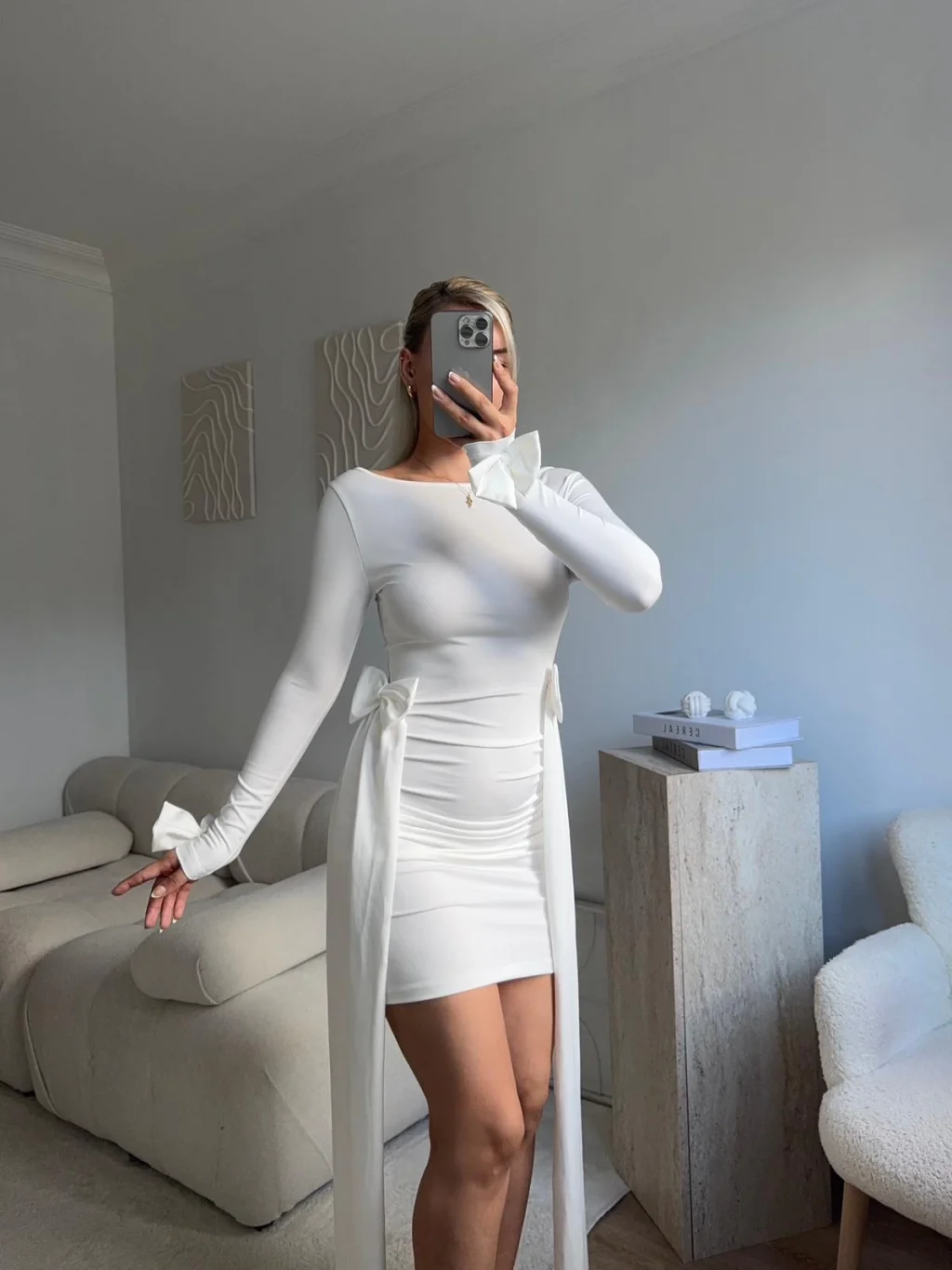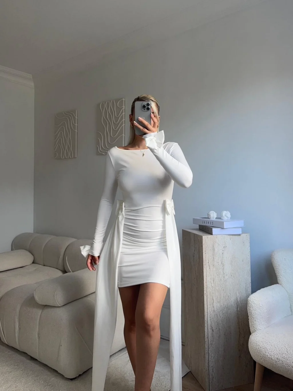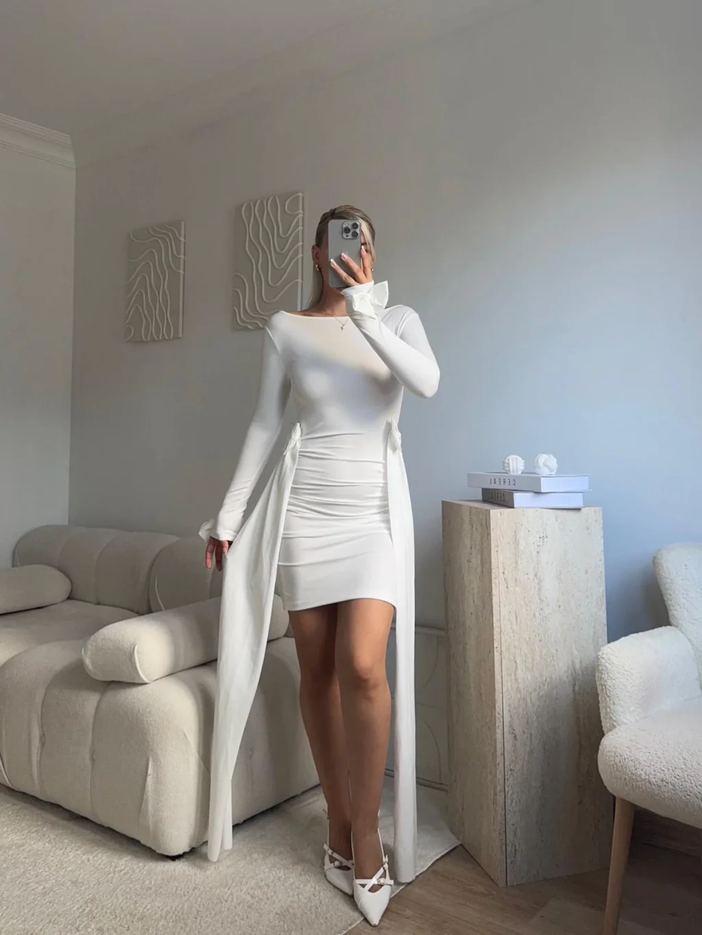 Yan Kurdele Panelli Elbise - BEYAZ