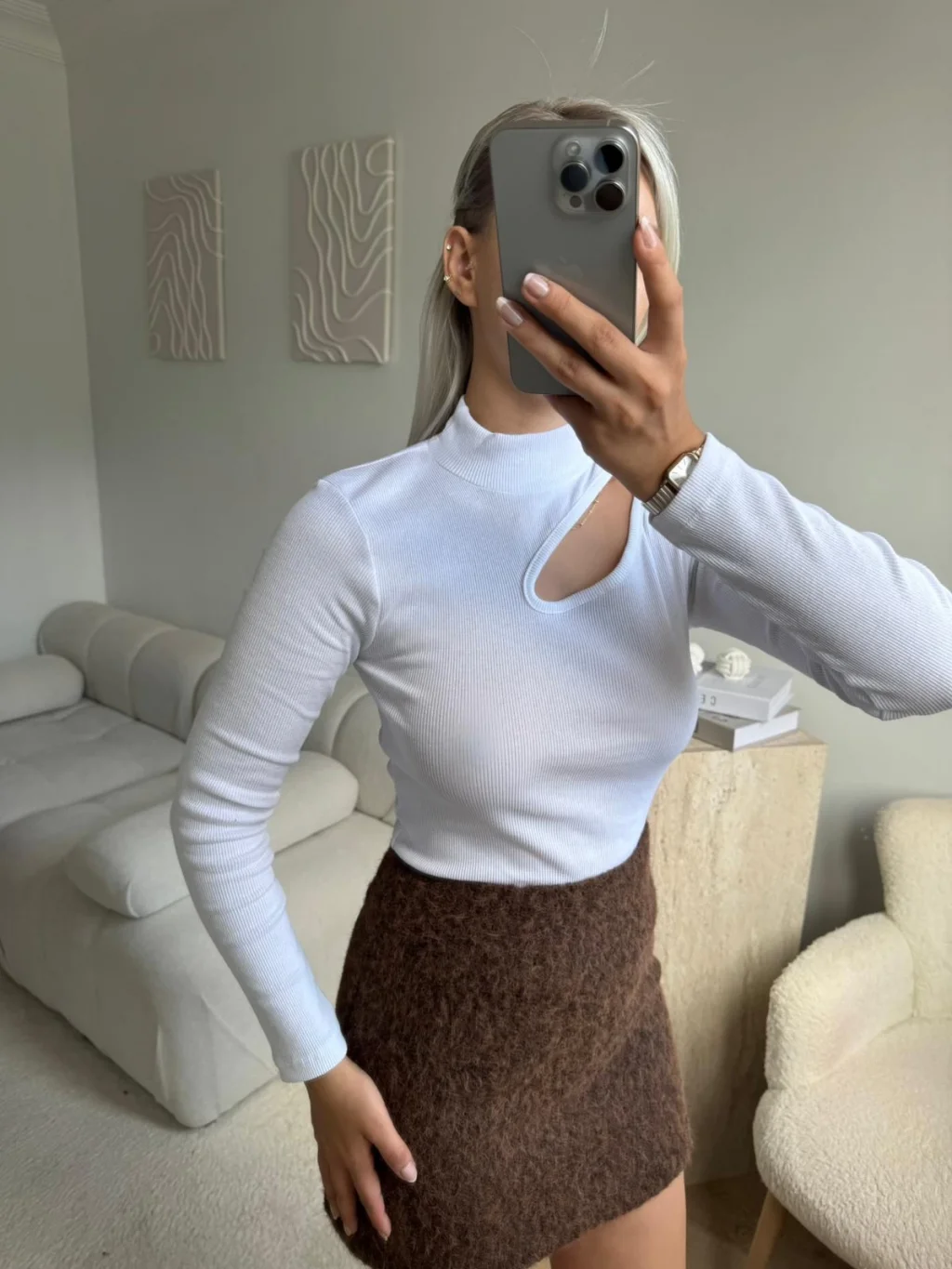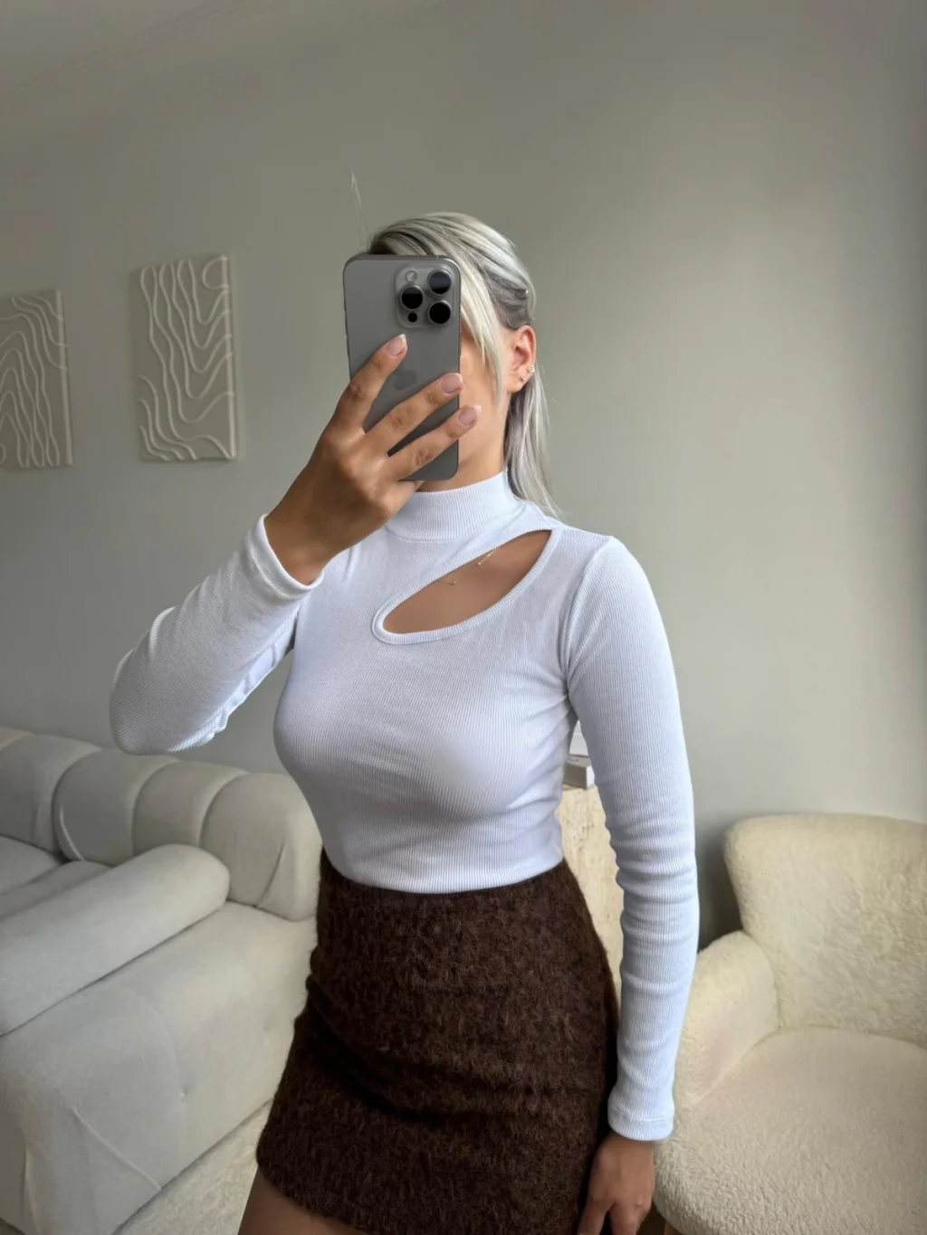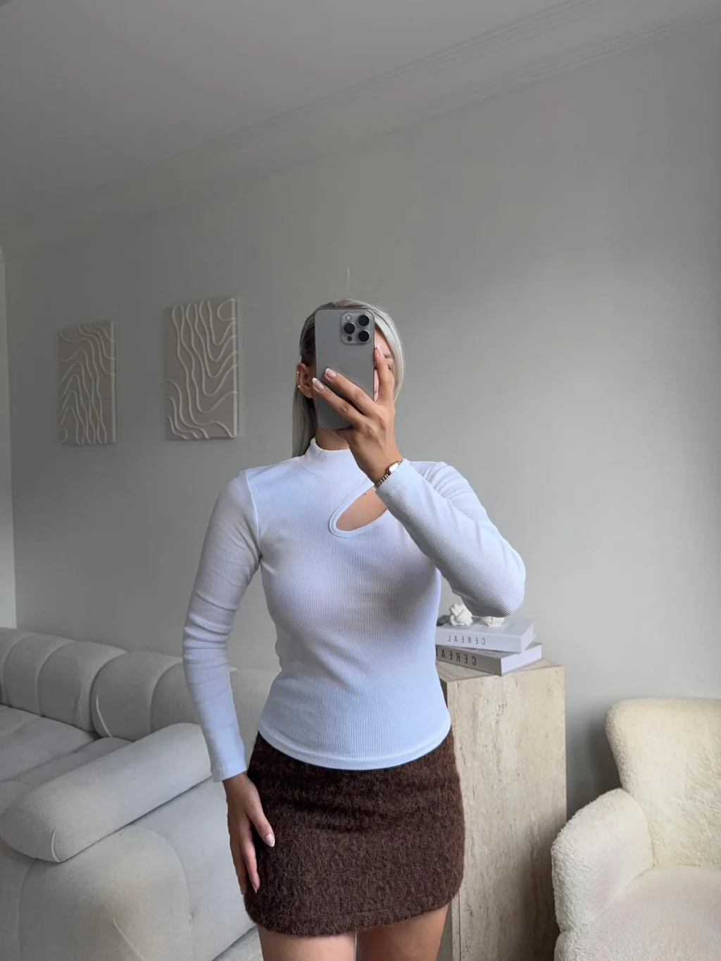 Yarım Balıkçı Omuz Damla Bluz - BEYAZ