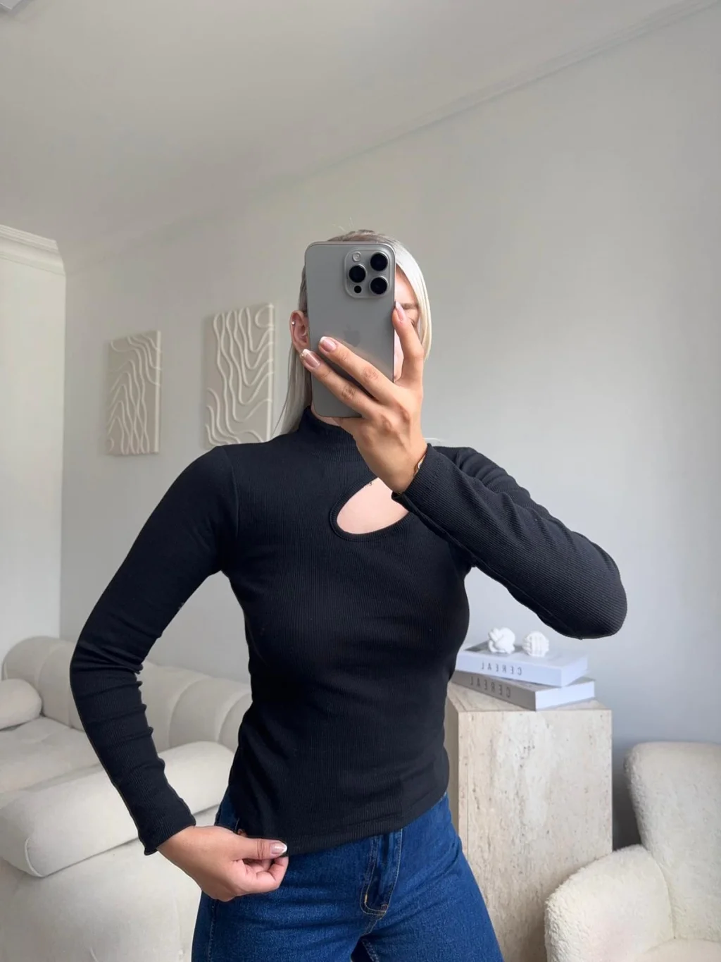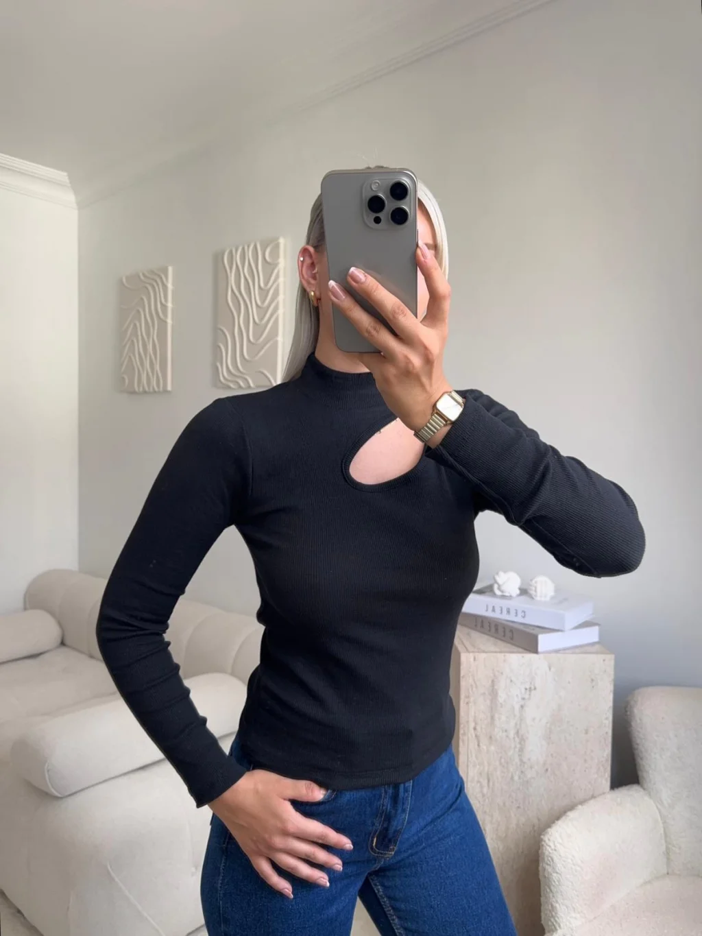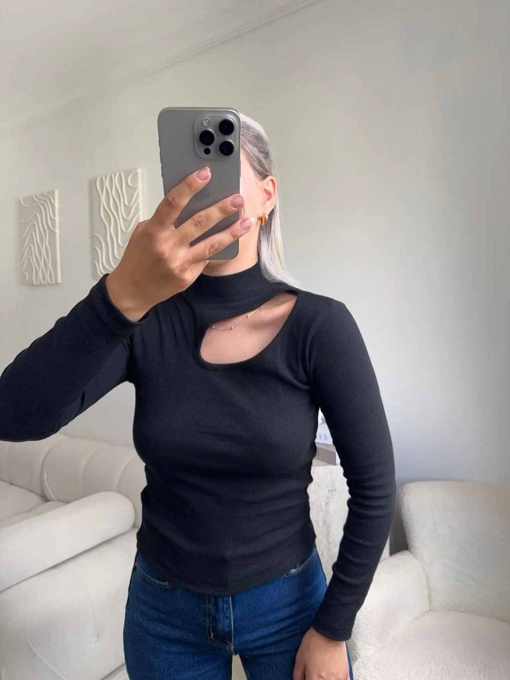 Yarım Balıkçı Omuz Damla Bluz - SİYAH