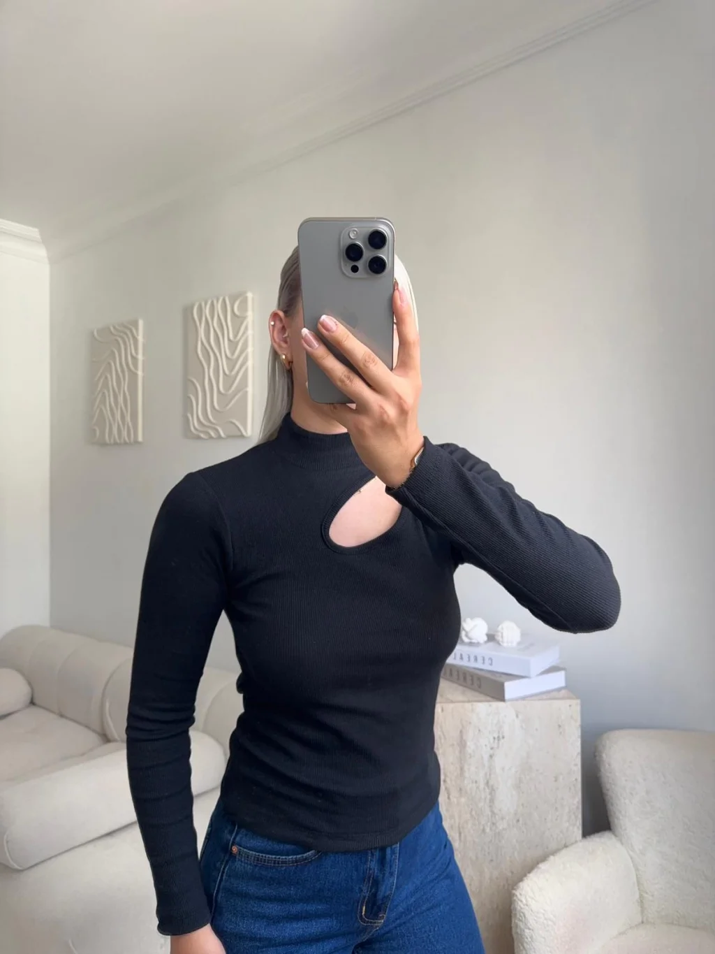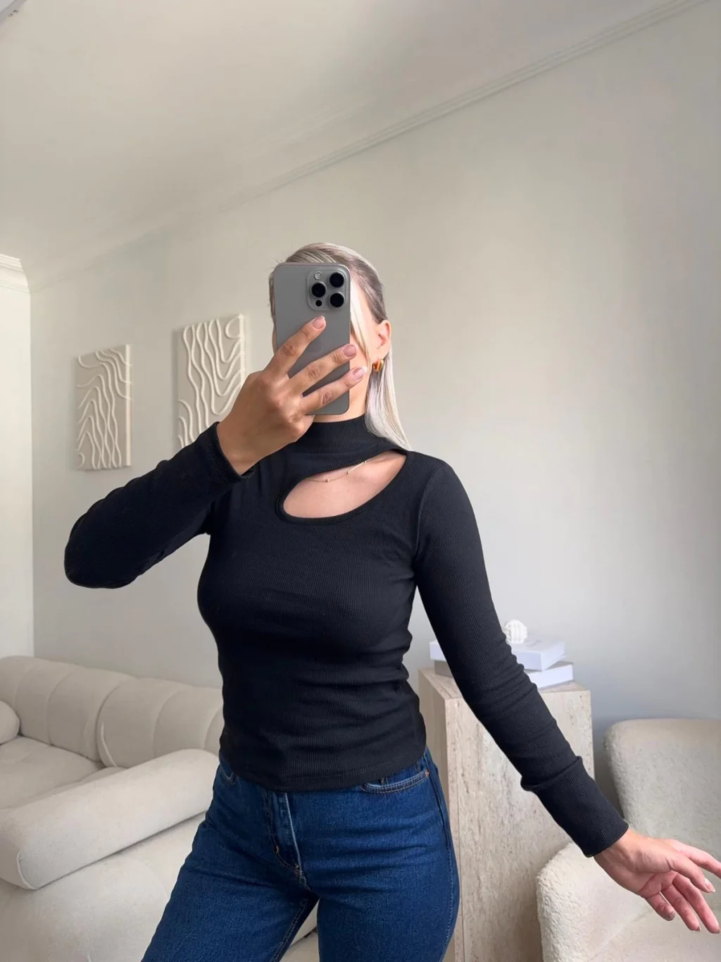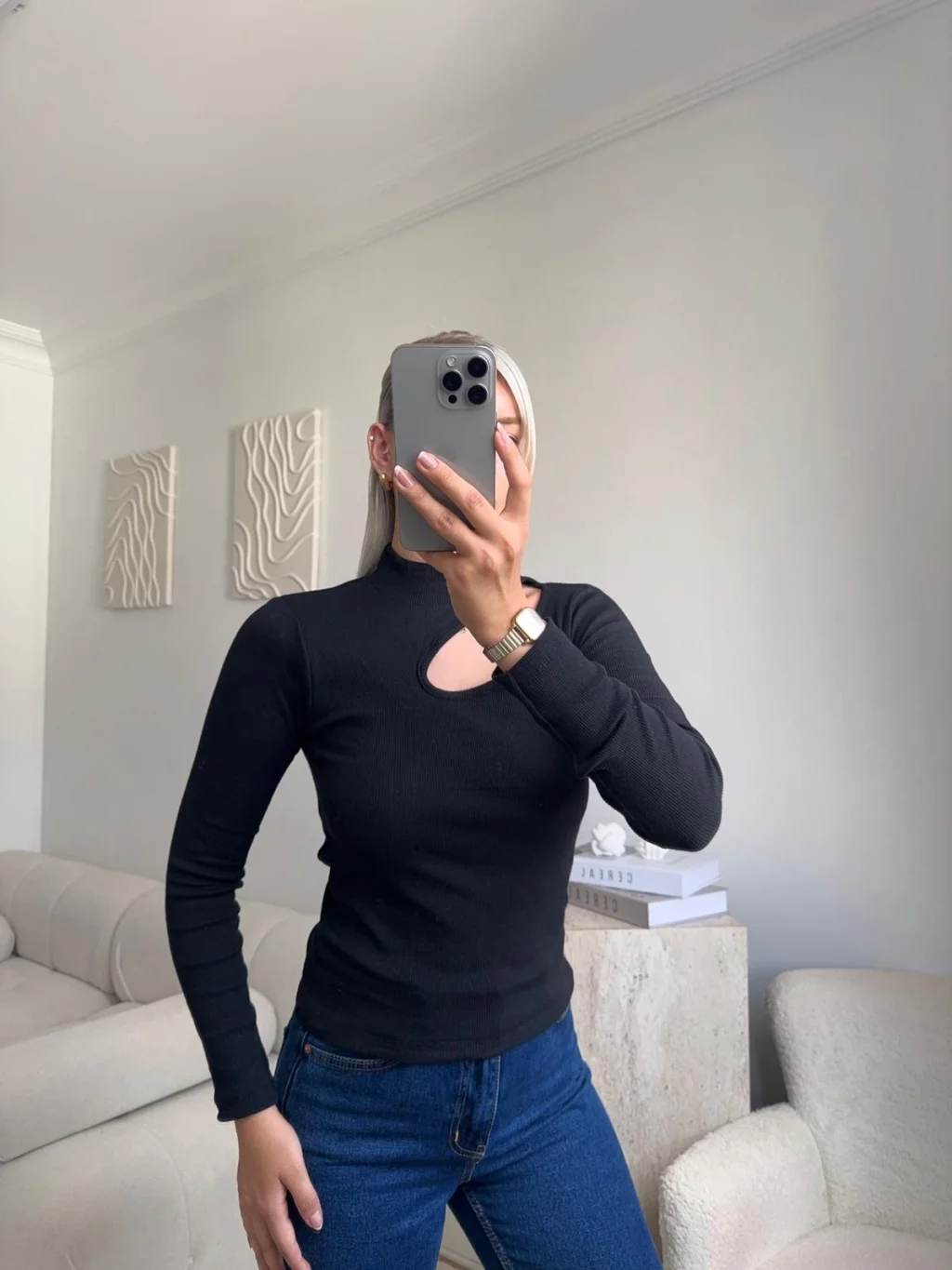 Yarım Balıkçı Omuz Damla Bluz - SİYAH
