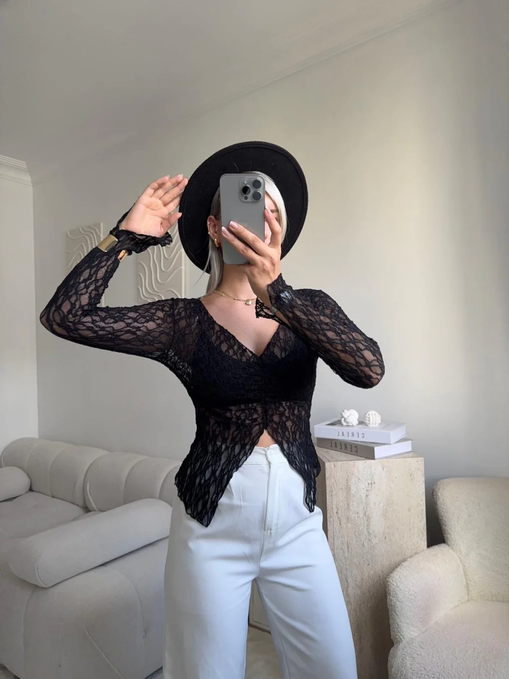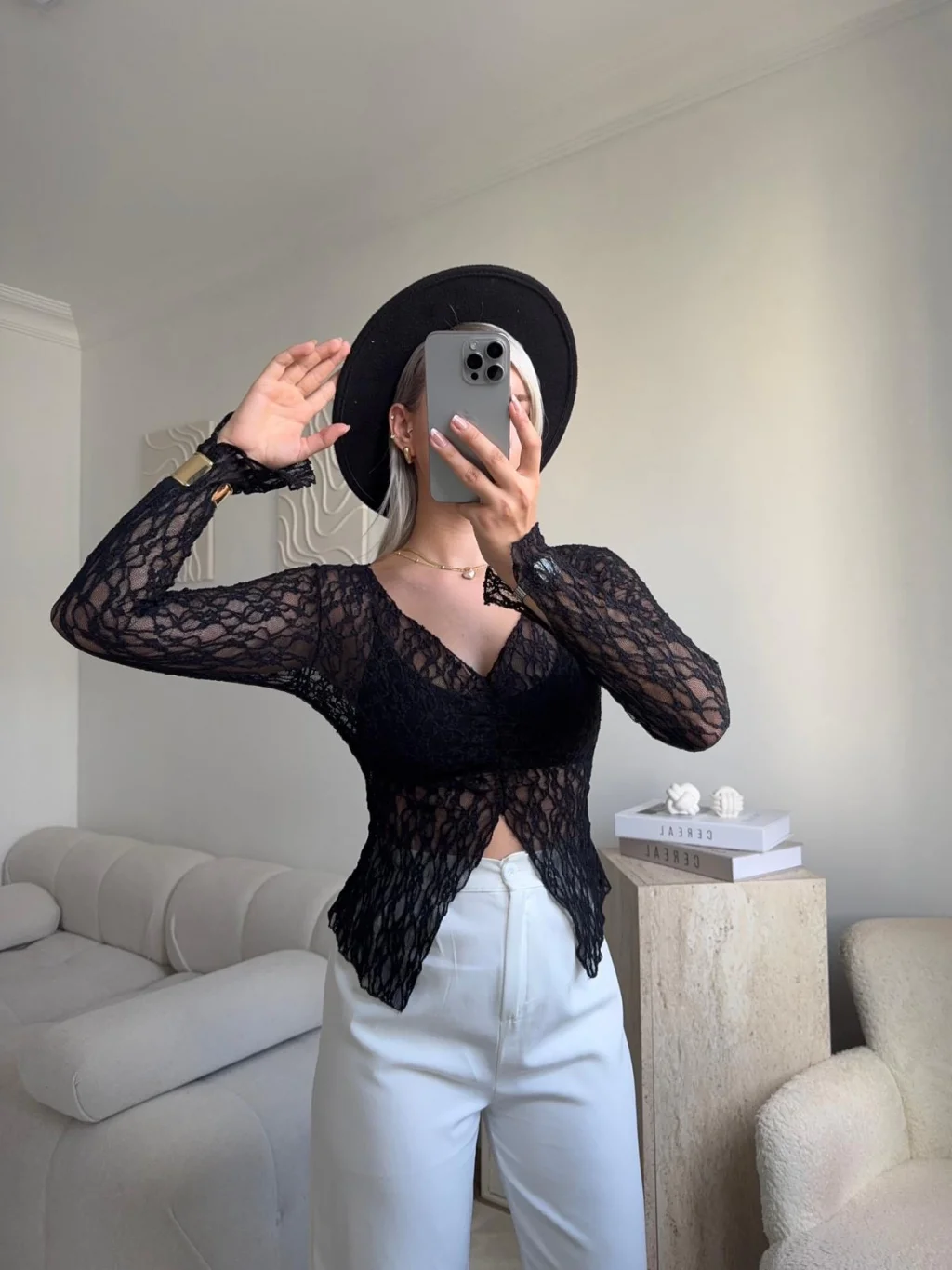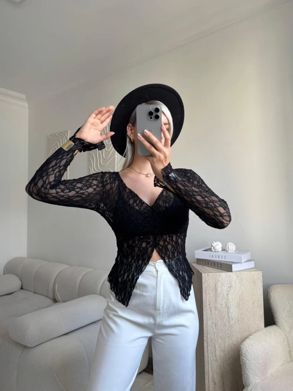 Yırtmaç Detay Dantel Crop - SİYAH