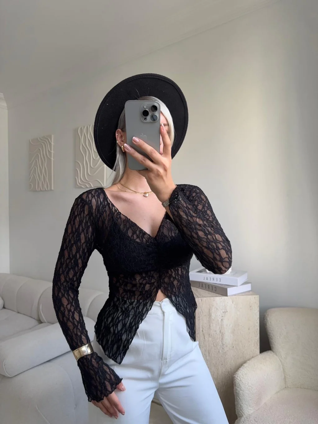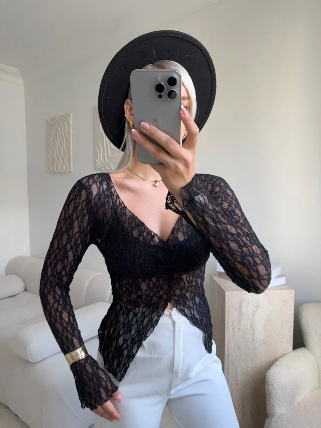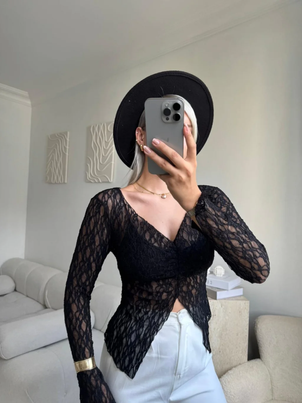Yırtmaç Detay Dantel Crop - SİYAH